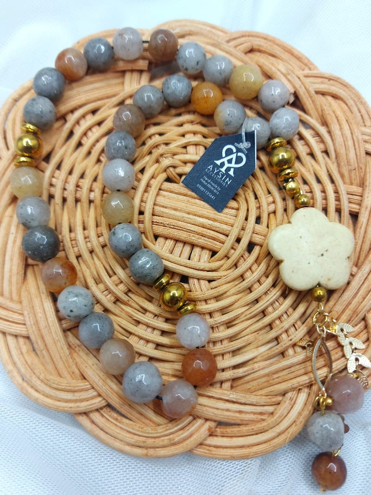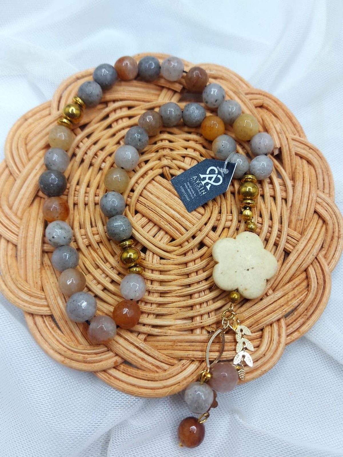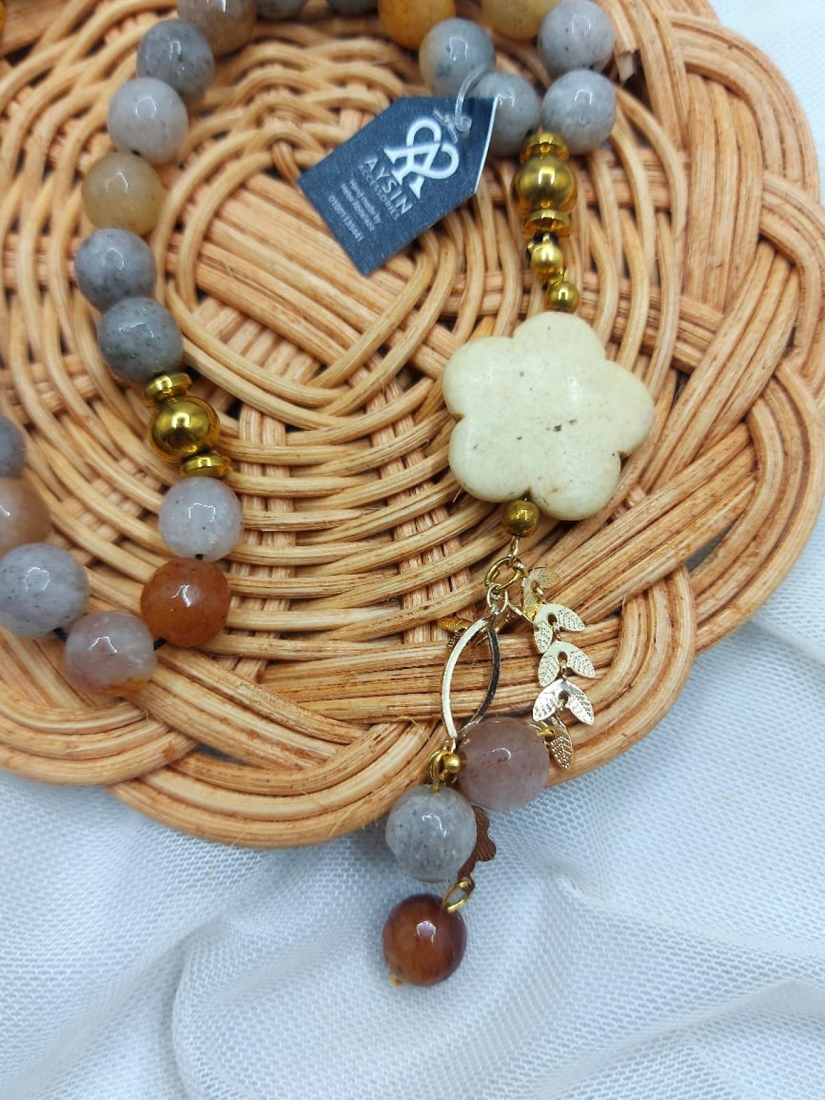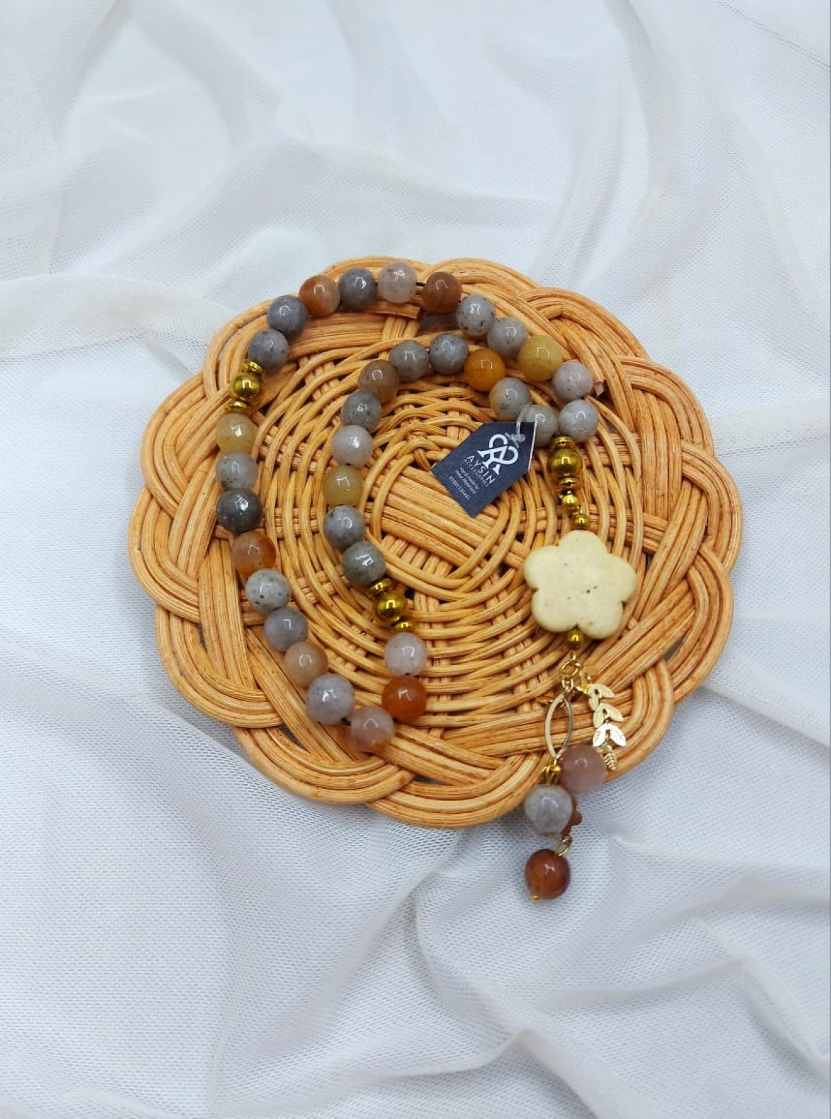 مسبحه٣٣ من احجار العقيق وفواصل هيماتيت وسلاسل دهب صينى جولد