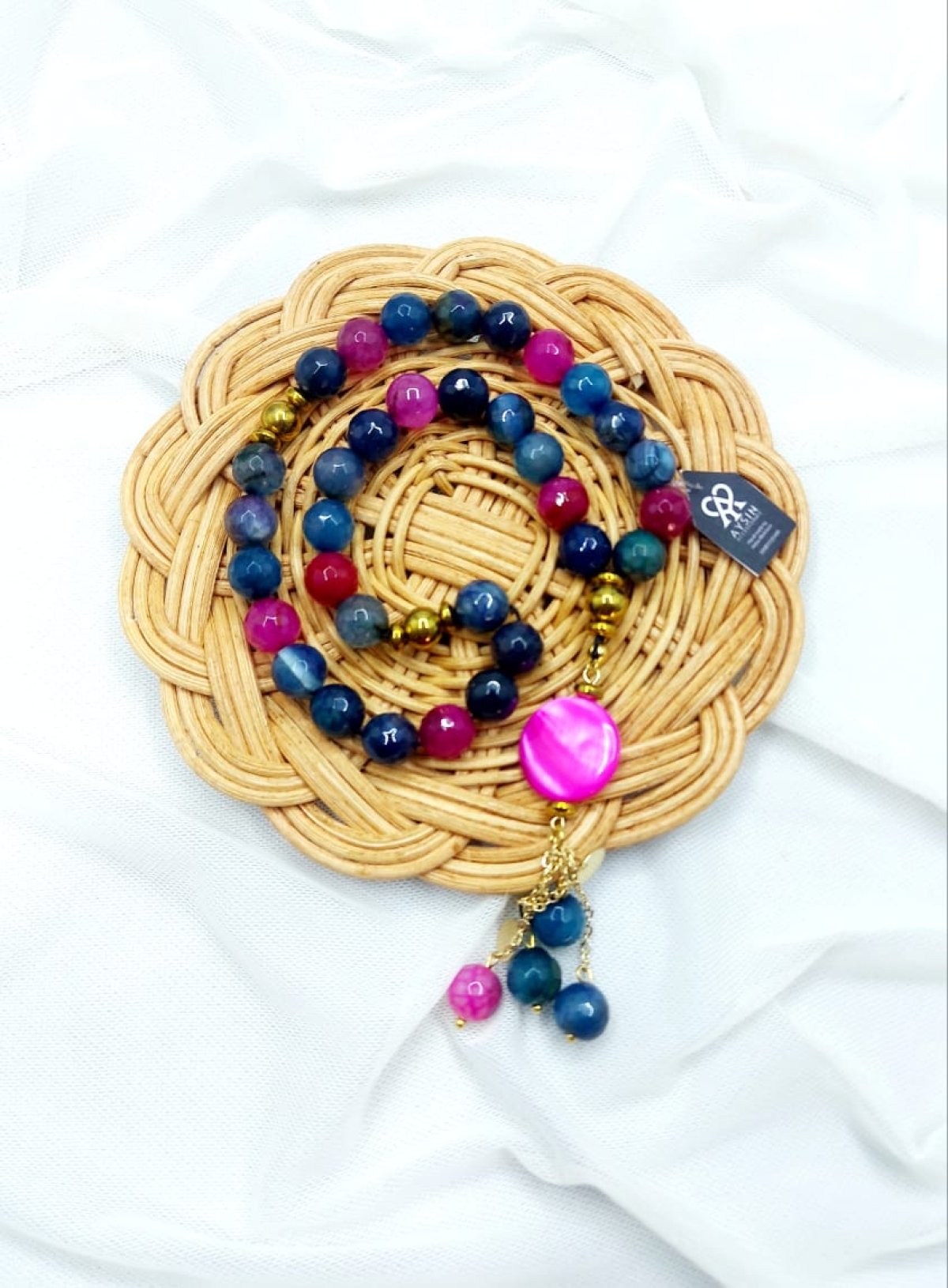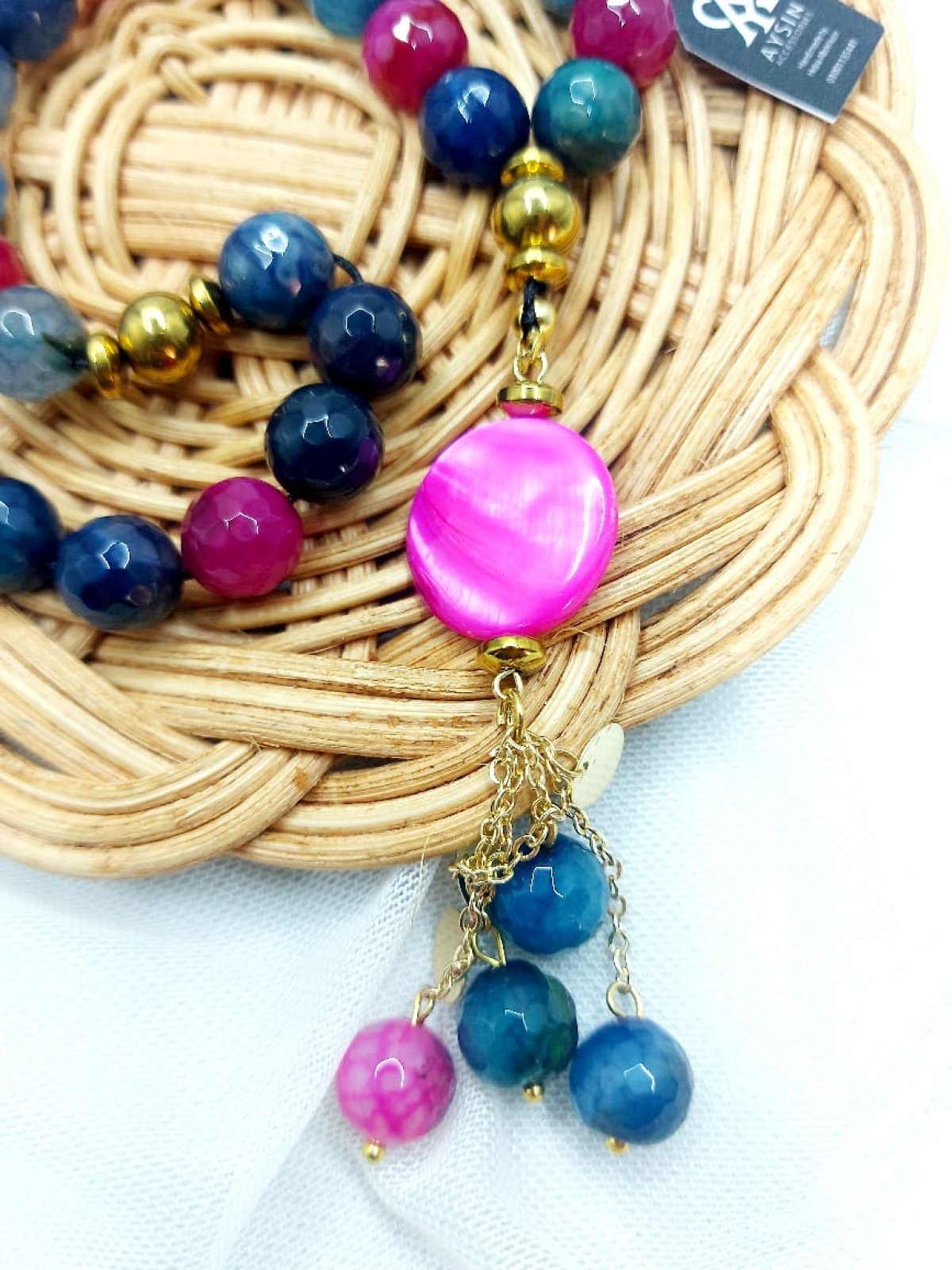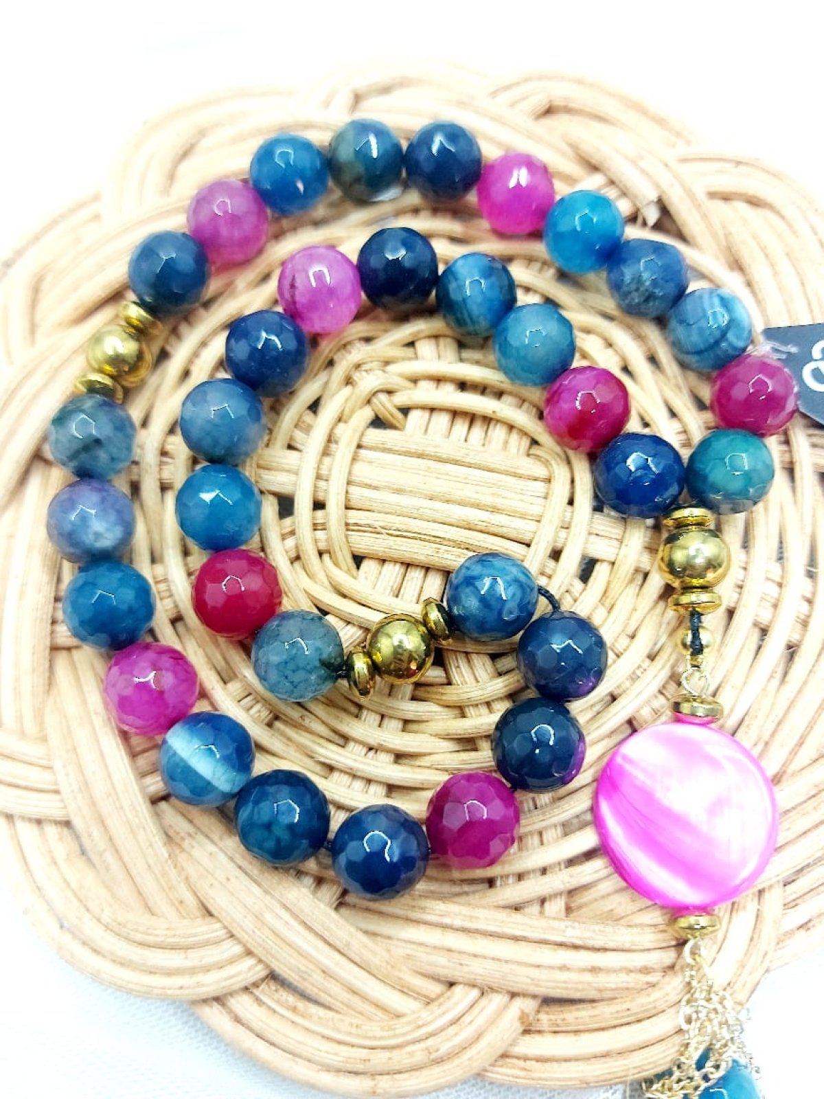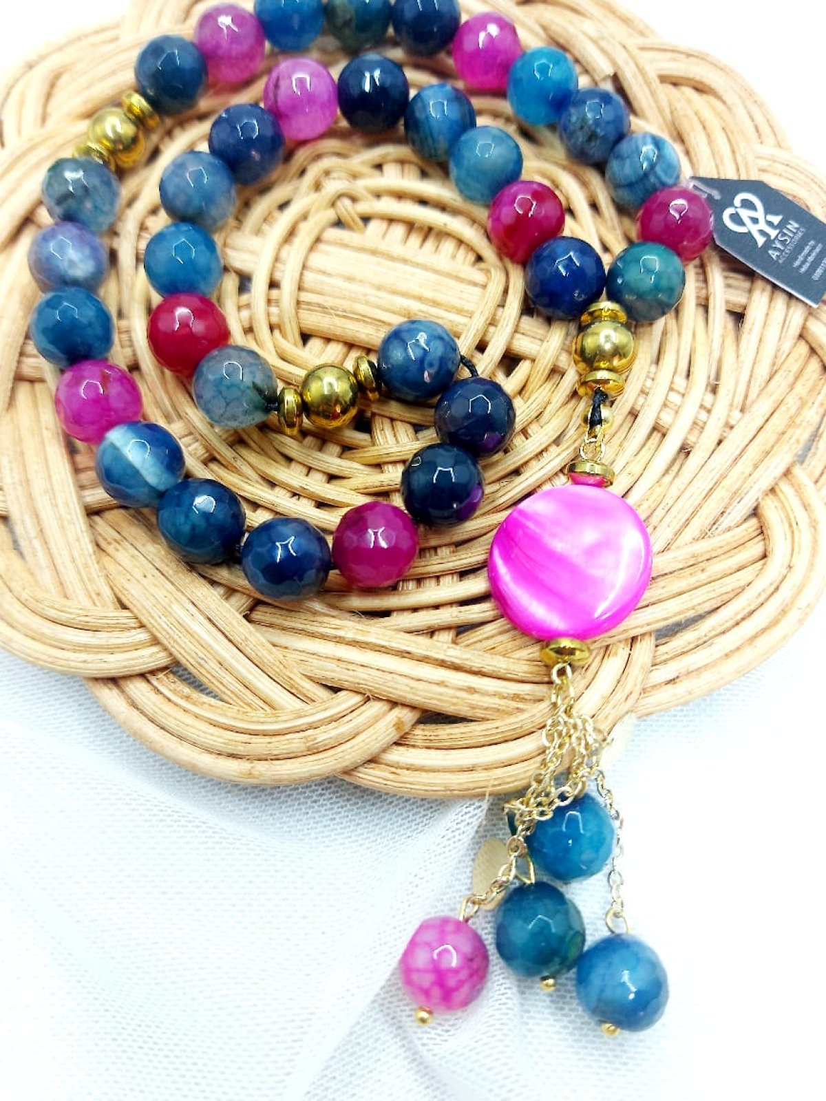مسبحه٣٣ من احجار العقيق وفواصل هيماتيت وسلاسل دهب صينى جولد