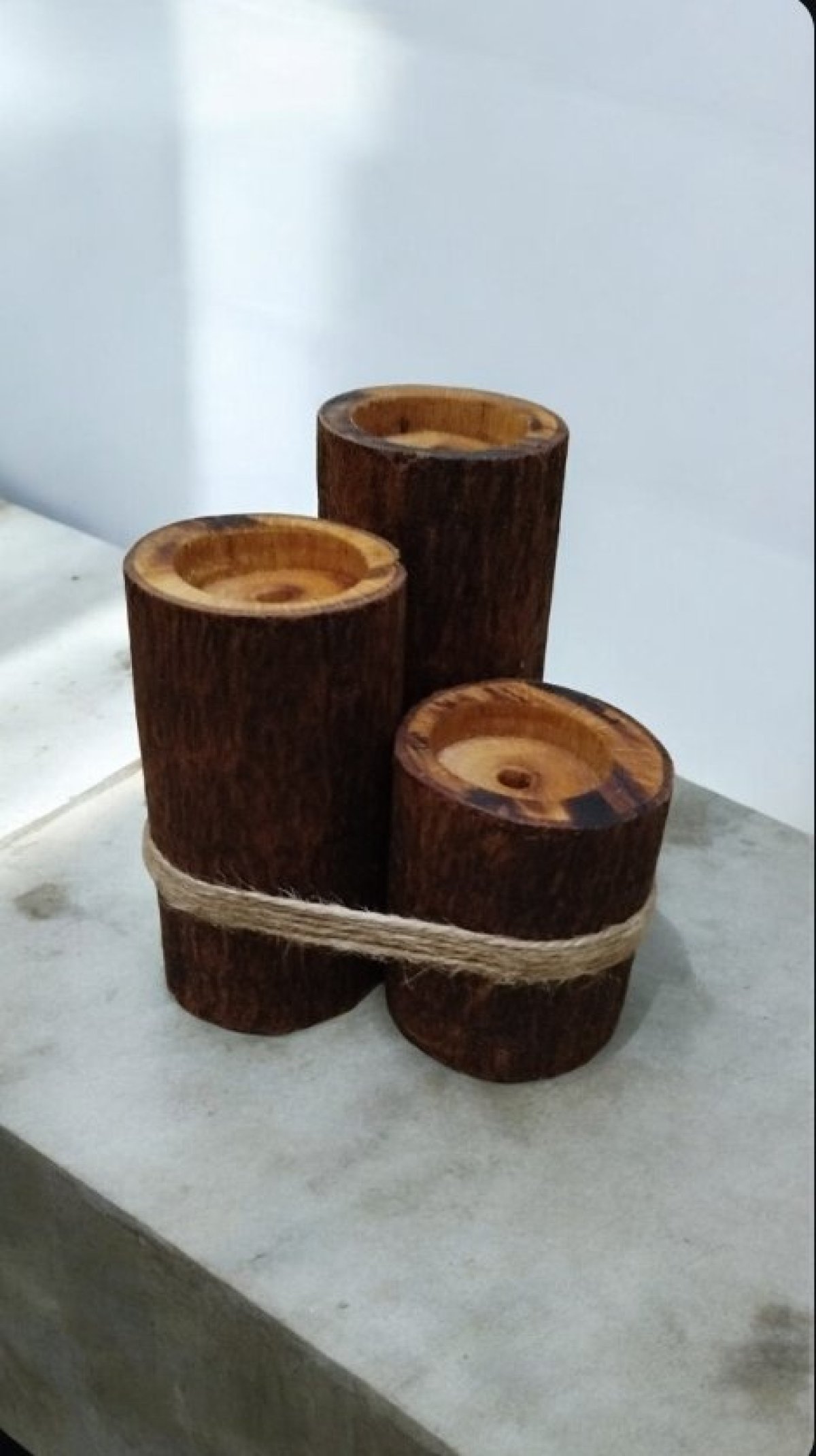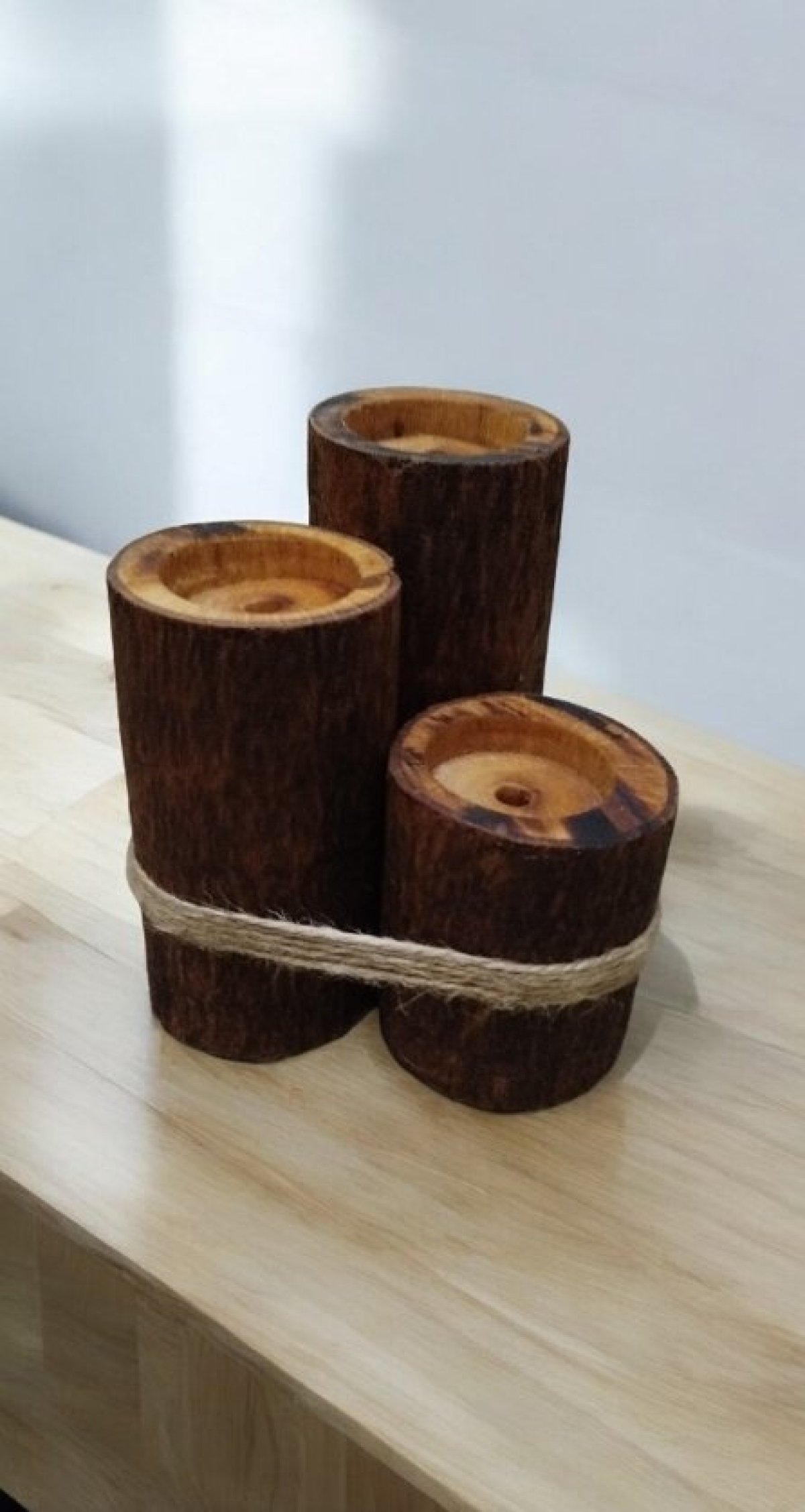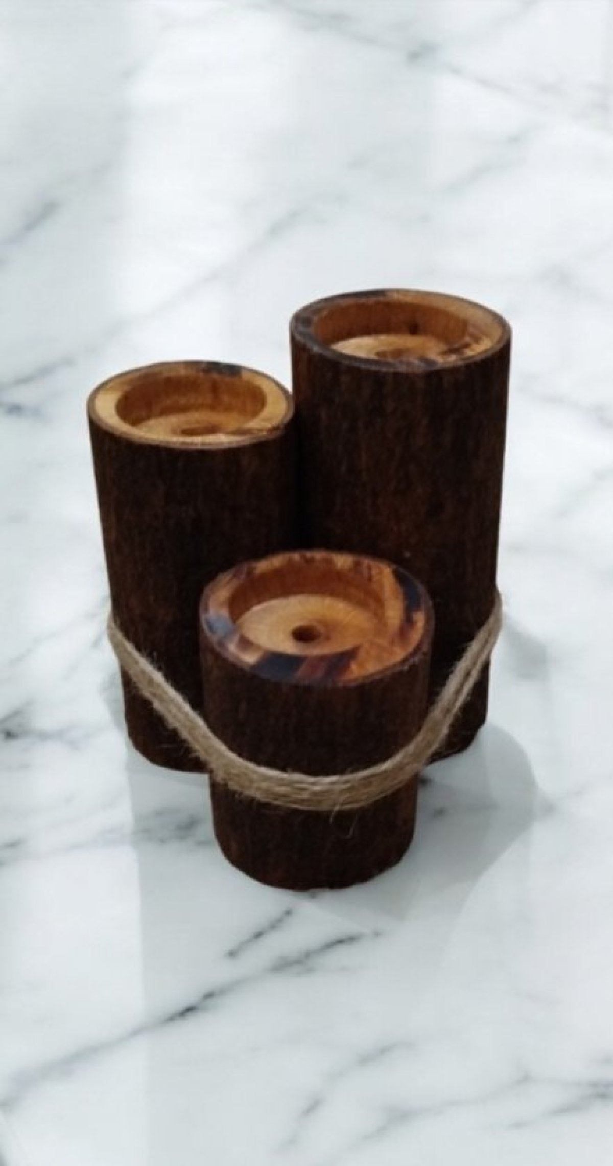 شمعدان مصنع من خشب الجزورين الطبيعي