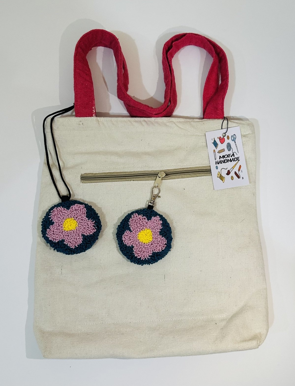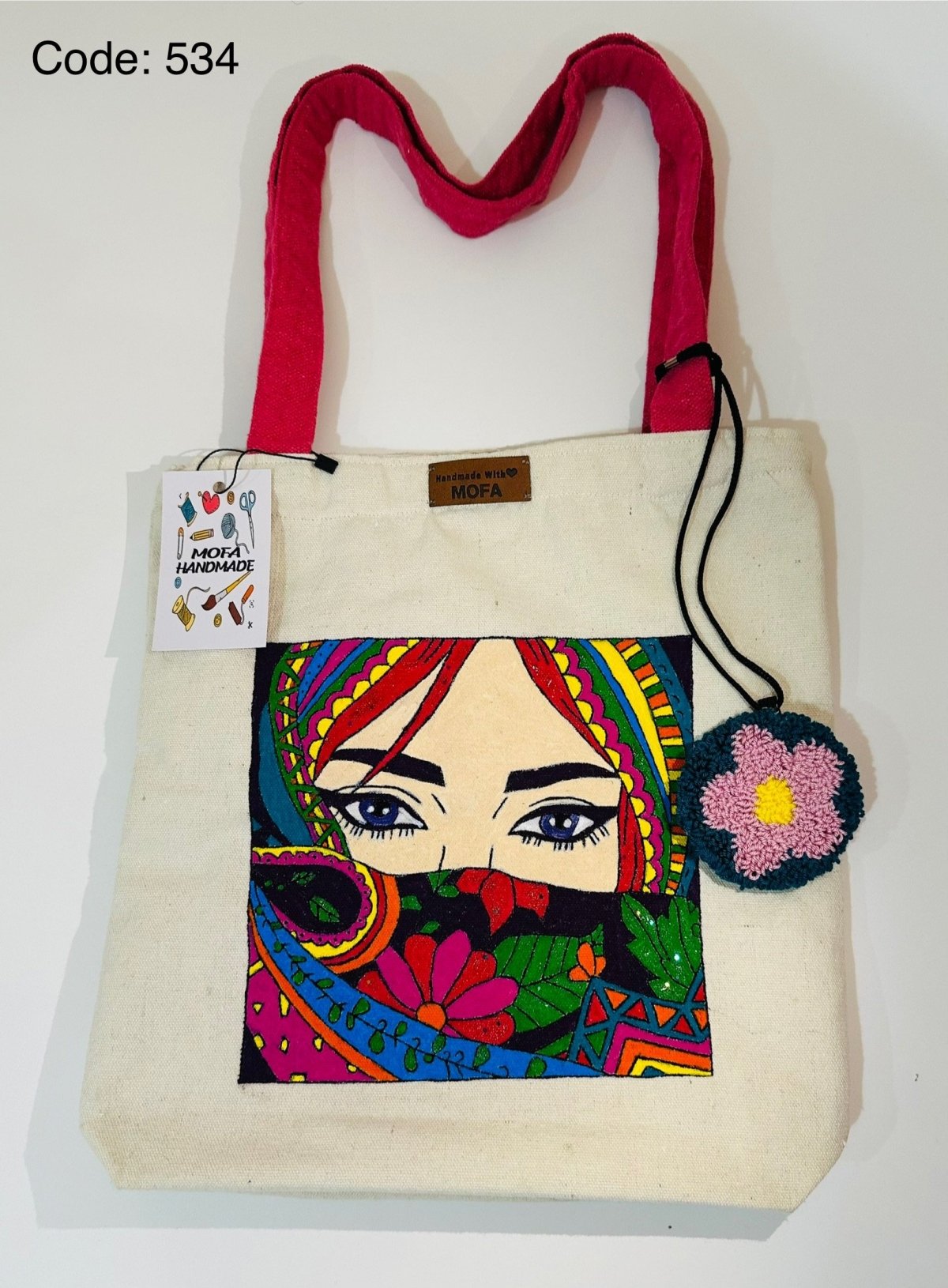 شنطه من القماش مقاس 35*40 بحزام من نفس نوع القماش مبطنه بقماش من الداخل و بها جيوب داخليه