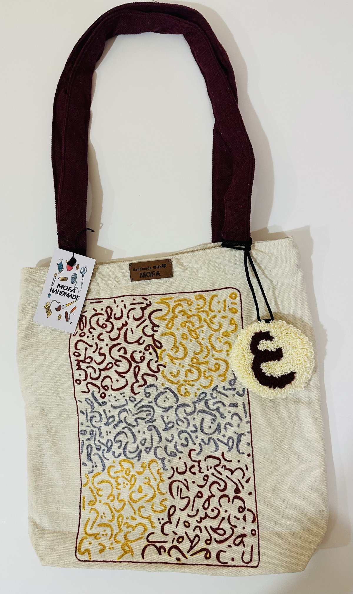 شنطه من القماش بمقاس 35*40 بحزام من نفس نوع القماش مبطنه بقماش من الداخل و بها جيوب داخليه