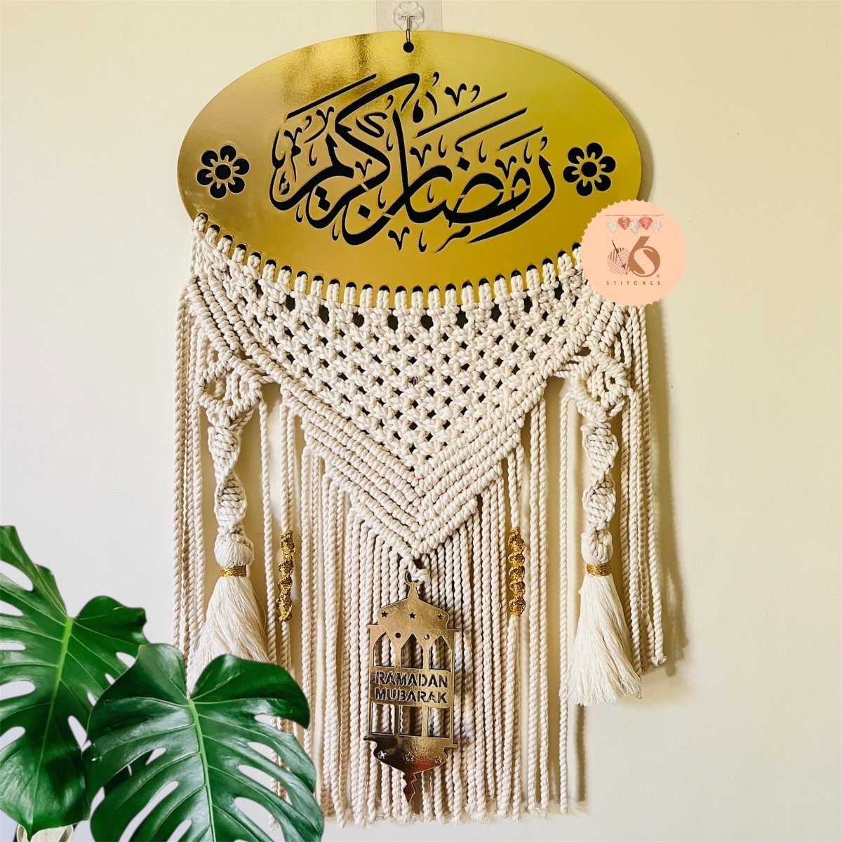 لوحة خشب ذهبي رمضان كريم مقاس ٤٥ سم عرض وطول متر