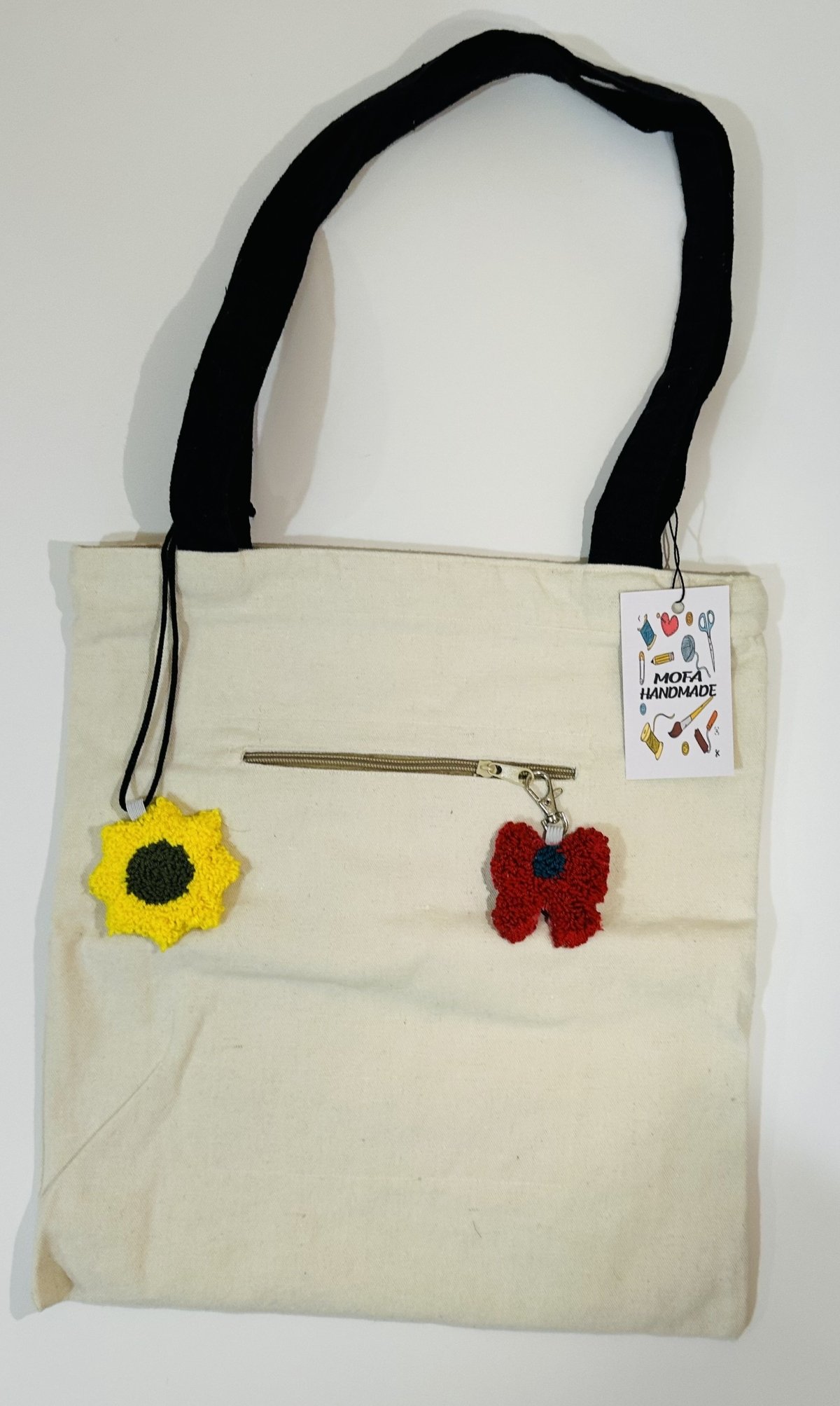 شنطه من القماش مقاس 40*35 بحزام من نفس نوع القماش مبطنه من الداخل و بها جيوب داخليه