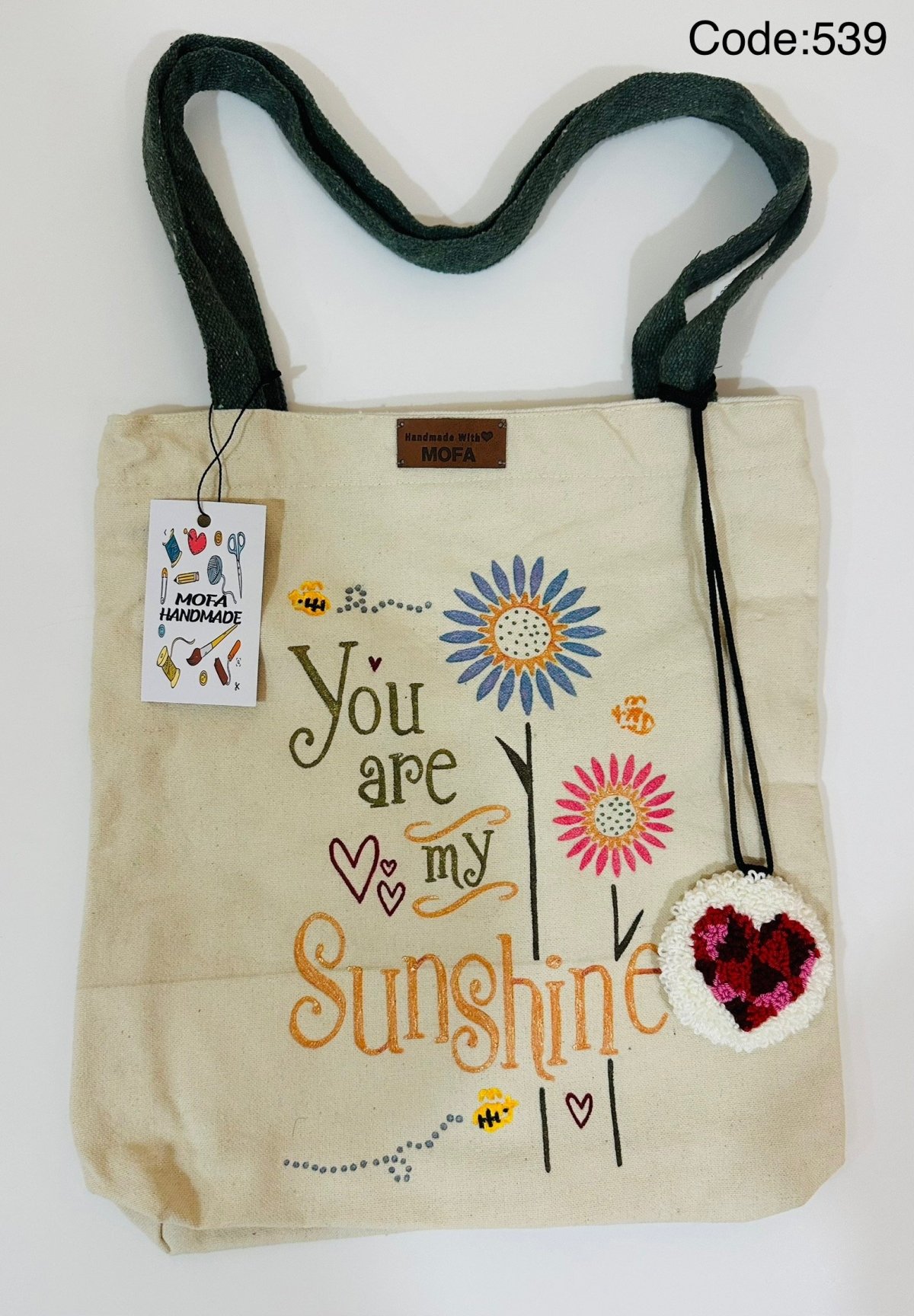 شنطه من القماش مقاس 35*40 بحزام من نفس نوع القماش مبطنه بقماش من الداخل و بها جيوب داخليه