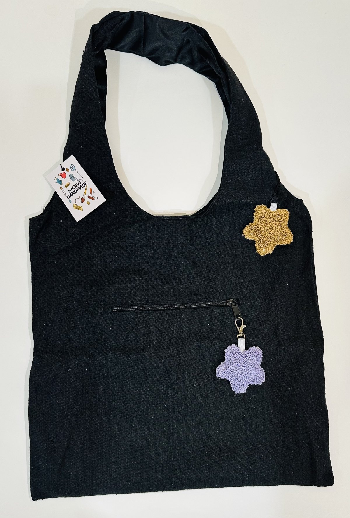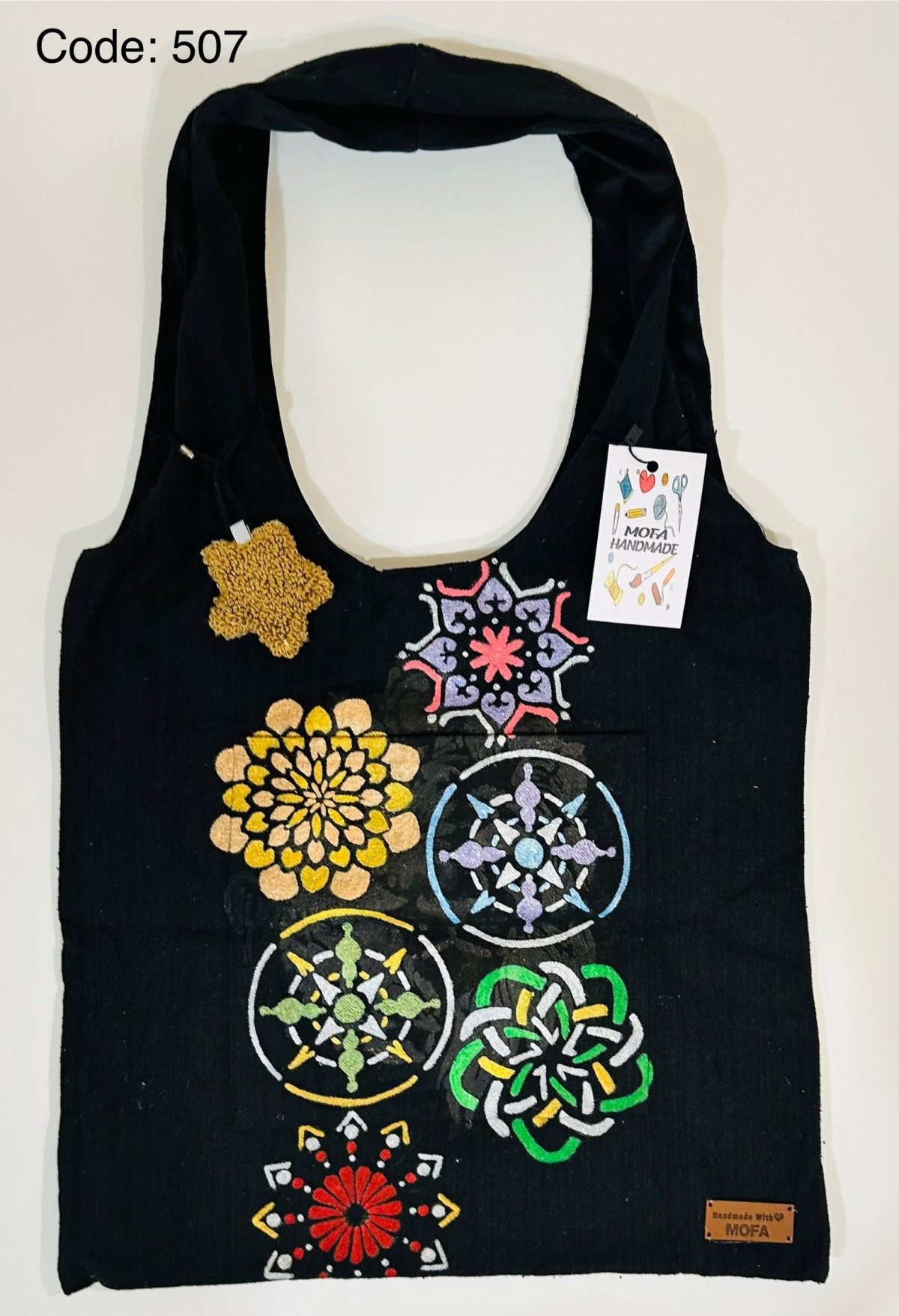 شنطه من القماش مقاس 43*45 بحزام من نفس نوع القماش مبطنه بقماش من الداخل و بها جيوب داخليه