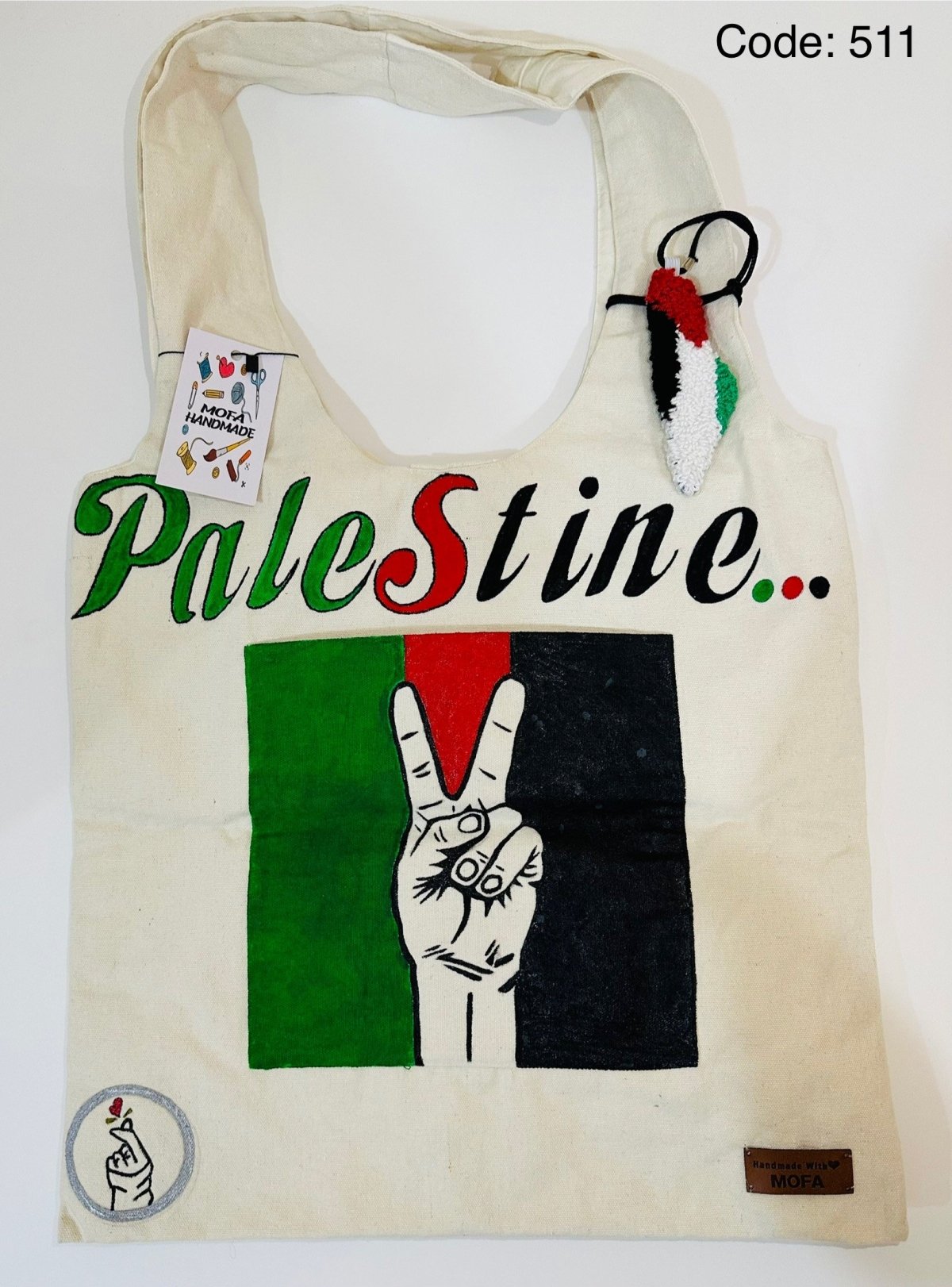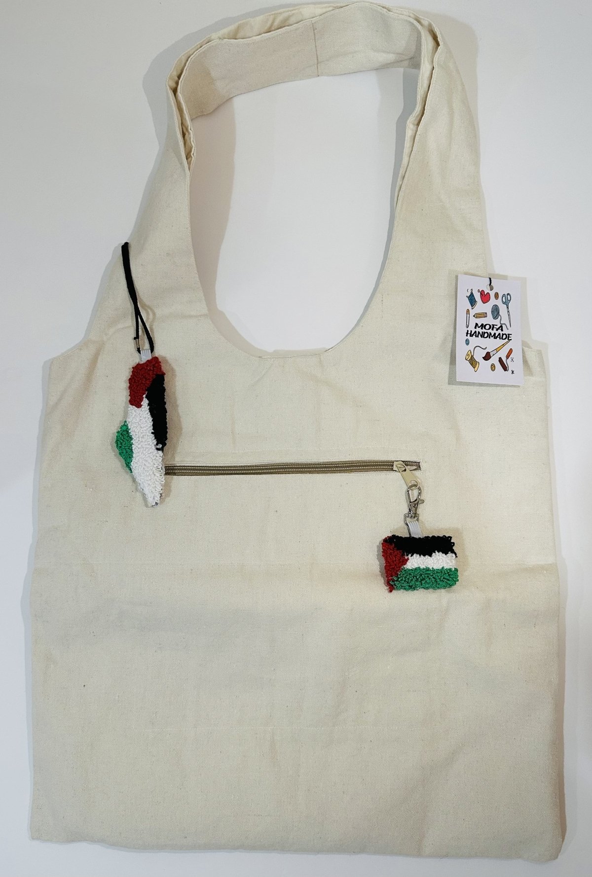 شنطه من القماش مقاس 43*45 بحزام من نفس نوع القماش مبطنه بقماش من الداخل و بها جيوب داخليه