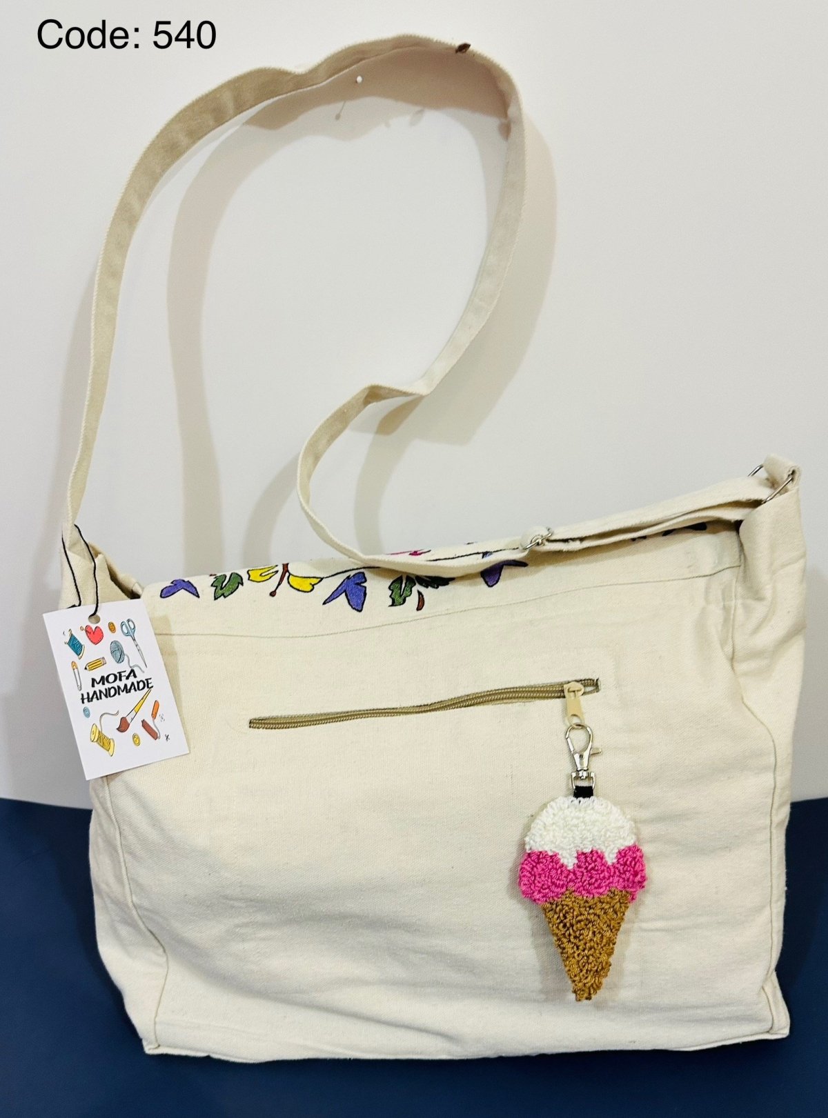 شنطه من القماش مقاس 30*34*15 بحزام من نفس نوع القماش مبطنه بقماش من الداخل و بها جيوب داخليه