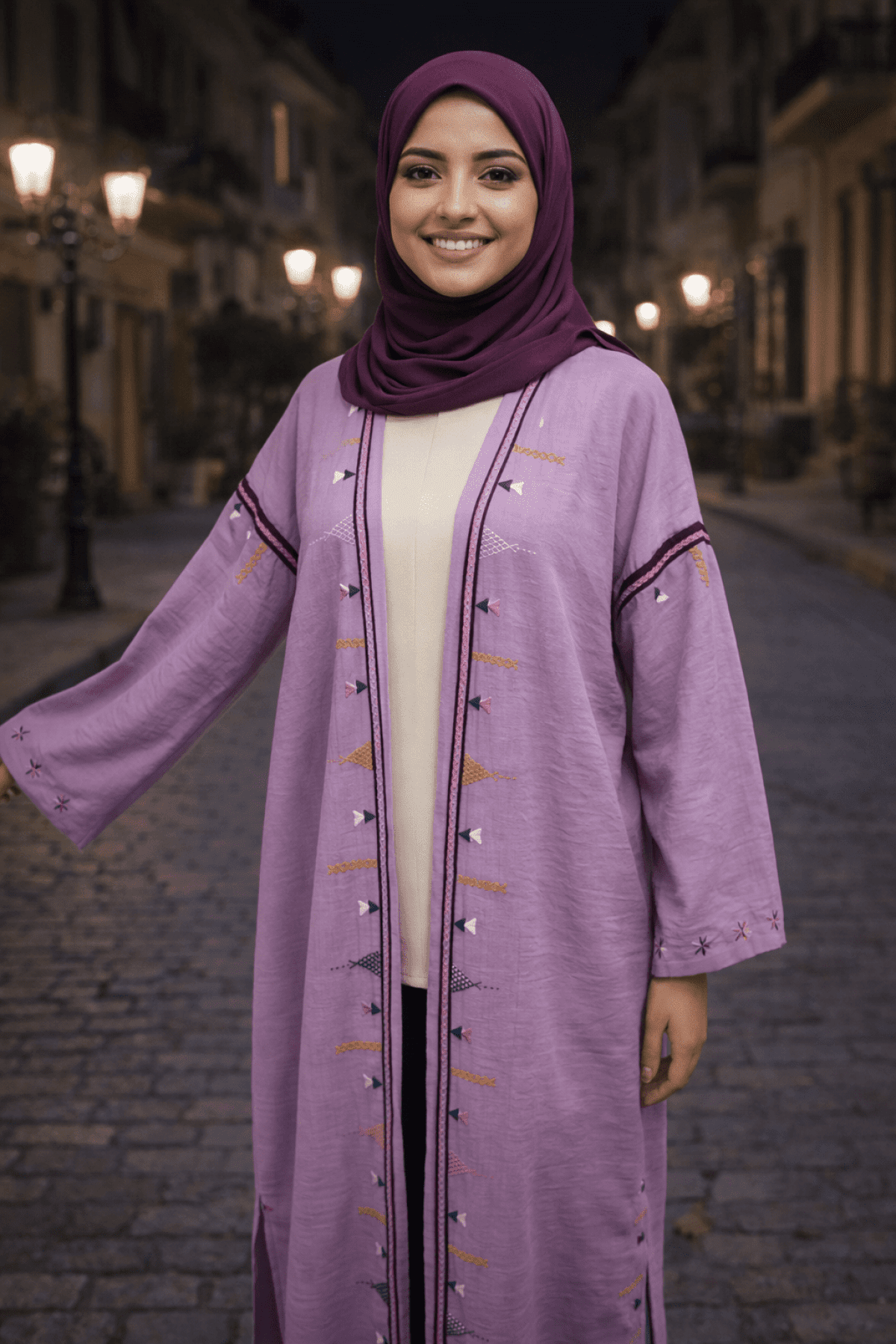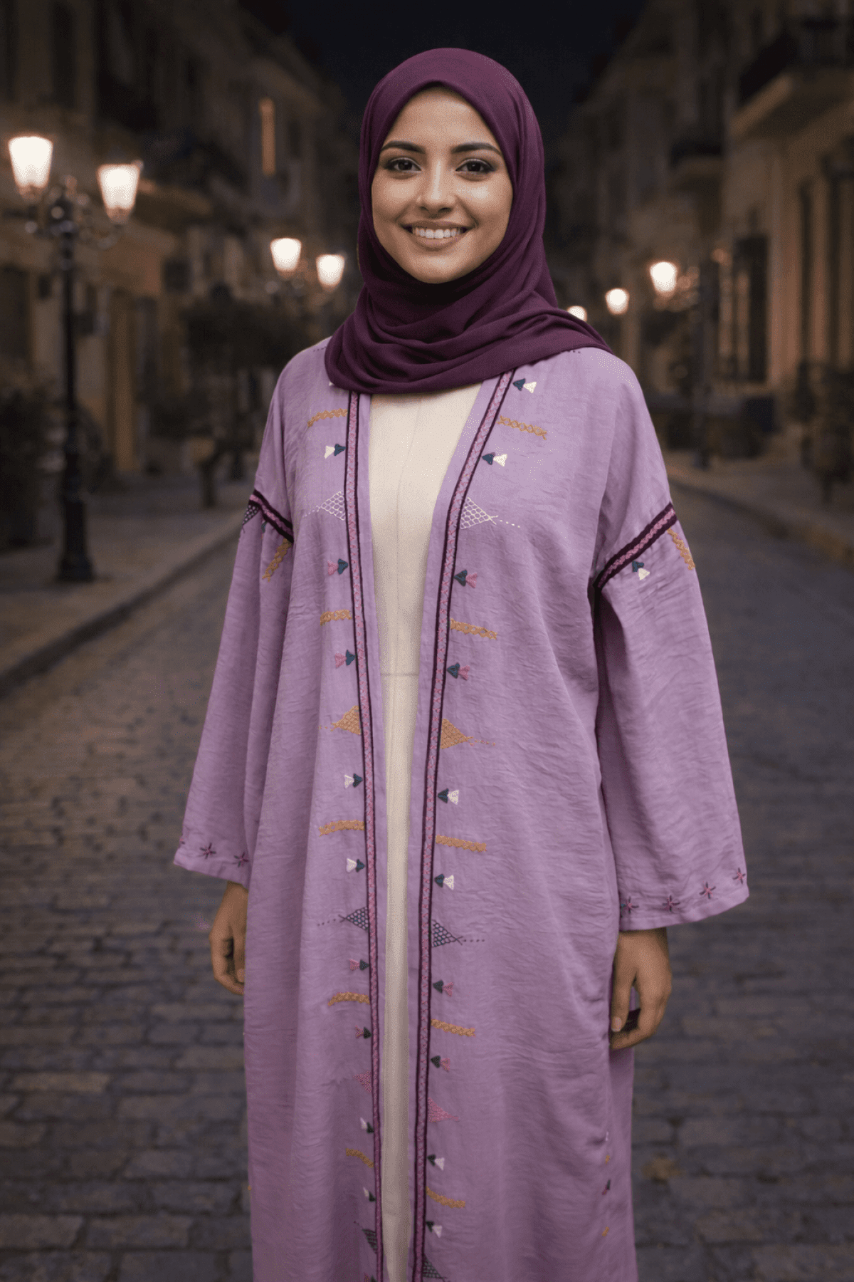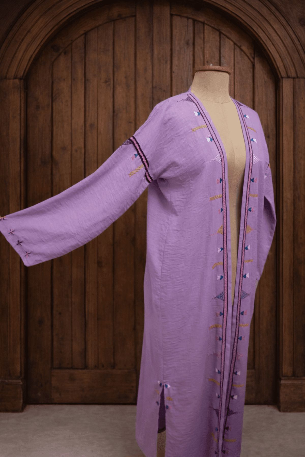قفطان من الكتان، مطرز يدويًا على يد نساء واحة سيوة. مستوحى من تراث سيوة. الطول 130 سم