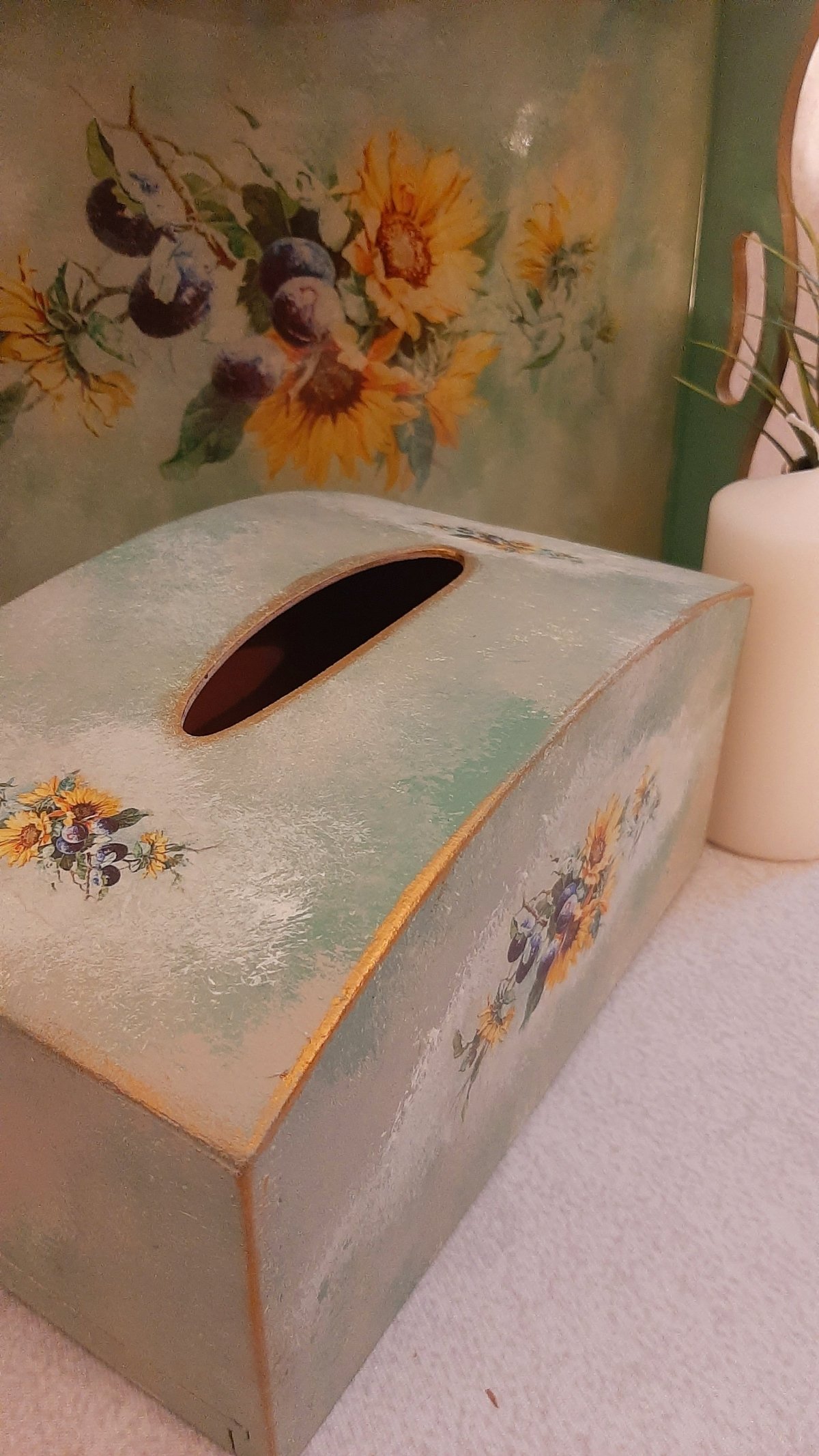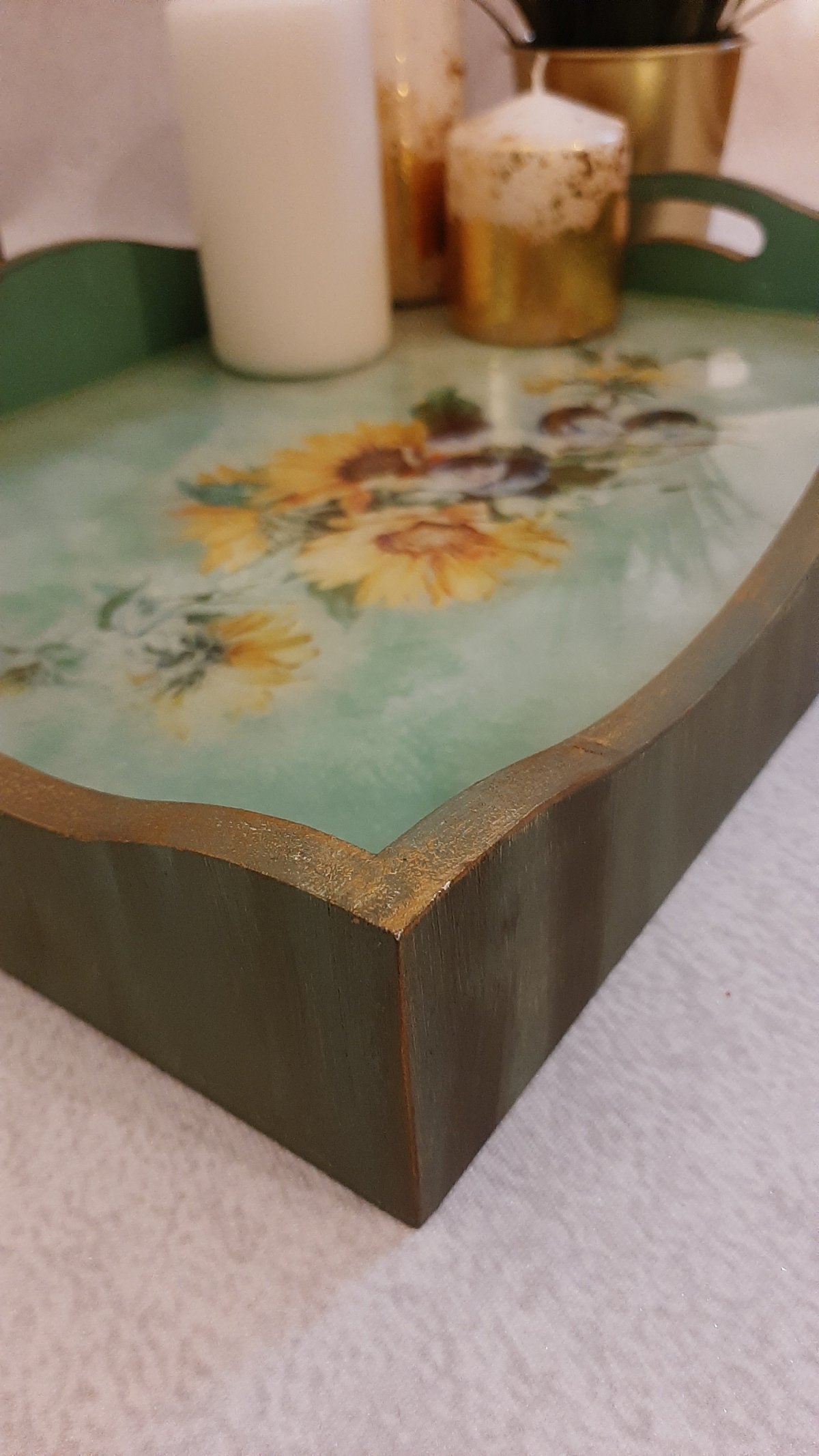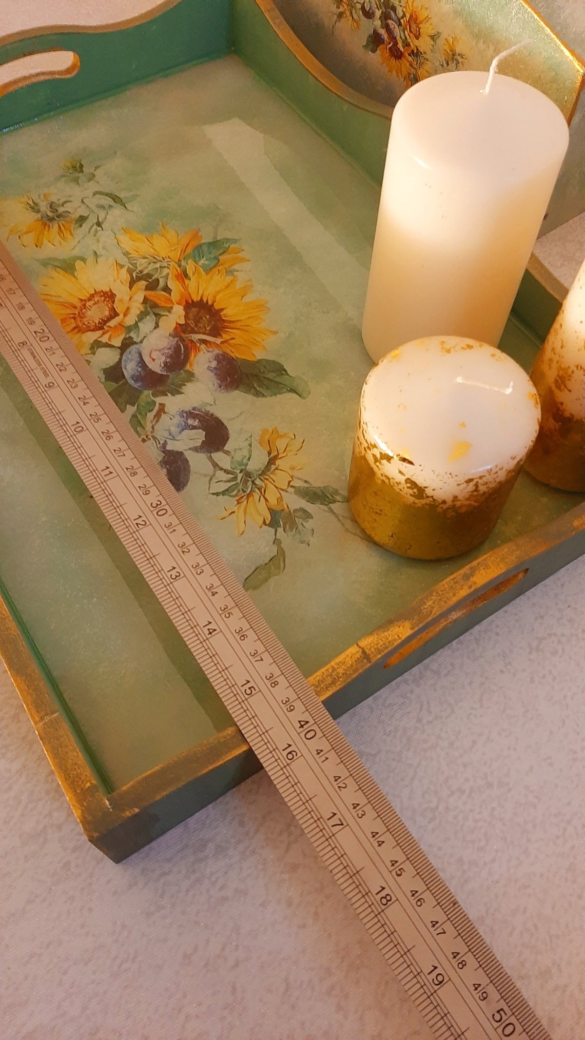 طقم صينية خشب ديكوباج خشب أم دي أف مستطيلة مع علبة مناديل كبيرة الصينية مقاس 39*29 سم صناعة يدوي 100% مع طبقة حماية ضد الماء ايبوكسي