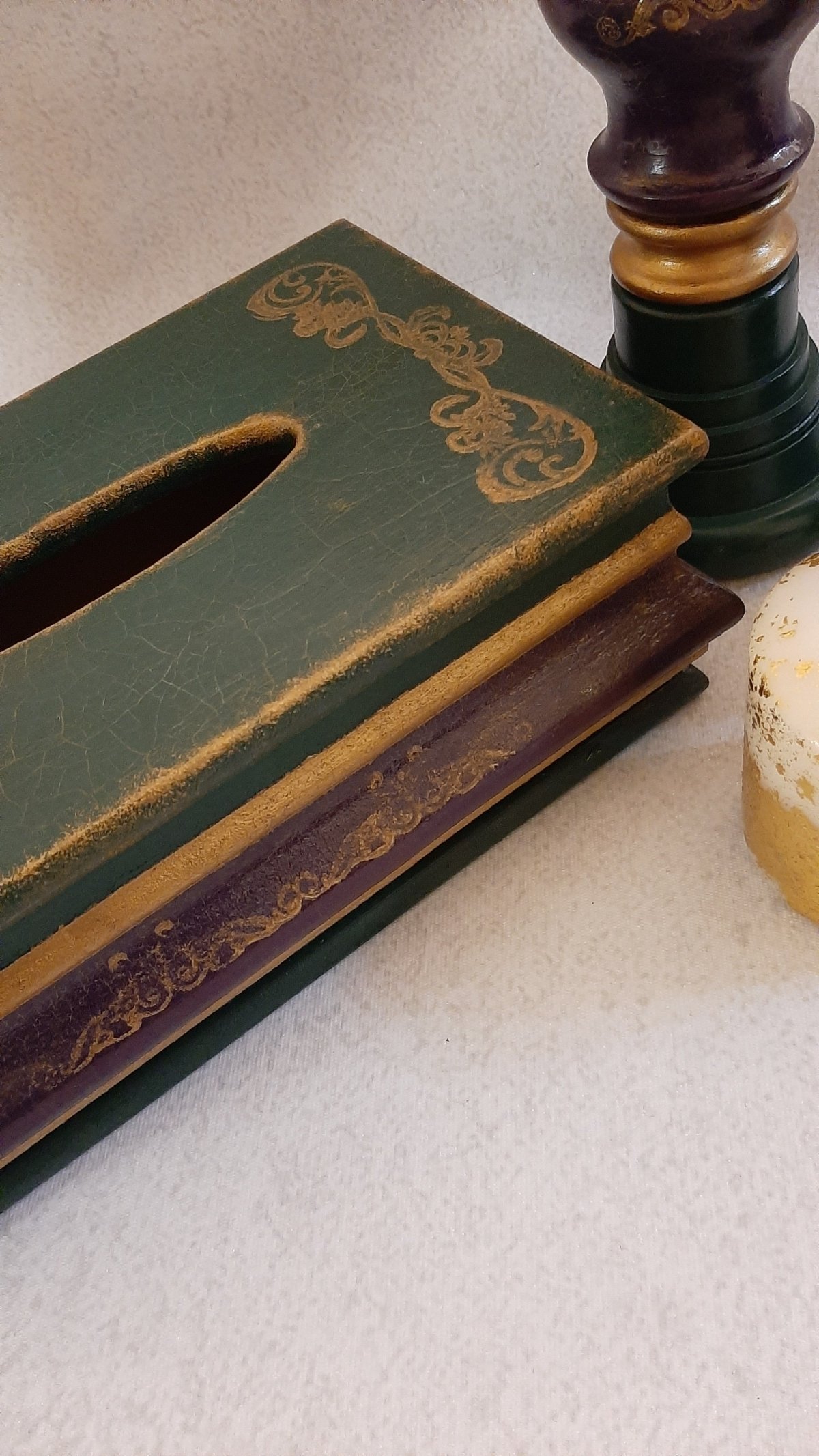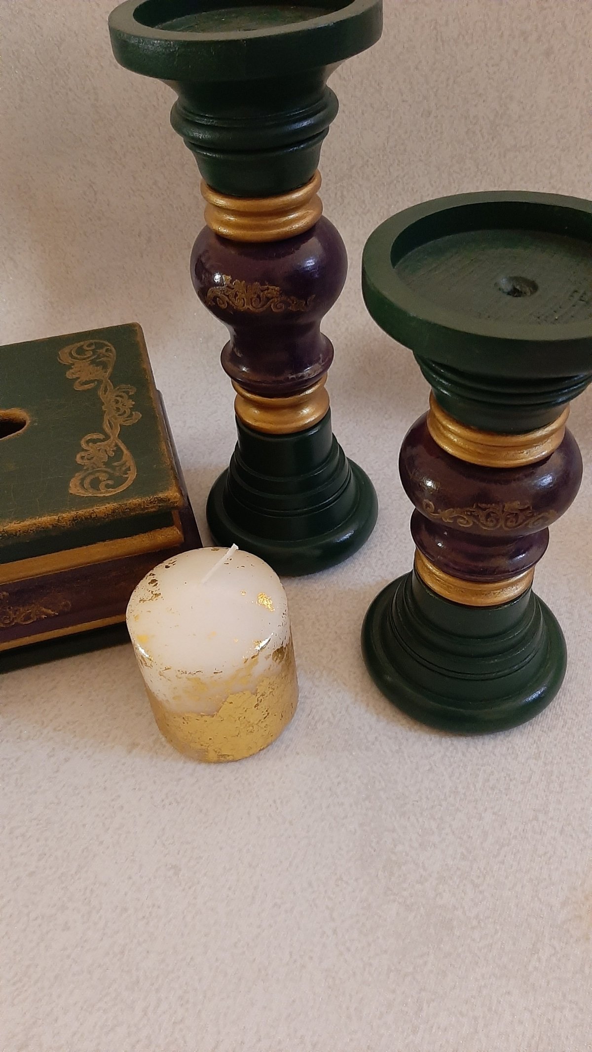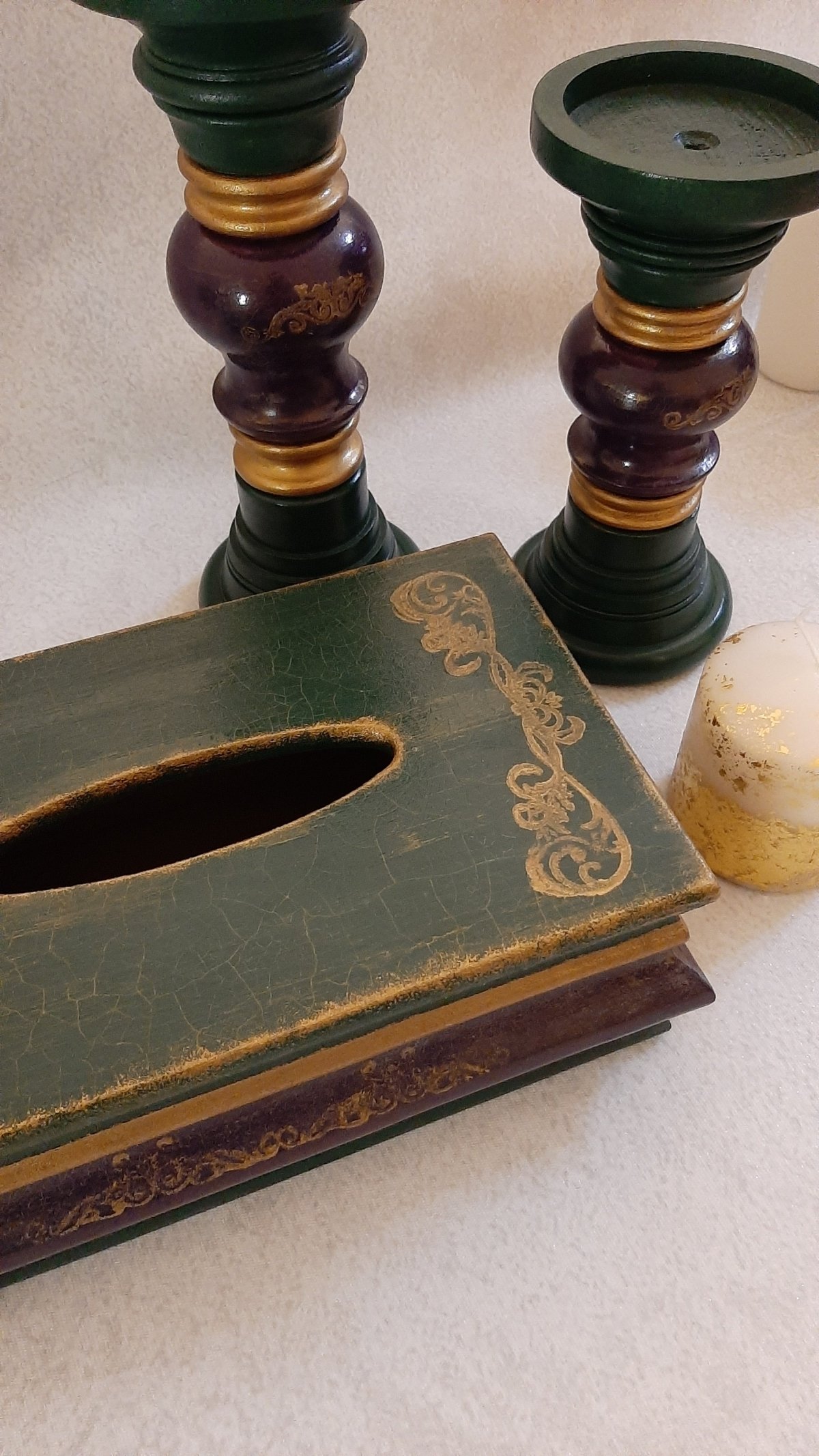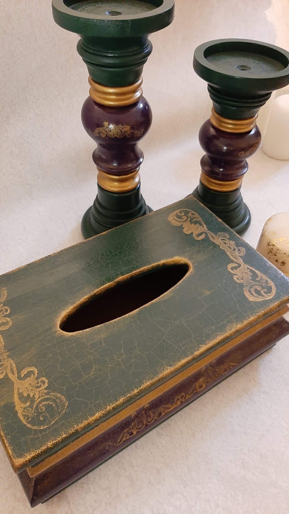 طقم مكون من علبة مناديل خشب أم دي أف مع قطعتين حامل للشمع من خشب الزان الطبيعي