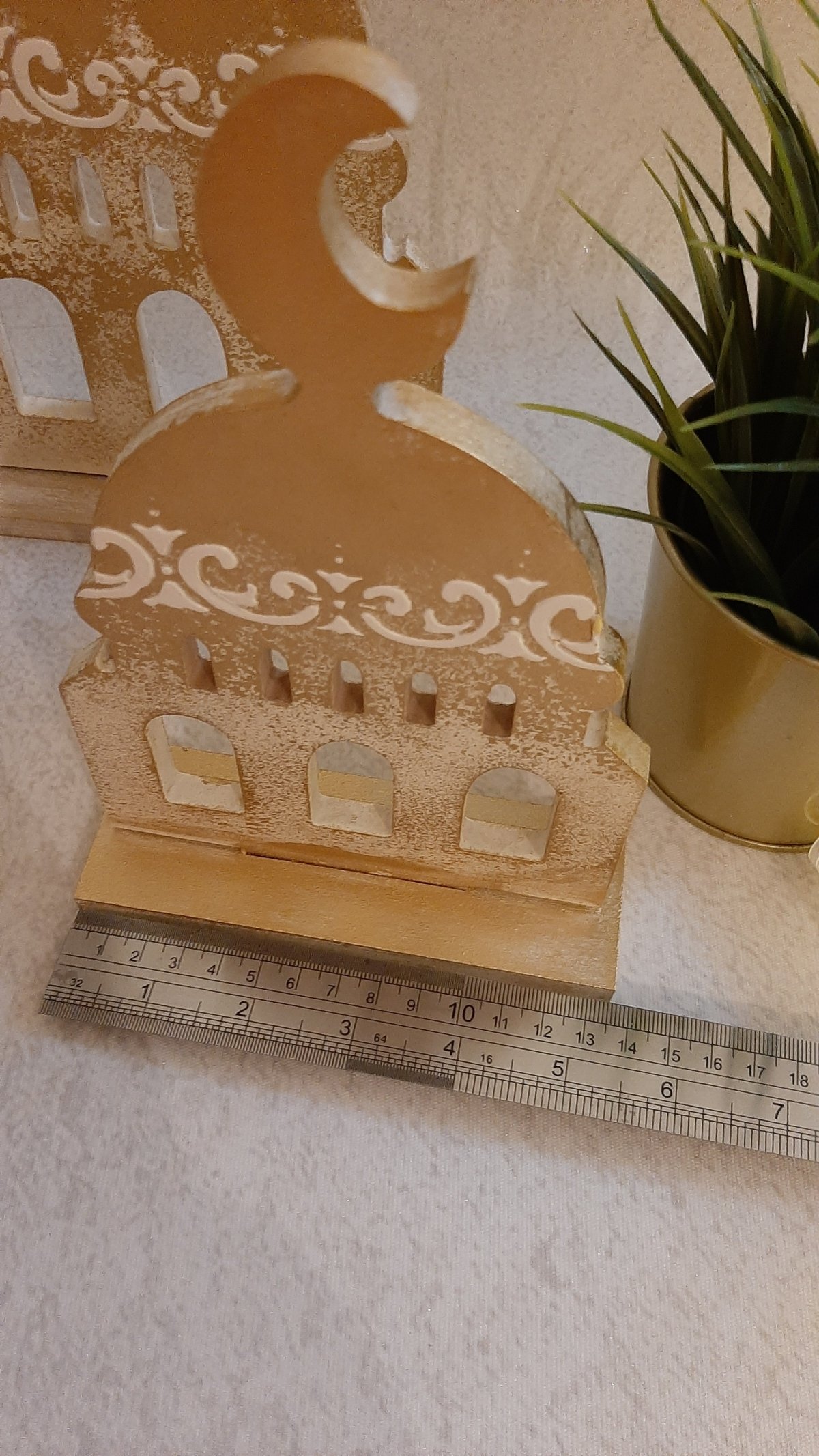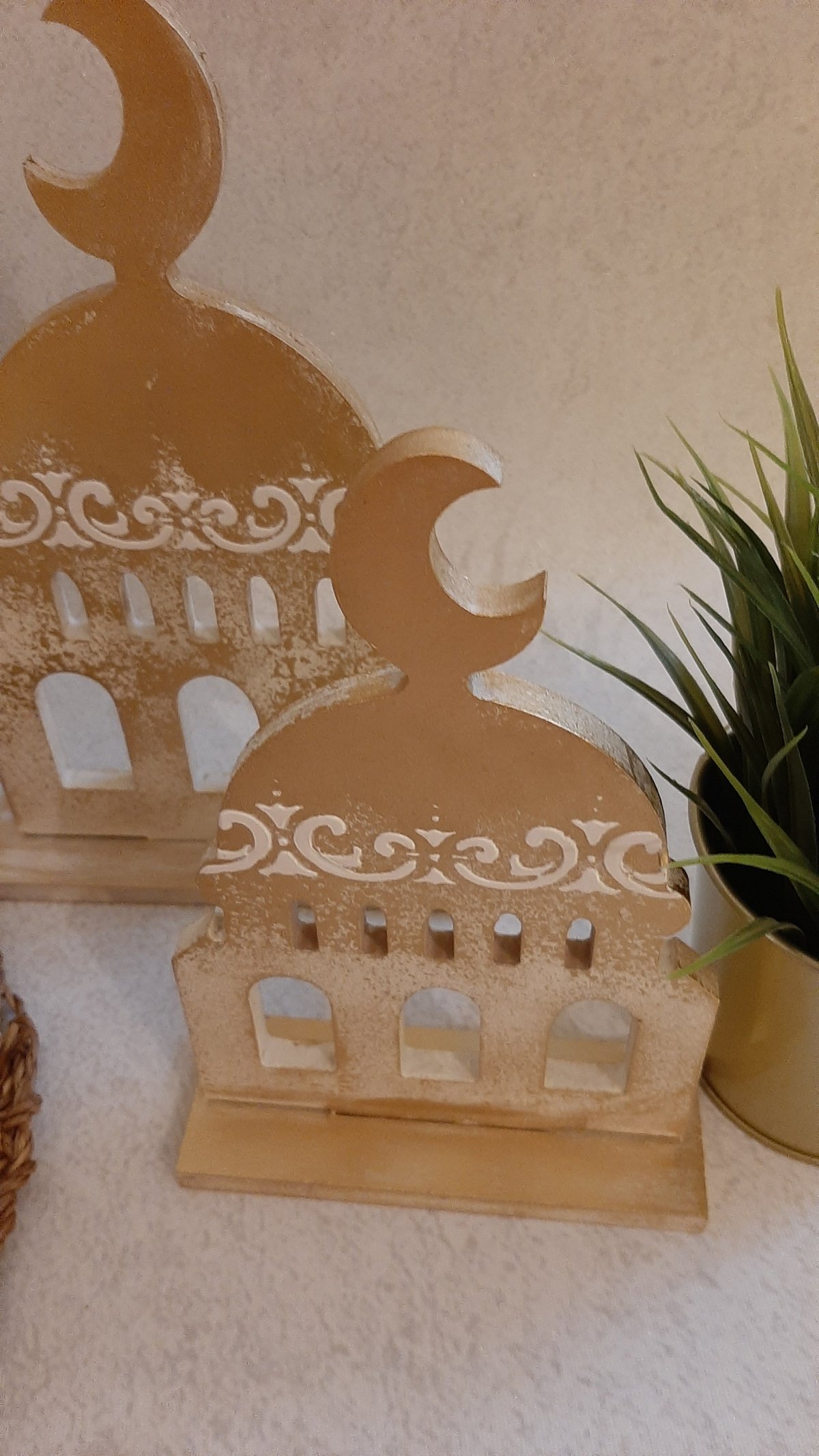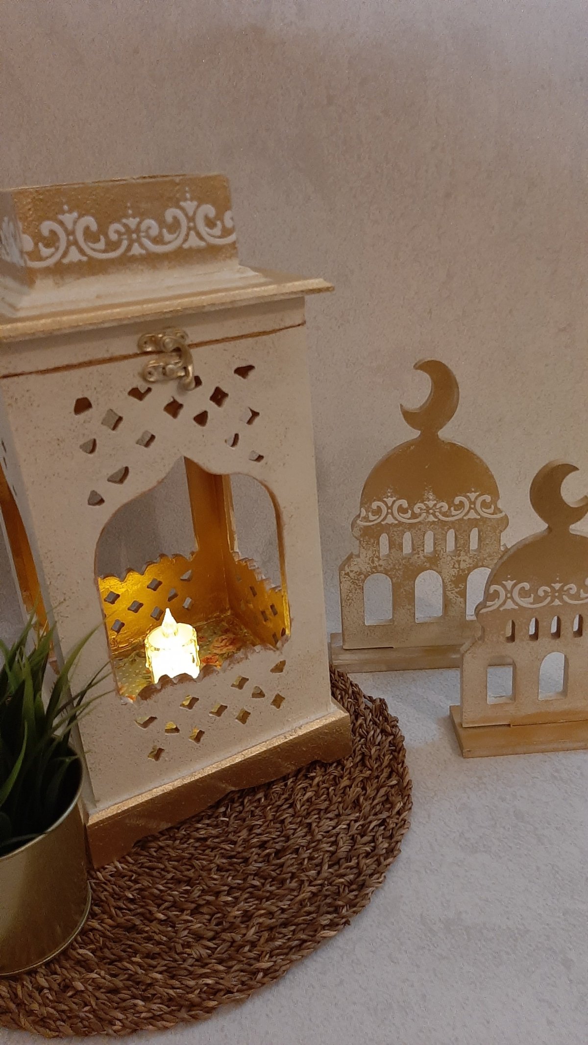 ذهبي في ابيض طقم فانوس رمضان مع قبة مسجد