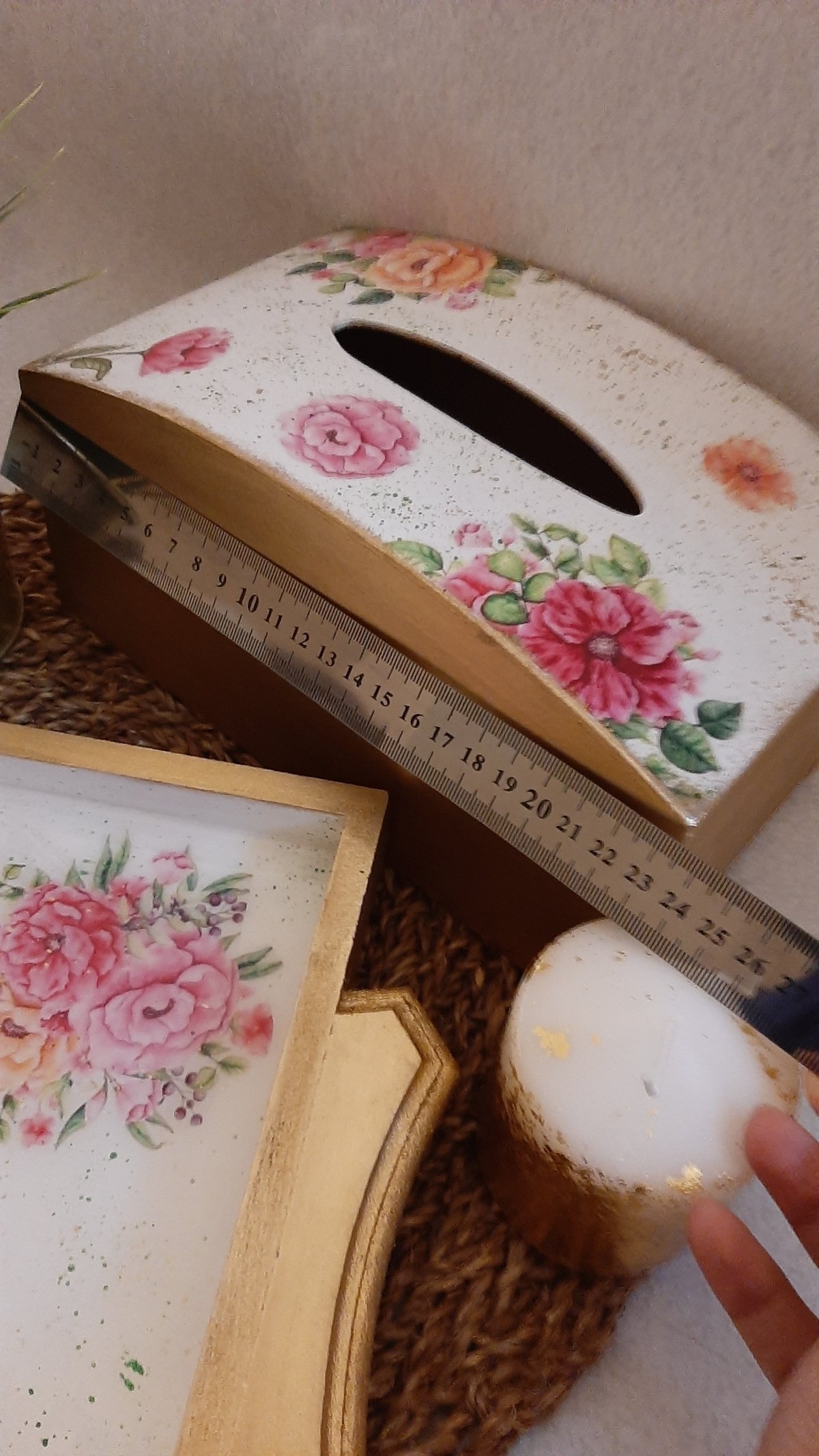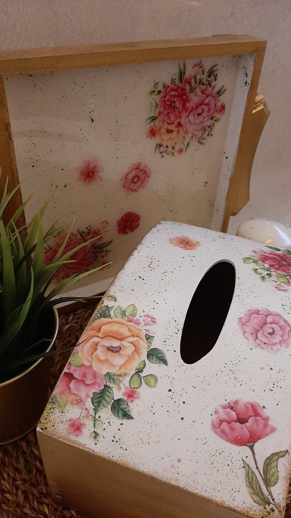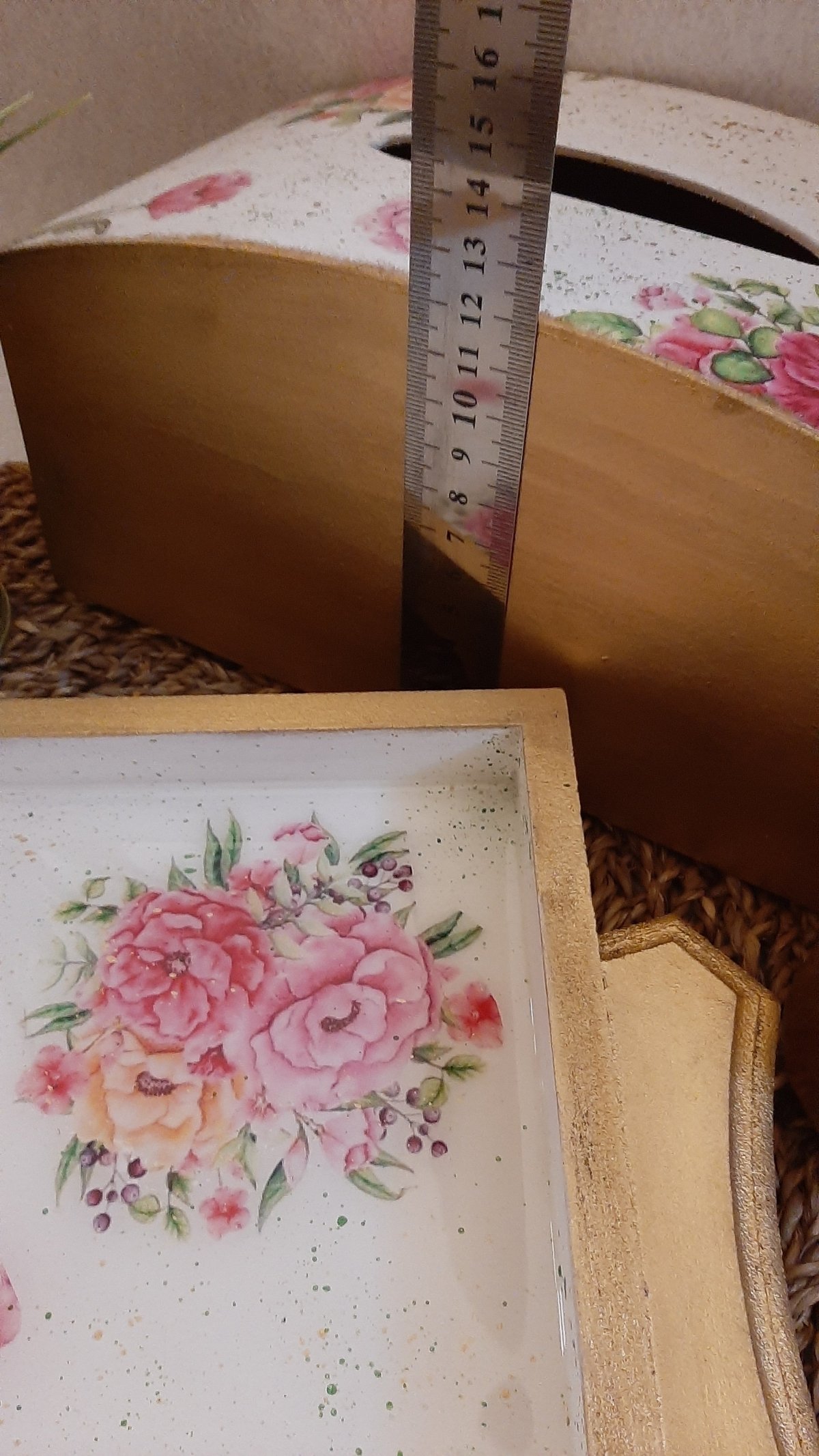 صينية خشب ديكوباج خشب أم دي أف الصينية مربعة الشكل الصينية 25*25سم لونها دهبي*أبيض صناعة يدوي مع طبقة حماية ضد الماء مع طبقة حماية من الايبوكسي الشفاف