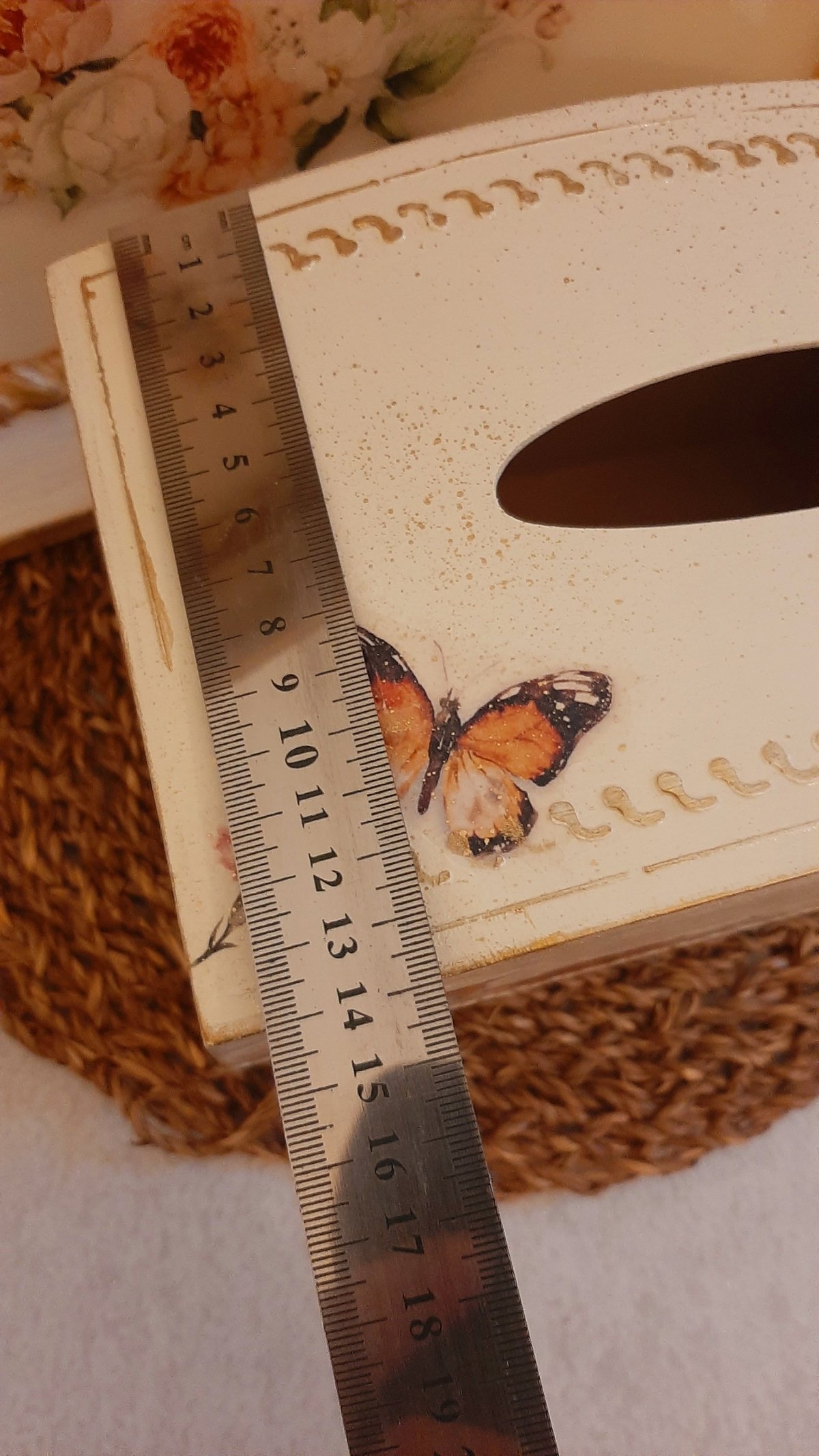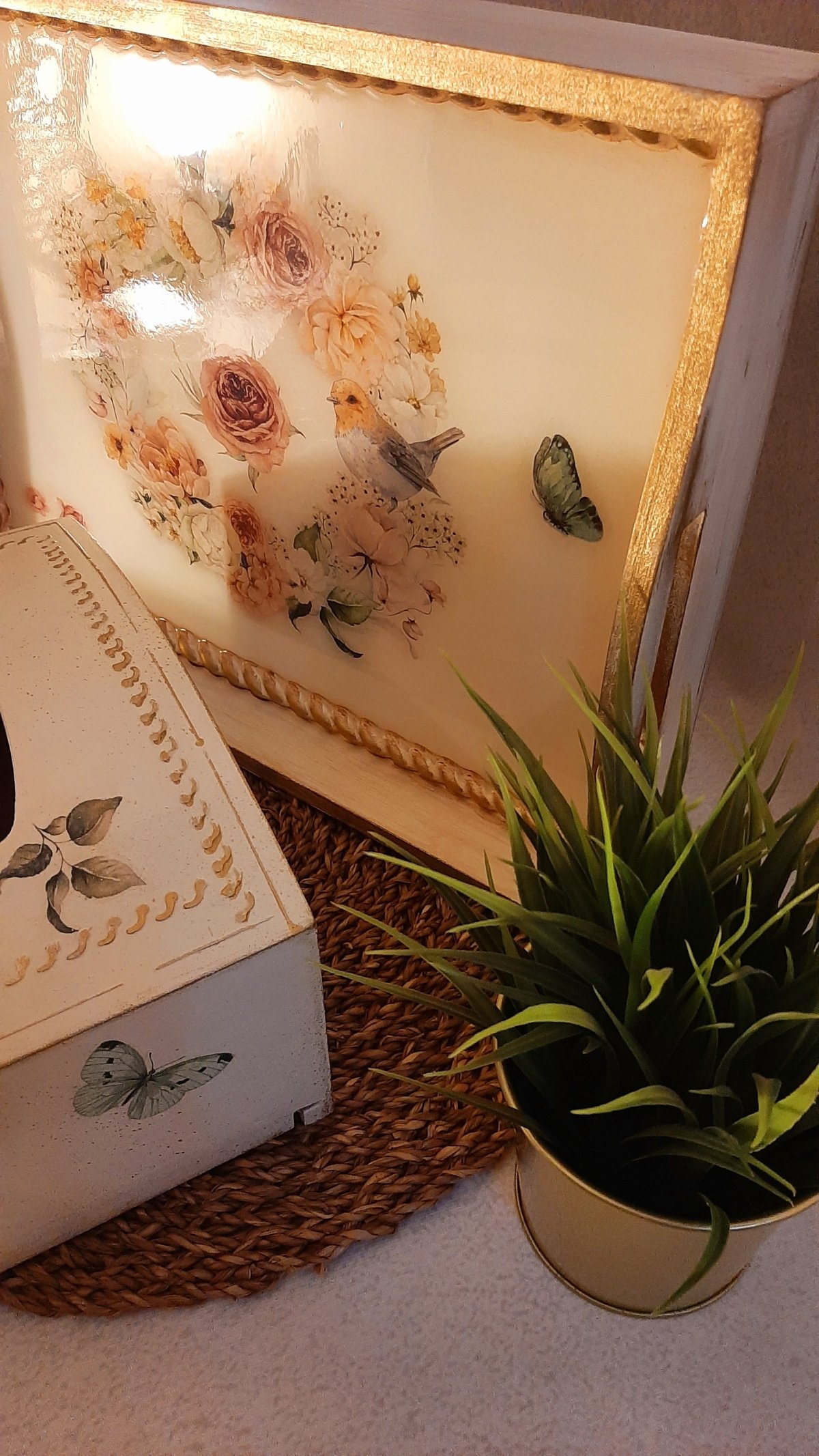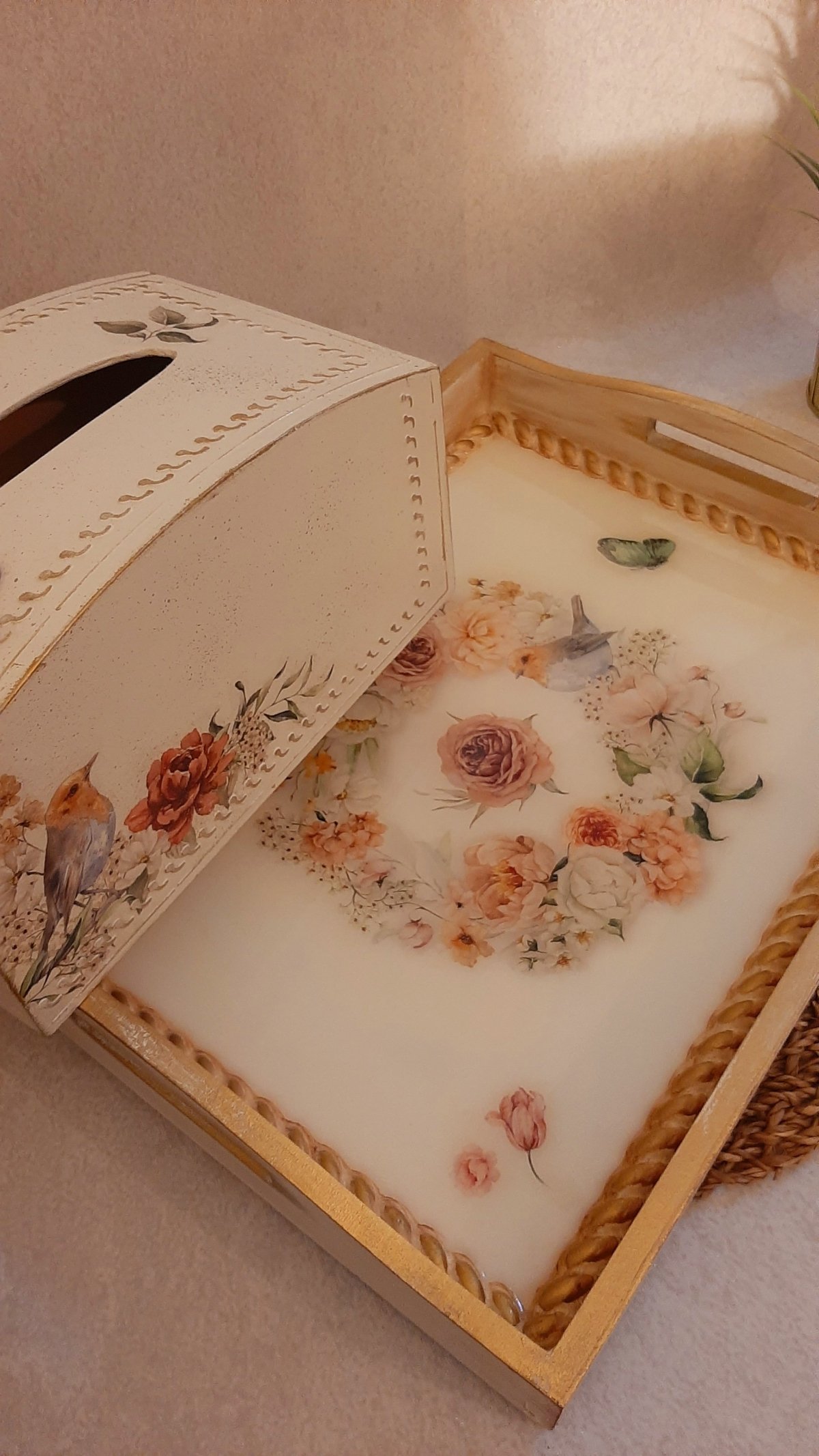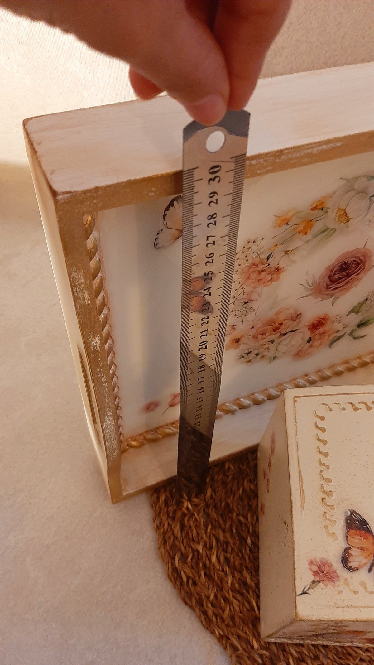 صينية خشب ديكوباج خشب أم دي أف مستطيلة المقاس 30*39 سم لونها أبيض*دهبي صناعة يدوي 100% مع طبقة حماية ضد الماء مع طبقة حماية من الايبوكسي الشفاف