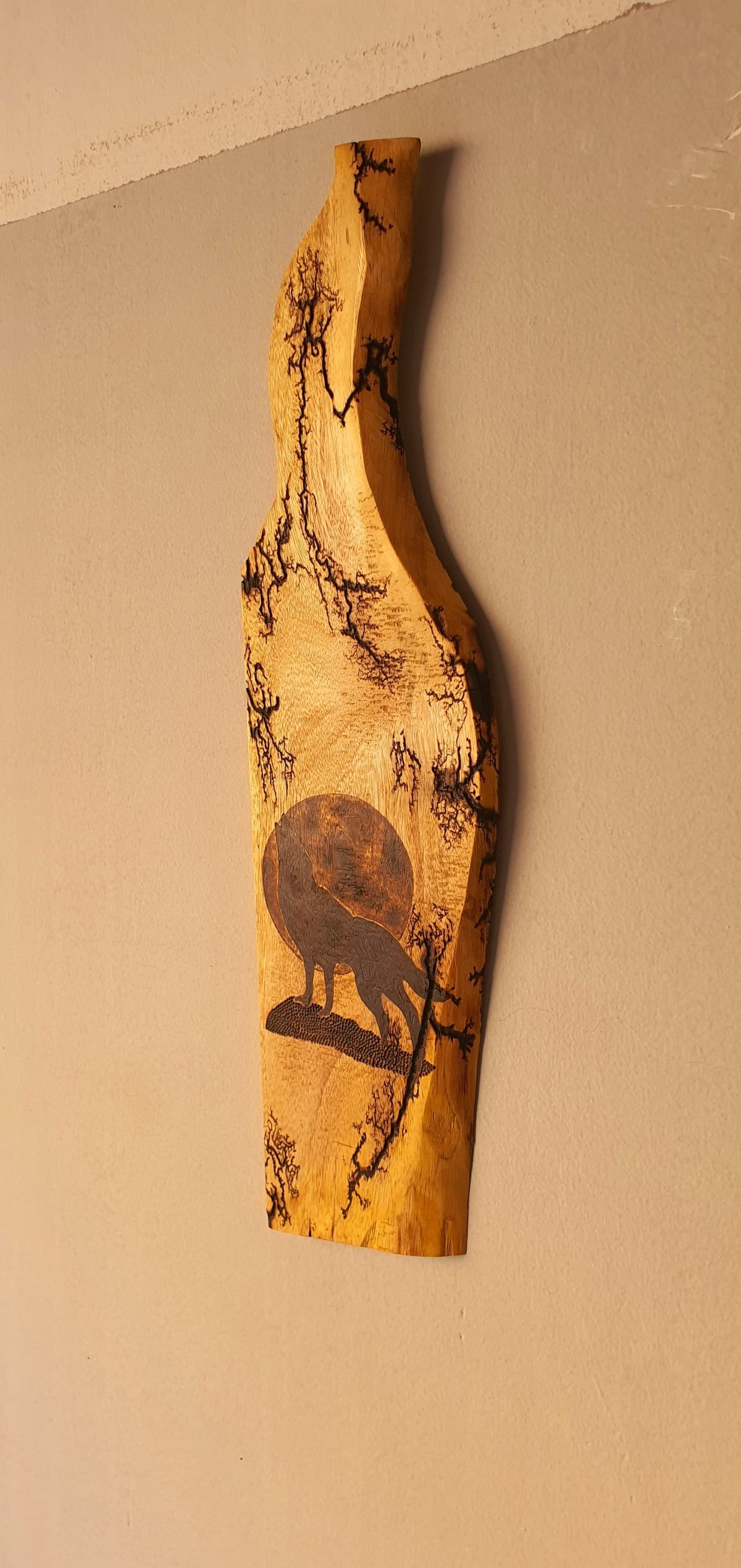 جذع شجر من خشب السرسوع مزين بتصميم فريد نفَّذناه بفن الحرق اليدوي على الخشب، للتعليق على الحائط وإضافة لمسة فنية دافئة تخطف الأنظار. الأبعاد الكلية: طول ٦٣ سم، عرض ١٧ سم