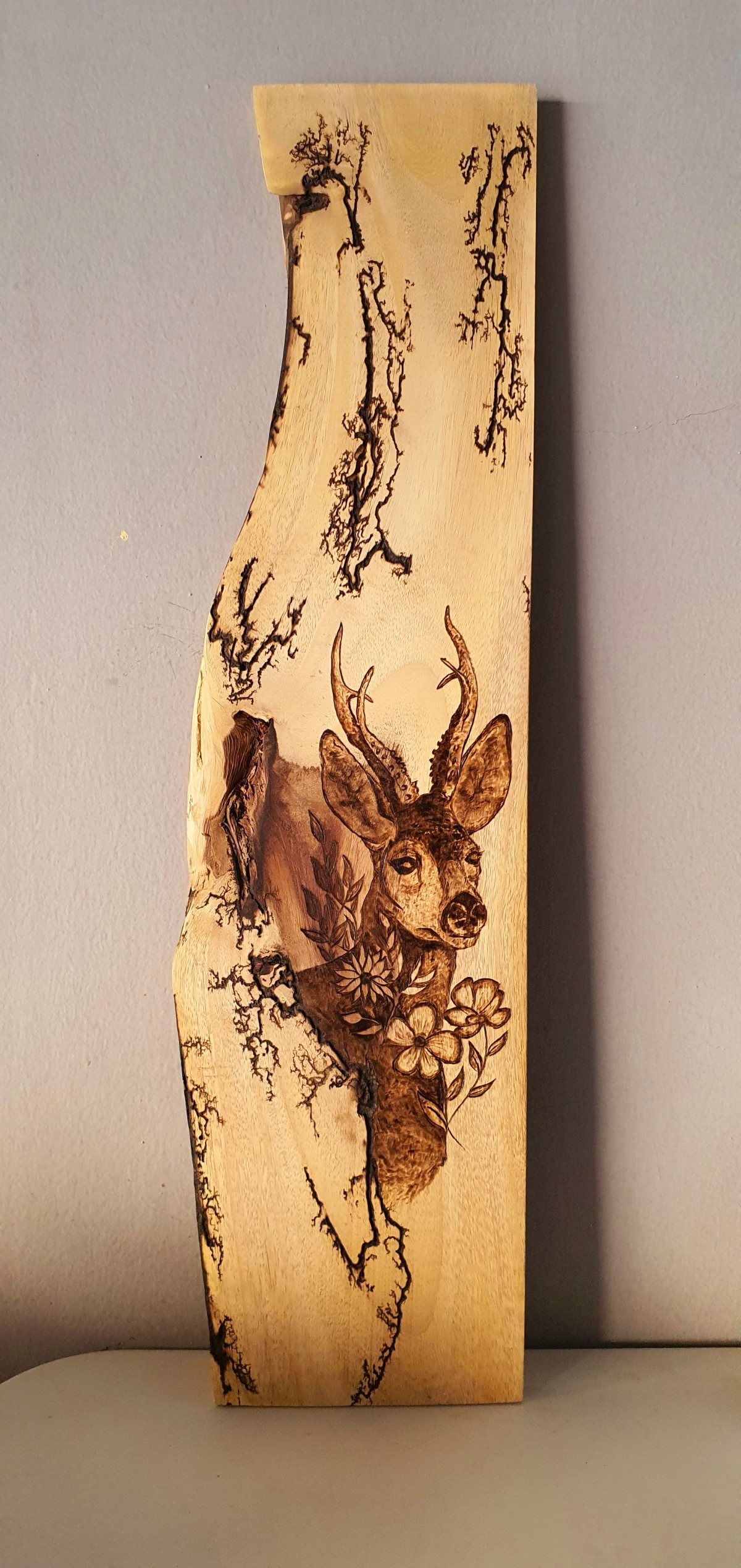 جذع شجر من خشب السرسوع مزين بتصميم فريد نفَّذناه بفن الحرق اليدوي على الخشب، للتعليق على الحائط وإضافة لمسة فنية دافئة تخطف الأنظار. الأبعاد الكلية: طول ٦٣ سم، عرض ١٧ سم