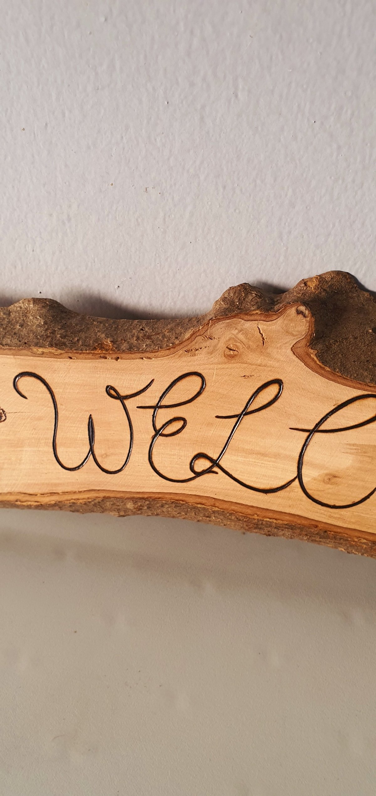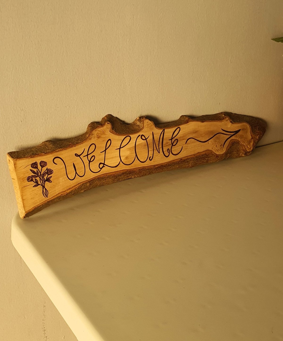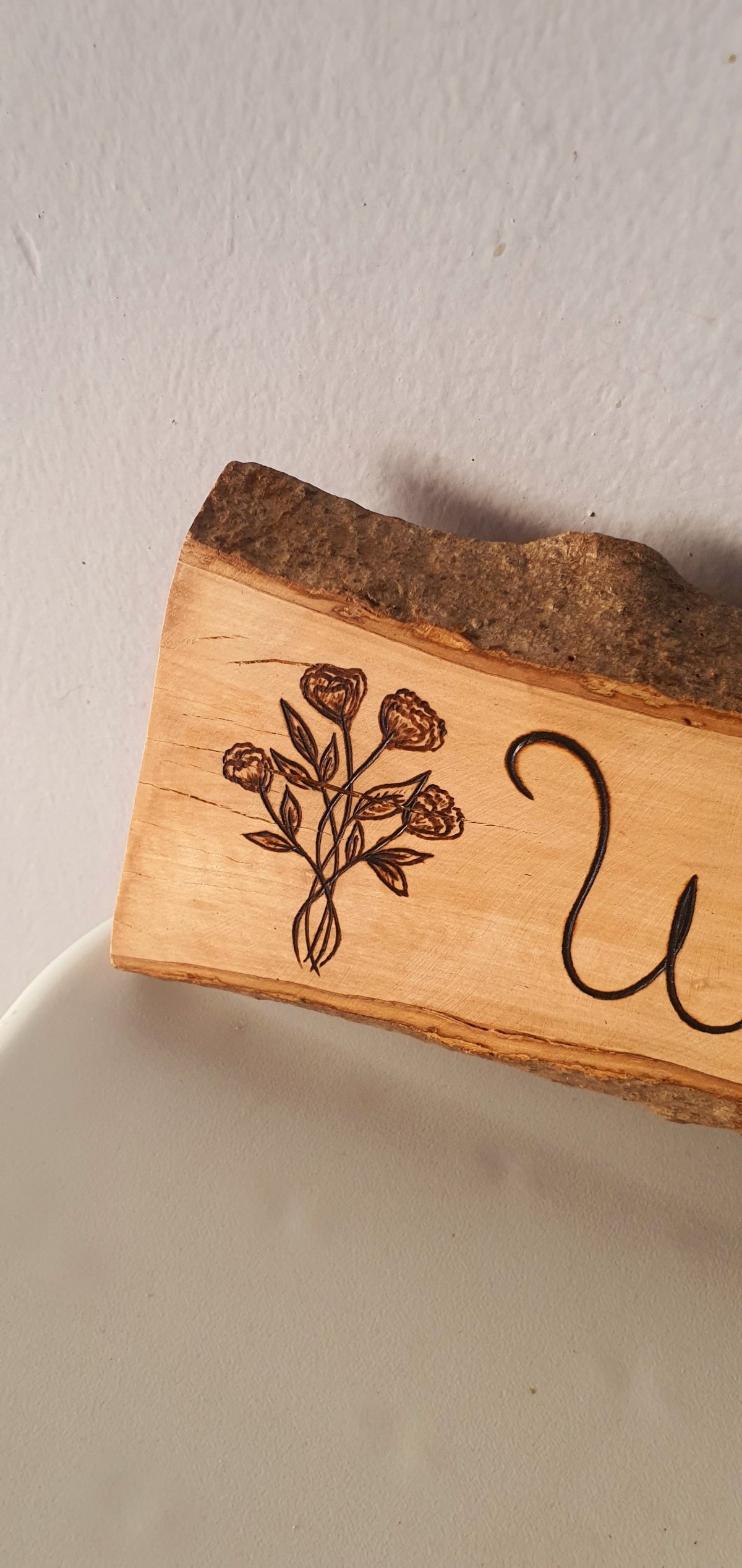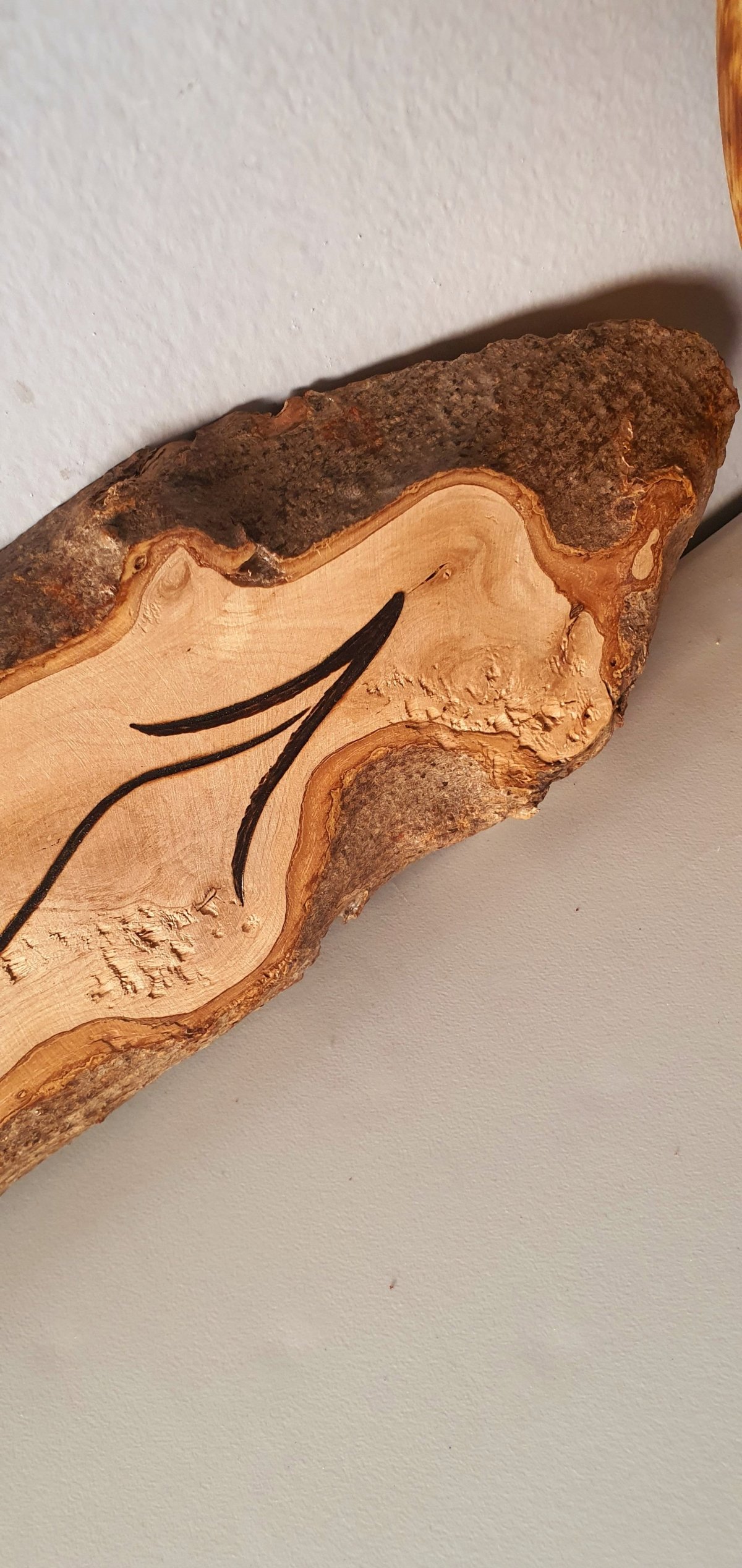 جذع شجر من خشب الزيتون مزين بتصميم فريد نفَّذناه بفن الحرق اليدوي على الخشب، للتعليق على الحائط وإضافة لمسة فنية دافئة تخطف الأنظار. الأبعاد الكلية: طول حوالي ٦٠ سم، عرض حوالي ١٢ سم