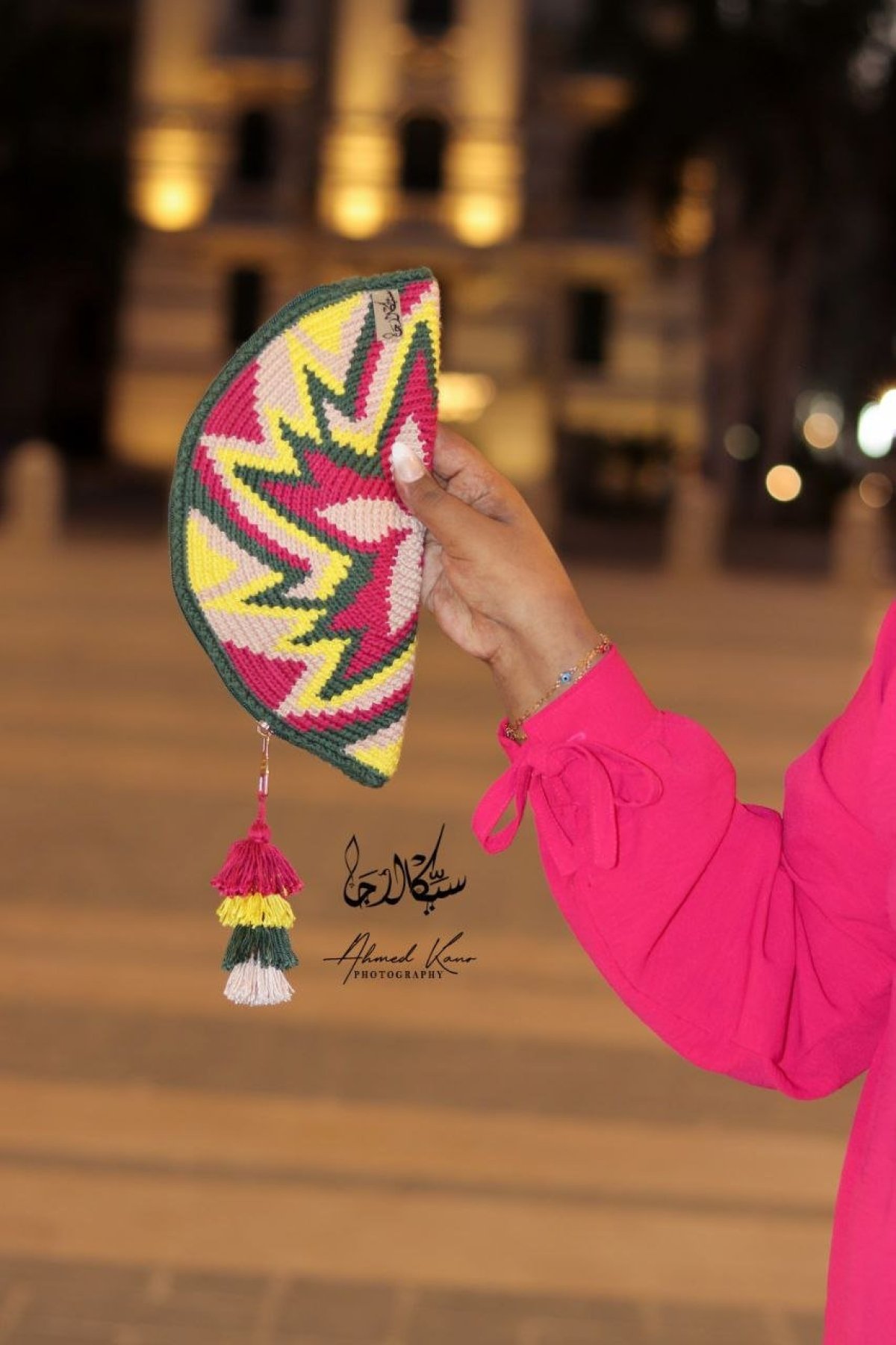 100% صناعة يدوية مقاس الشنطة: 28 سم الخامة: خيط تركي أكريليك ناعم ملمس القطن متاح التنفيذ بألوان ومقاسات أخري أصنعها بالطلب خلال مدة اقصاها أسبوعين تغسل بفرشاه ناعمه بماء درجته حرارته القصوي 30 ومنظف لا تعصر