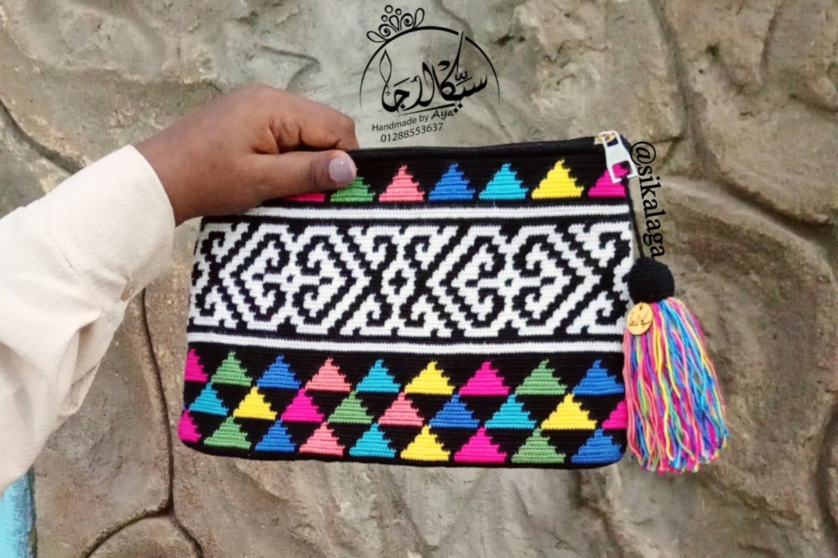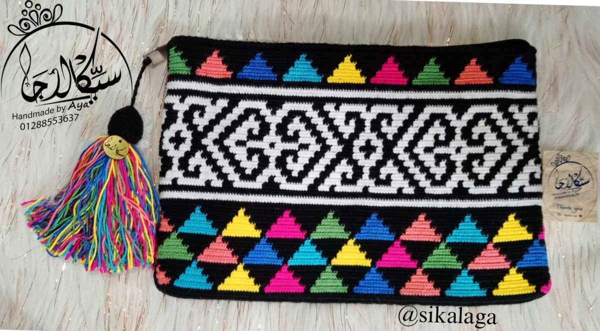 مقاس الكلاتش 30سم * 20سم الخامة خيط تركي أكريليك ناعم ملمس القطن متاح التنفيذ بألوان ومقاسات أخري تغسل بفرشاه ناعمه بماء درجته حرارته القصوي 30 ومنظف ثم توضع علي سطح مستوي لتجف