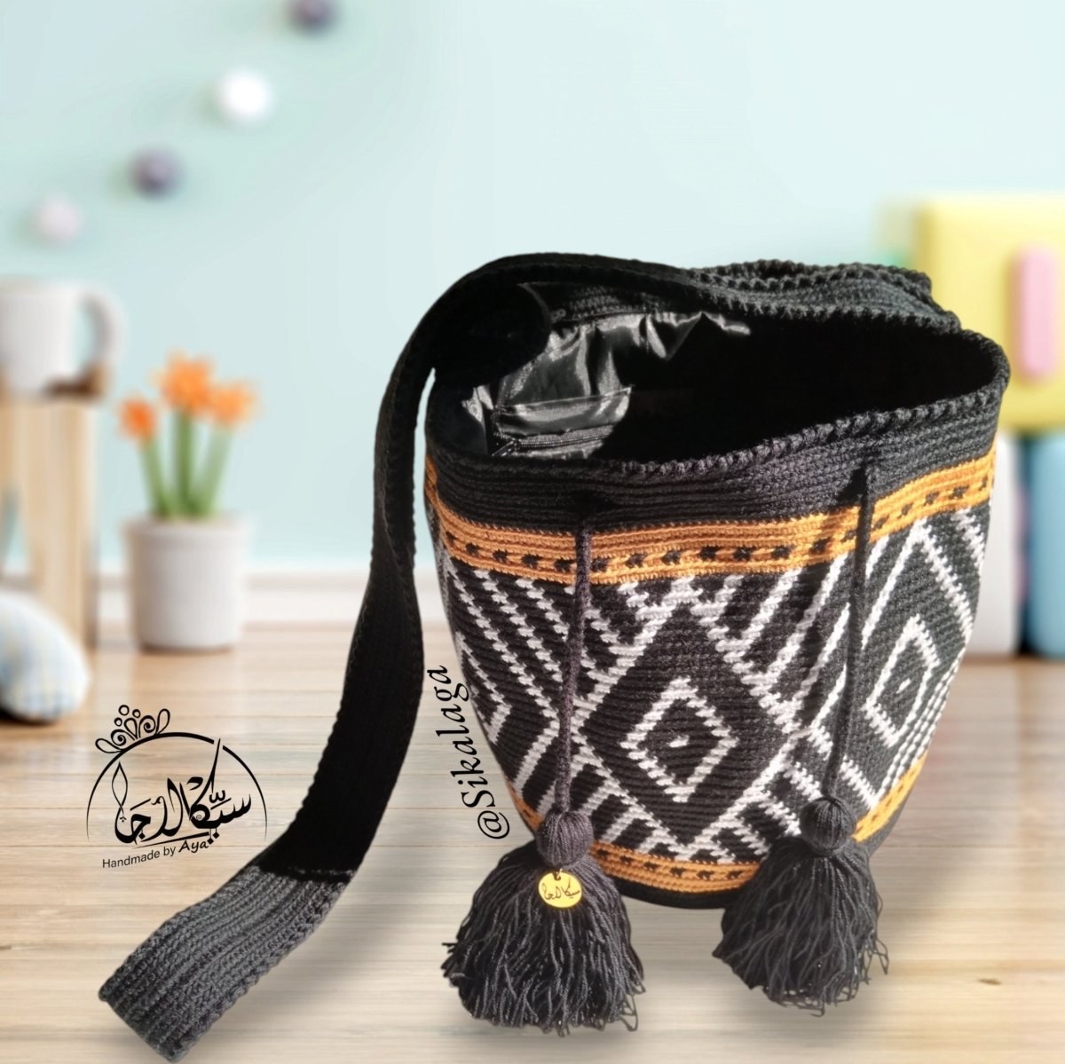 حقيبة موتشيلا 100% صناعة يدوية الطول 24سم وقطر القاعدة 20سم الخامة: خيط قطن تركي يمكنك تخصيص الألوان والحجم اغسلها بفرشاة ناعمة مع الماء بدرجة حرارة قصوى 30 ومنظف ، لا تعصر ثم توضع على سطح مستو لتجف