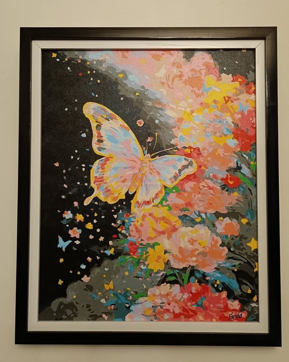 تابلوه هاند ميد الوان اكريليك علي كانفس المقاس 40*50 سم للرسمه مشدود علي اطار خشب وبرواز ابيض واسود