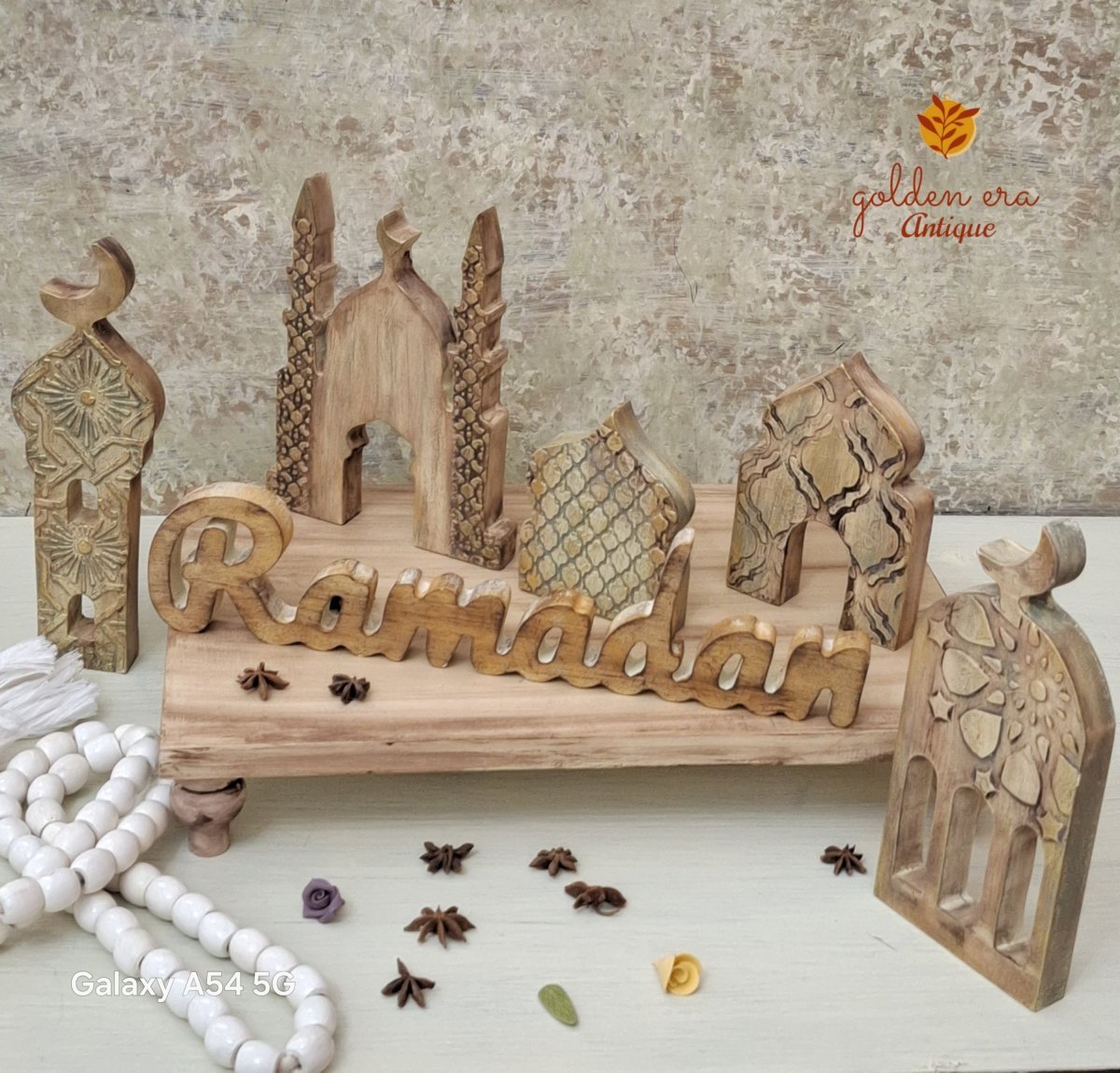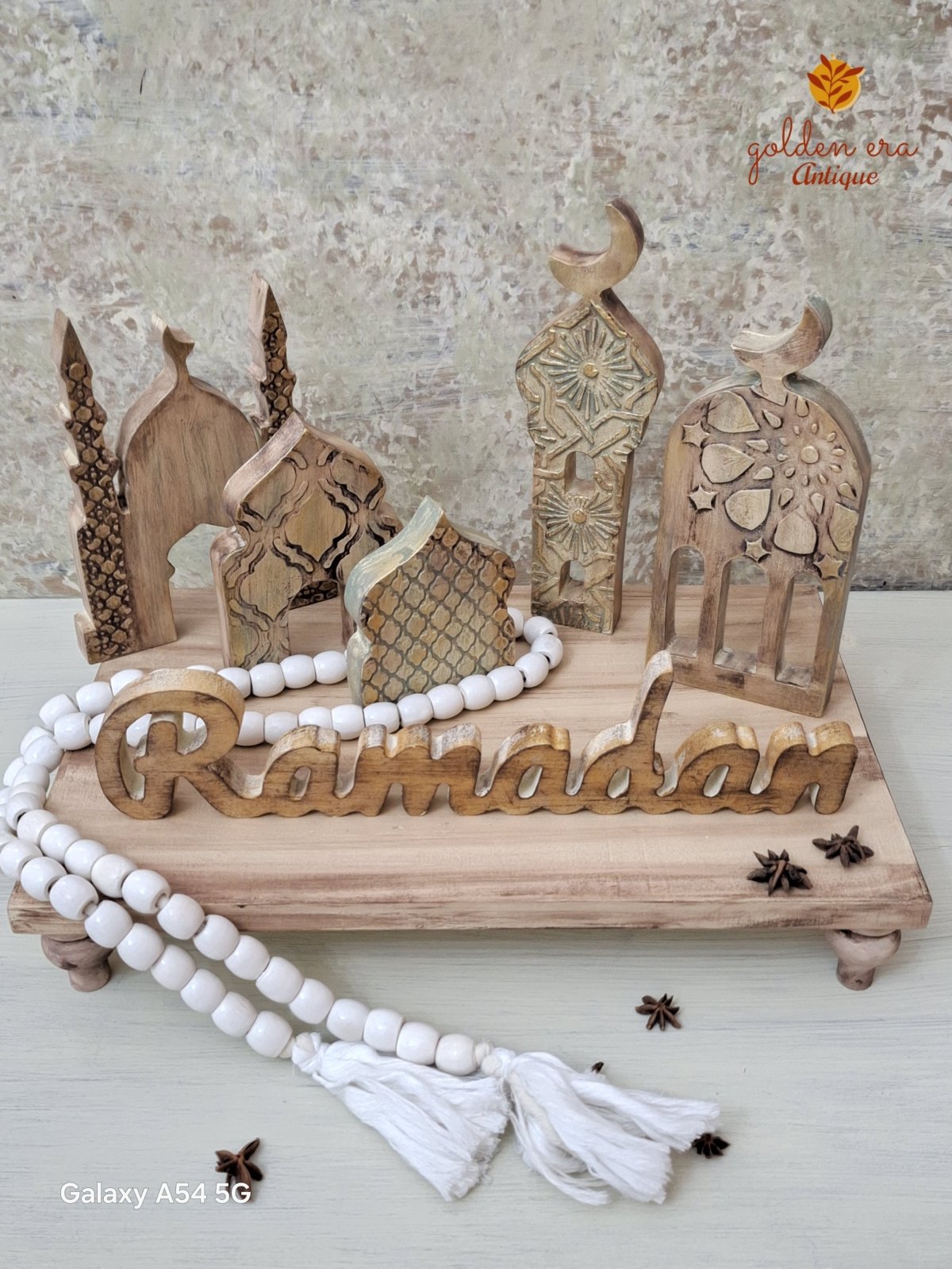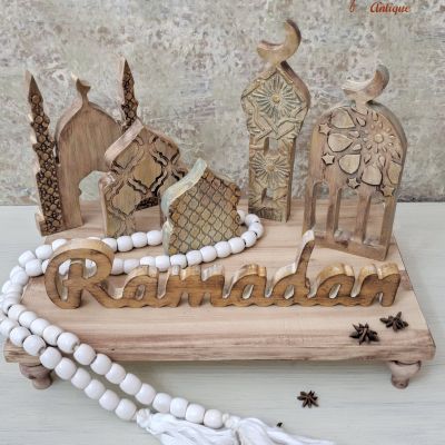 طقم ديكورى مكون من ٣ مأذن اطوال مختلفه صينيه ديكوريه دائرية قطر ٣٠ سم سبحه ديكورية