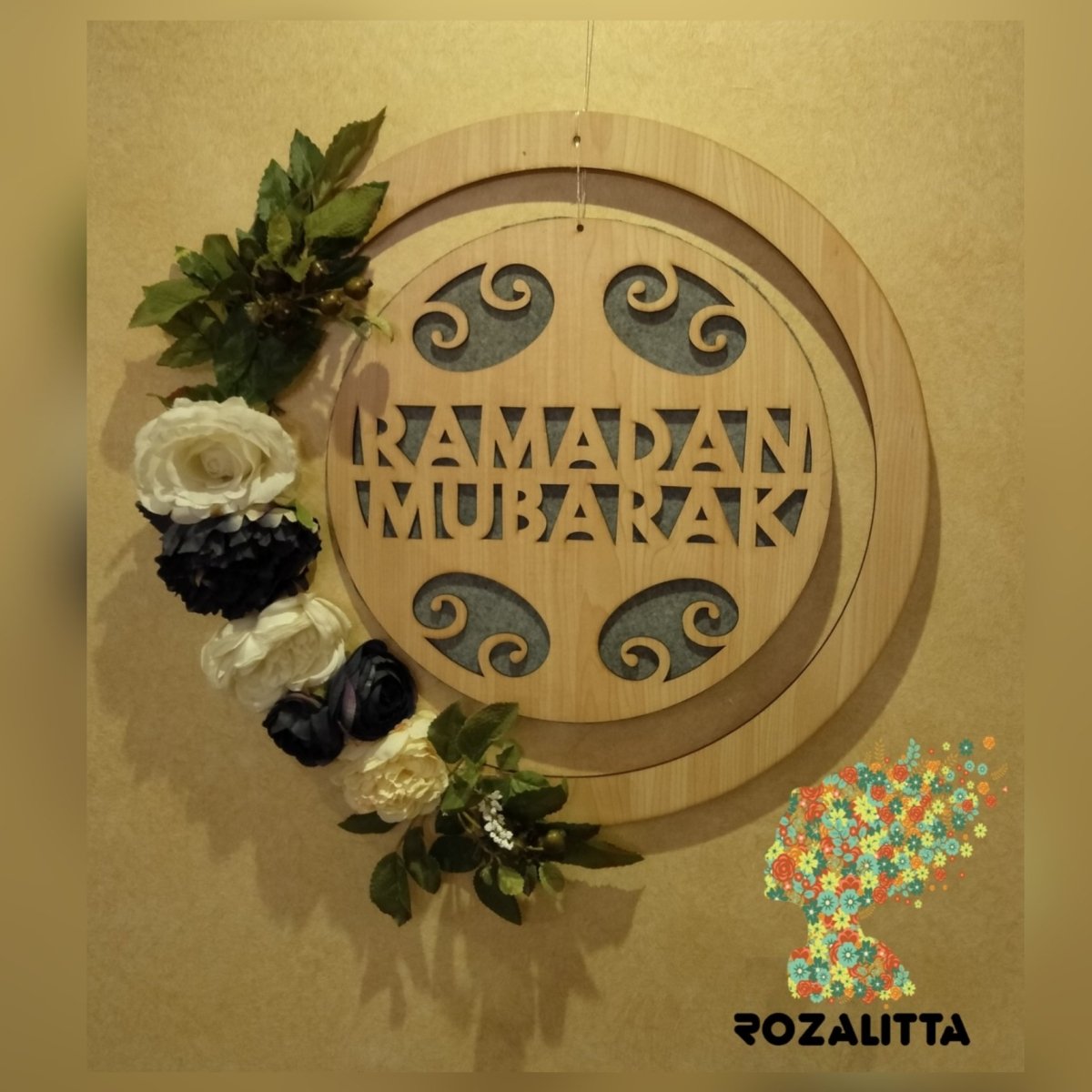 طارة من الخشب والورد الصناعي مقاس قطر 40 سم والورد حسب الطلب
