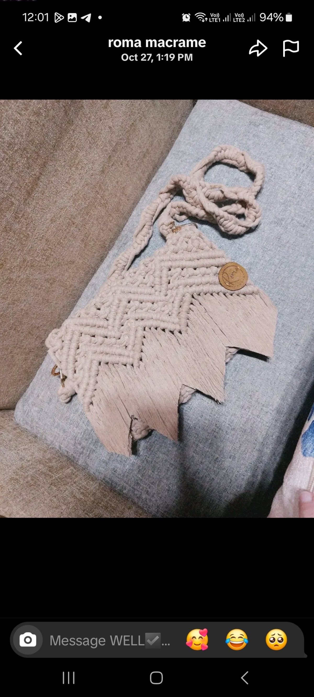 شنطه كروس هاند ميد بخيوط ناعمه مميزه ٢٥×١٥ جديده وعصريه