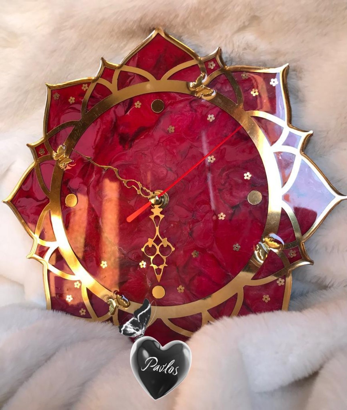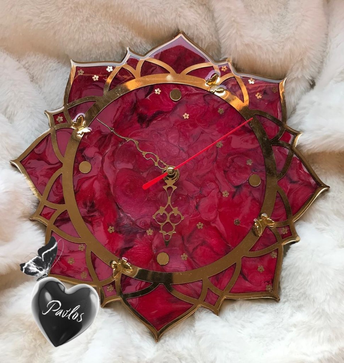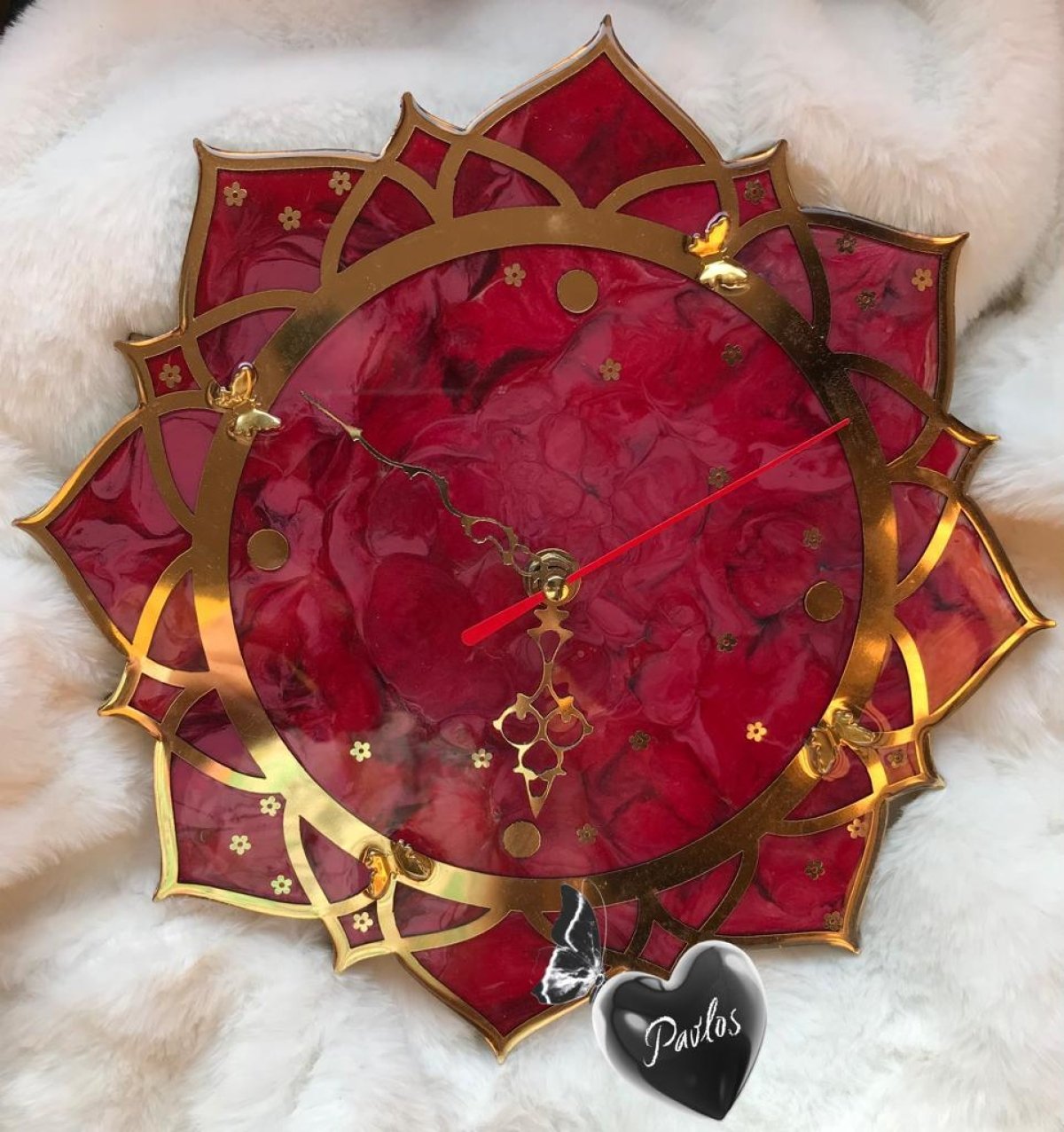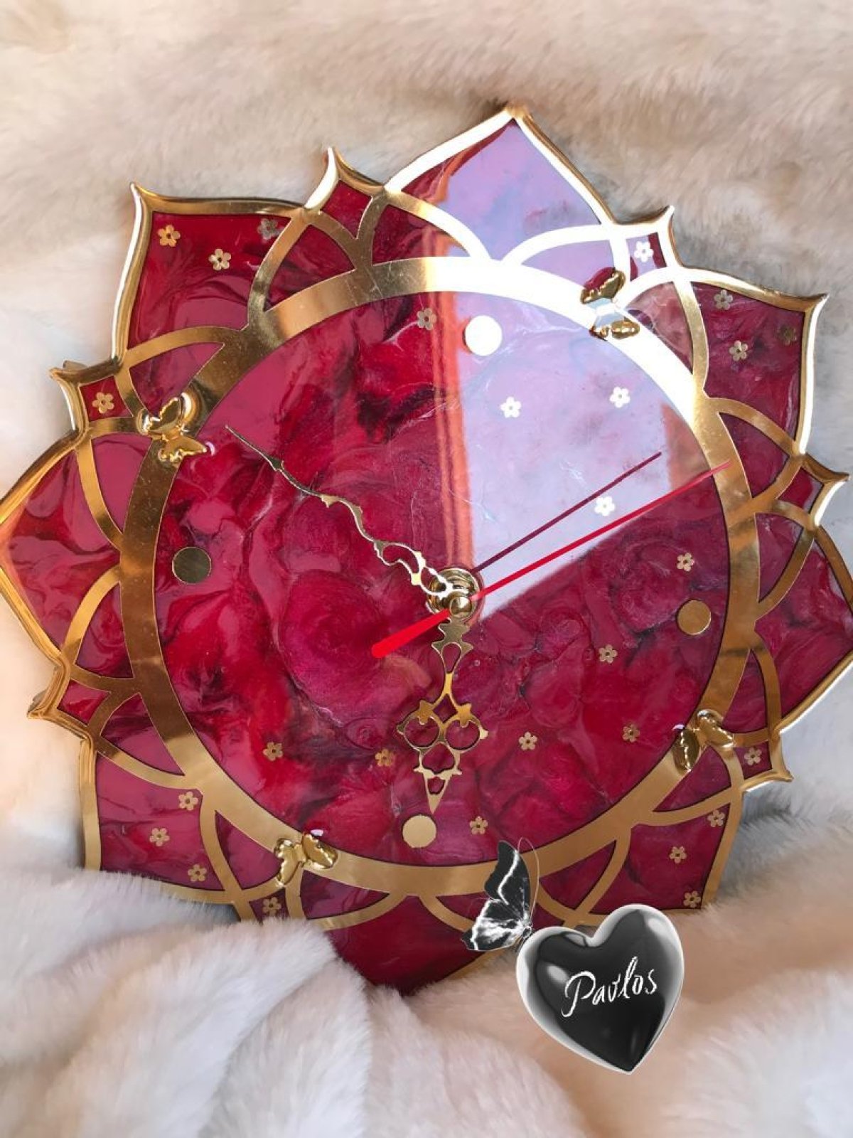 ساعة ريزن الشكل: علي شكل وردة المقاس: ٢٥ سم الجسم: خشبي اللون: أحمر * وردي * خطوط رفيعة باللون الاسود إضافات: اطار اكليريك ذهبي مراية علي شكل وردة + فراشات صغيرة باللون الذهبي + وردات صغيرة باللون الذهبي * نقط دائرية باللون الذهبي توضح ارقام الساعة الاساسية العقارب: اكليريك ذهبي لامع ماكينة الساعة: صنع في اليابان يمكن تعليقها علي الحائط او استخدامها كساعة مكتب بإستخدام الحامل الخشبي الخاص بها متاحة للتسليم الفوري•