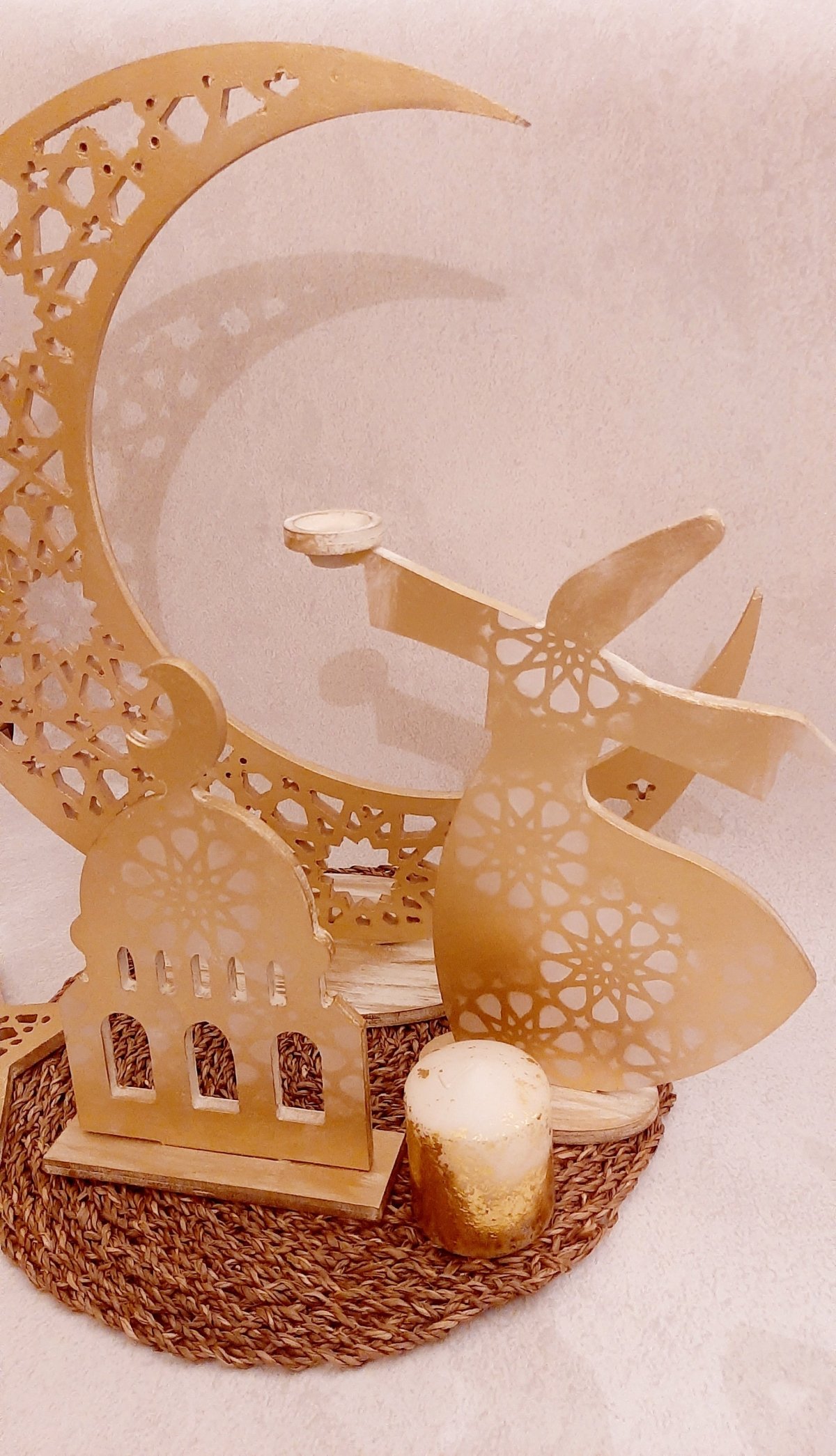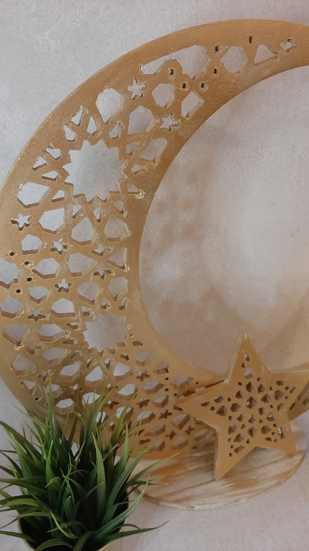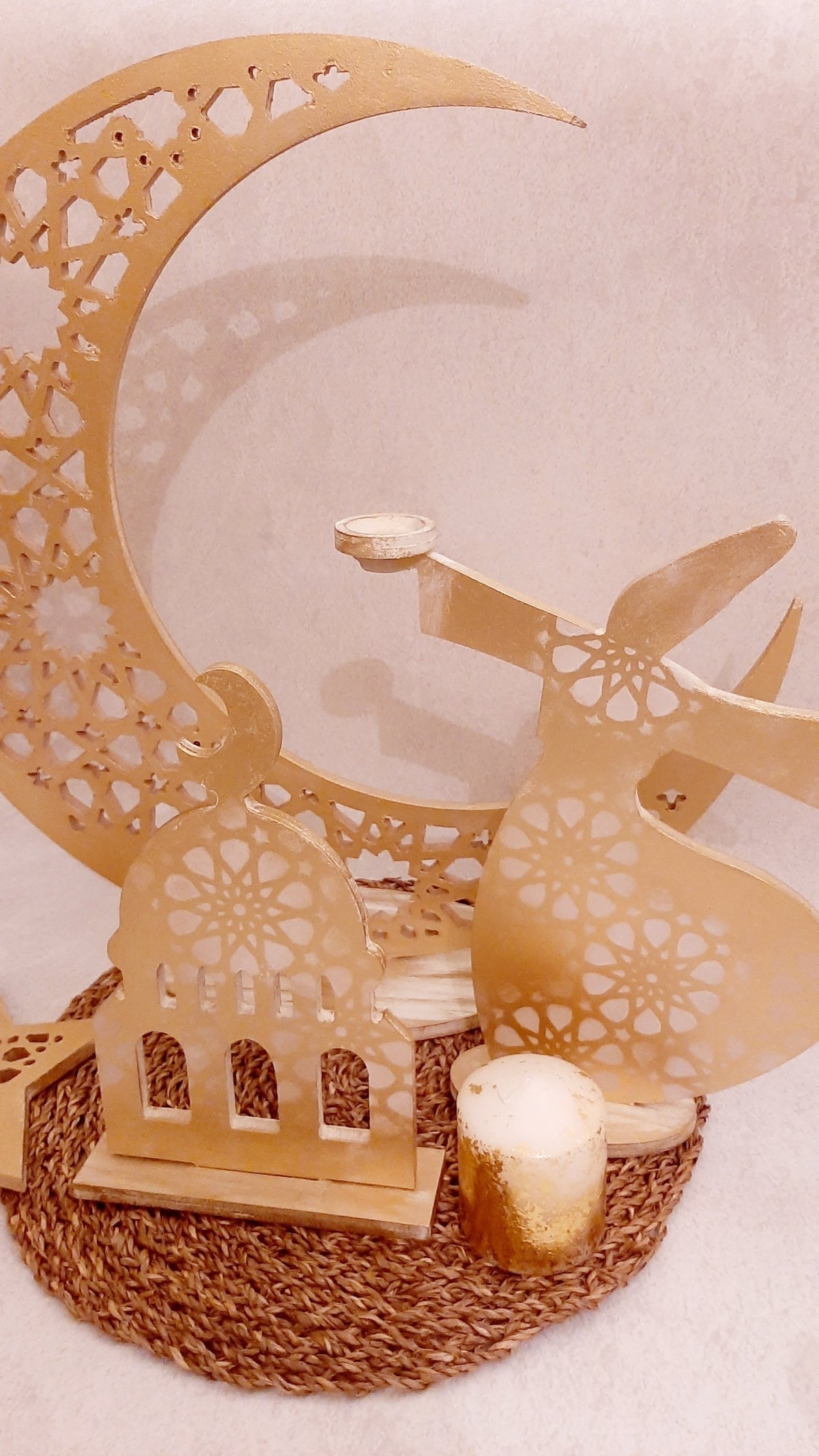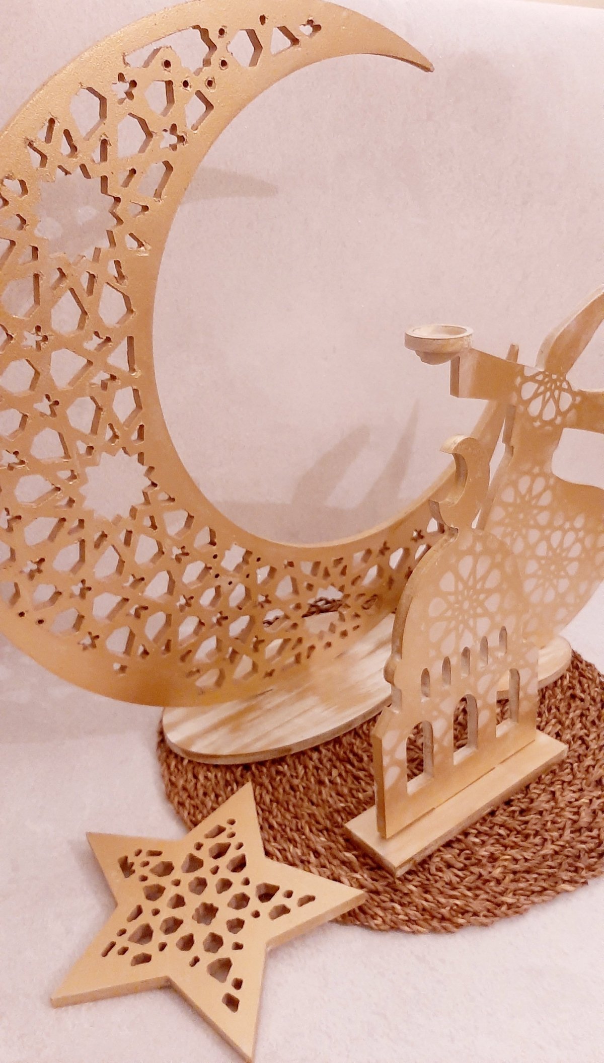 طقم هلال رمضان + صوفي + قبة ذهبي اللون طقم من ثلاث قطع المقاسات مرفقة في الصور