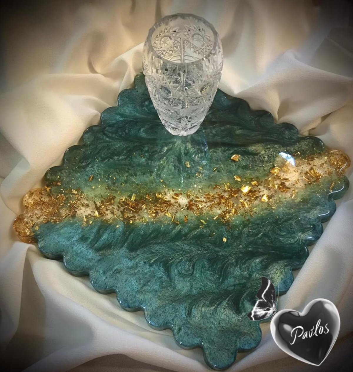كوستر ريزن الشكل: مربع المقاس: ١٩سم الالوان: مِنت جرين داكن * ورق ذهب يستخدم كقطعة ديكور مع الحامل الاكليريك الشفاف متاح تسليم فوري•