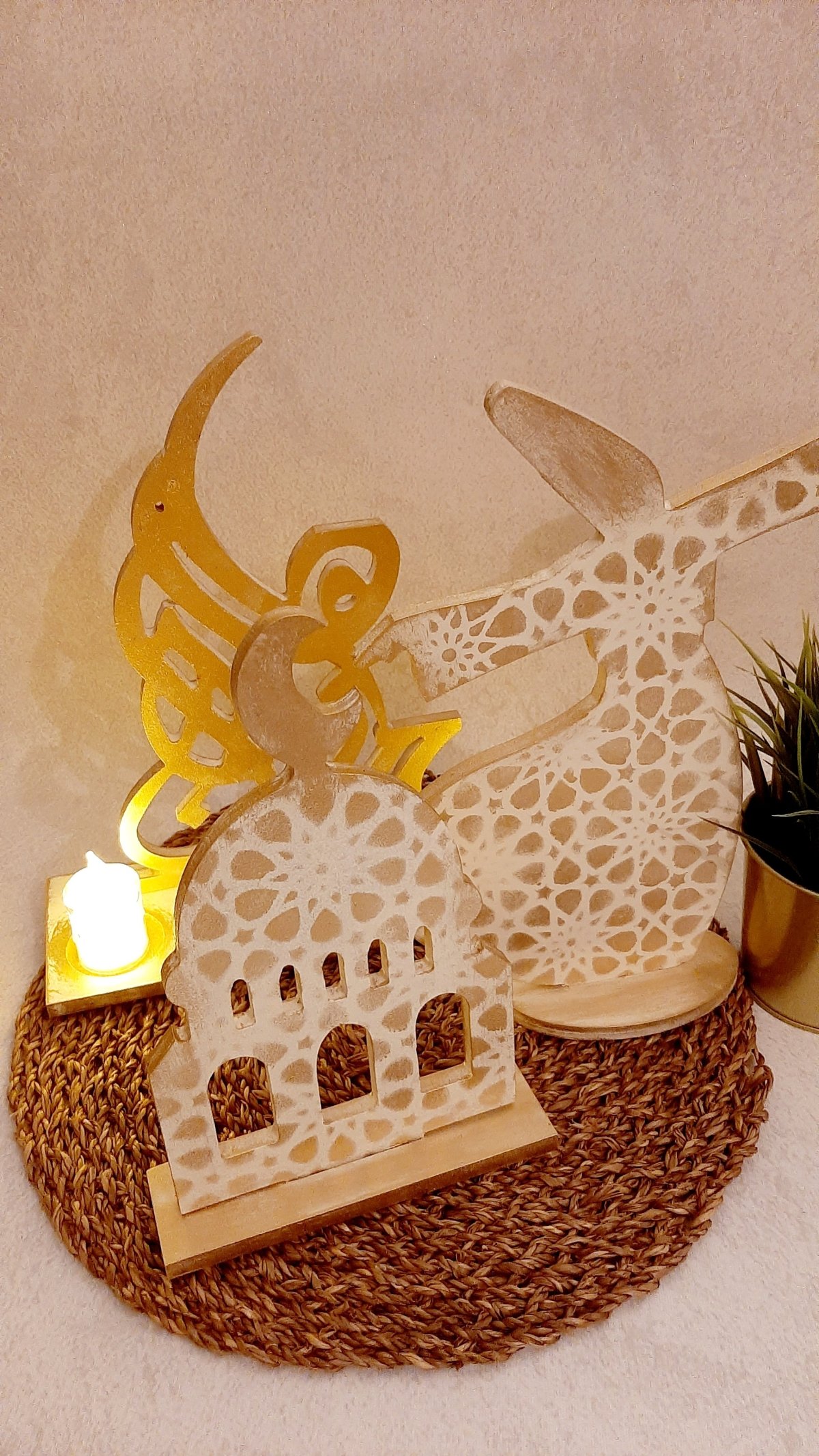 طقم هلا رمضان + صوفي + قبة بيج * ذهبي اللون طقم من ثلاث قطع المقاسات مرفقة في الصور