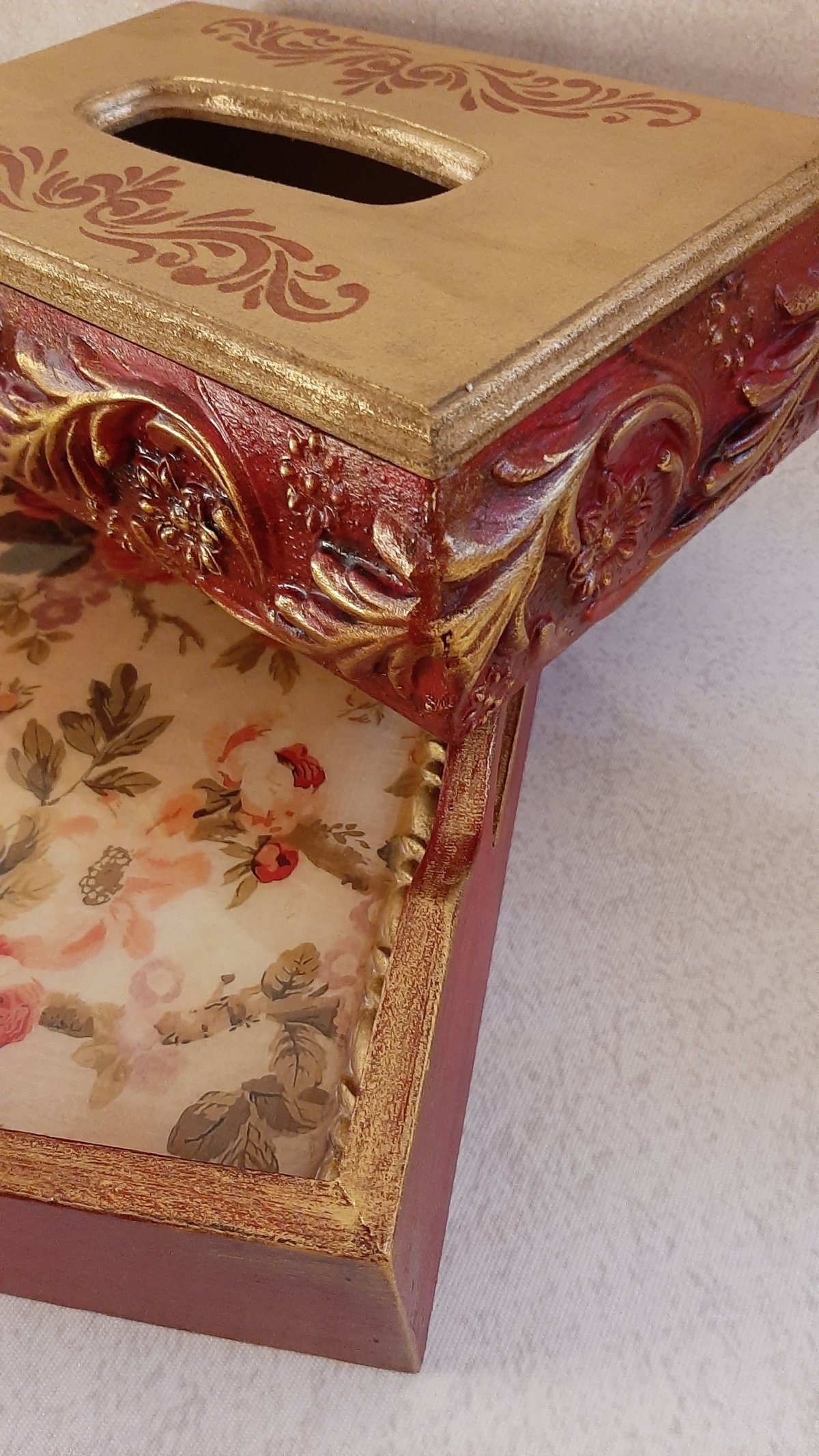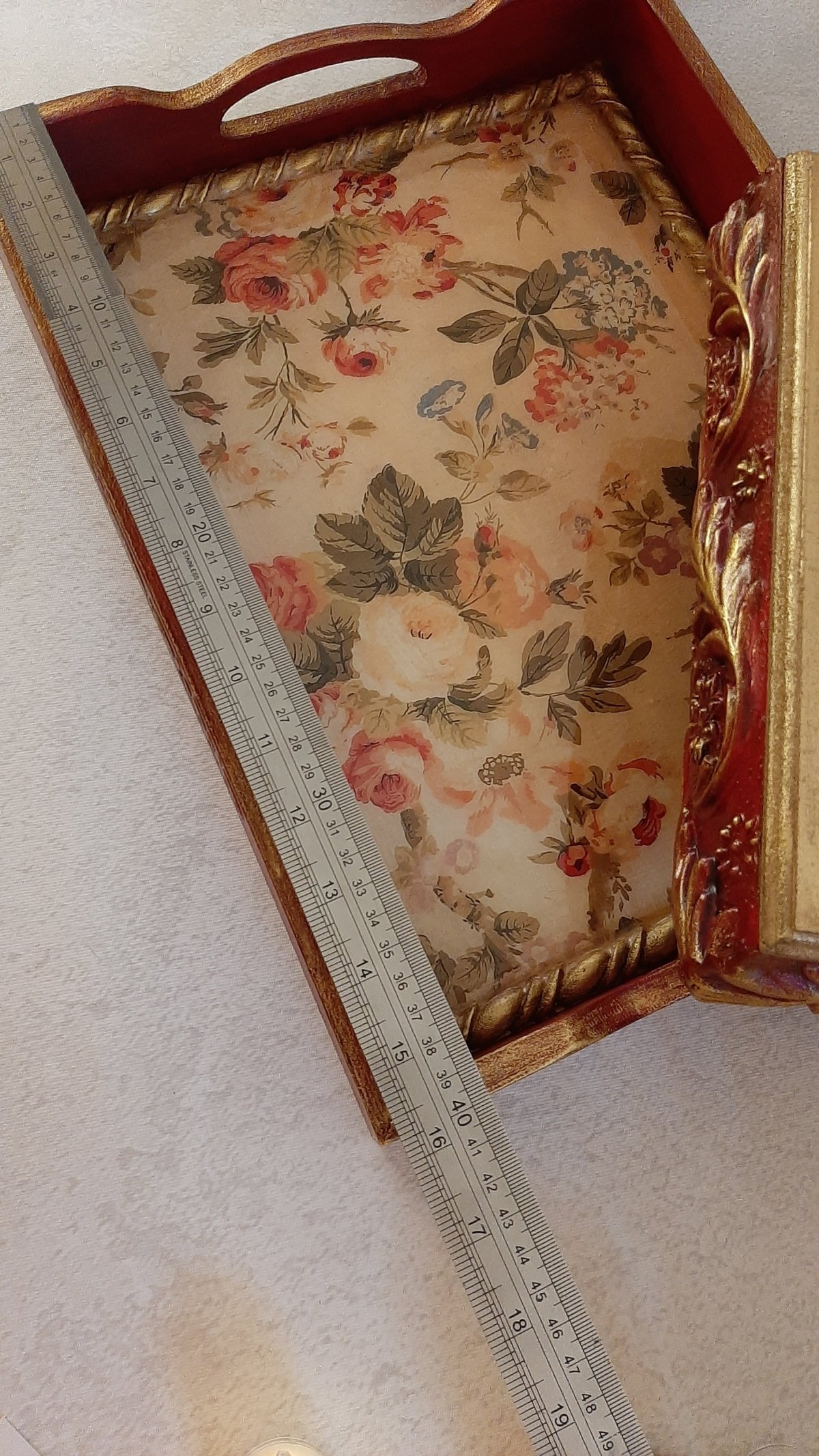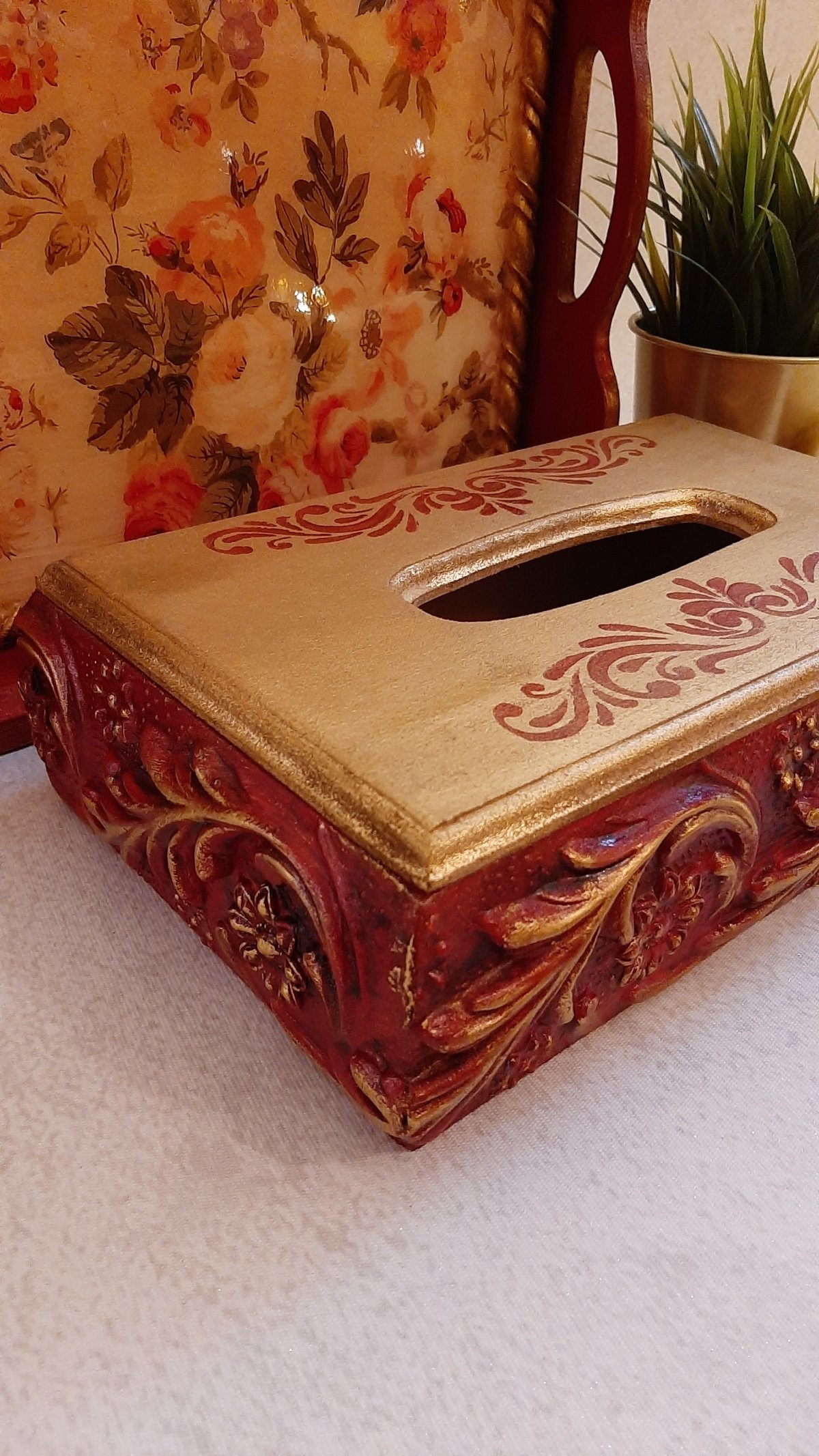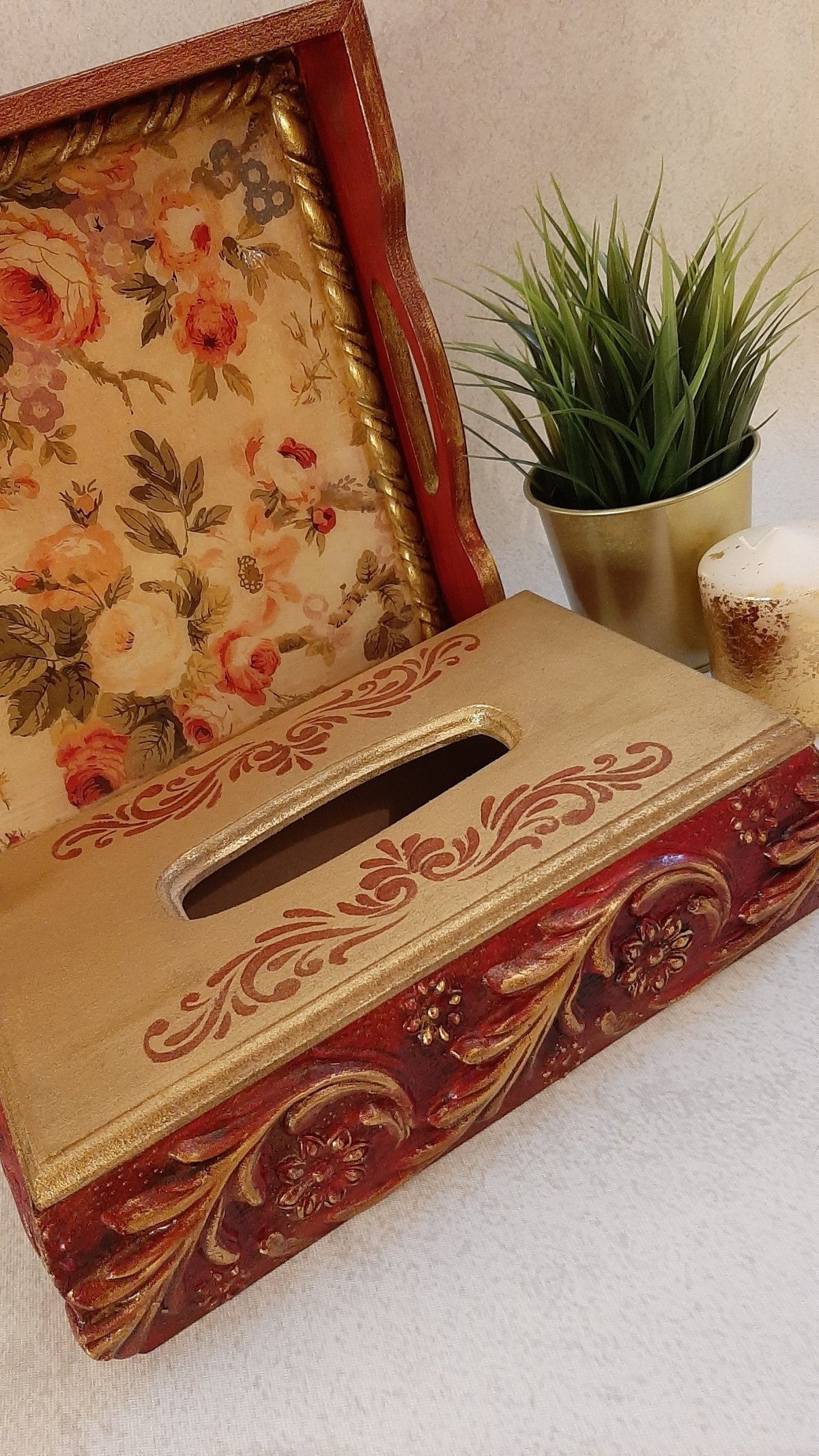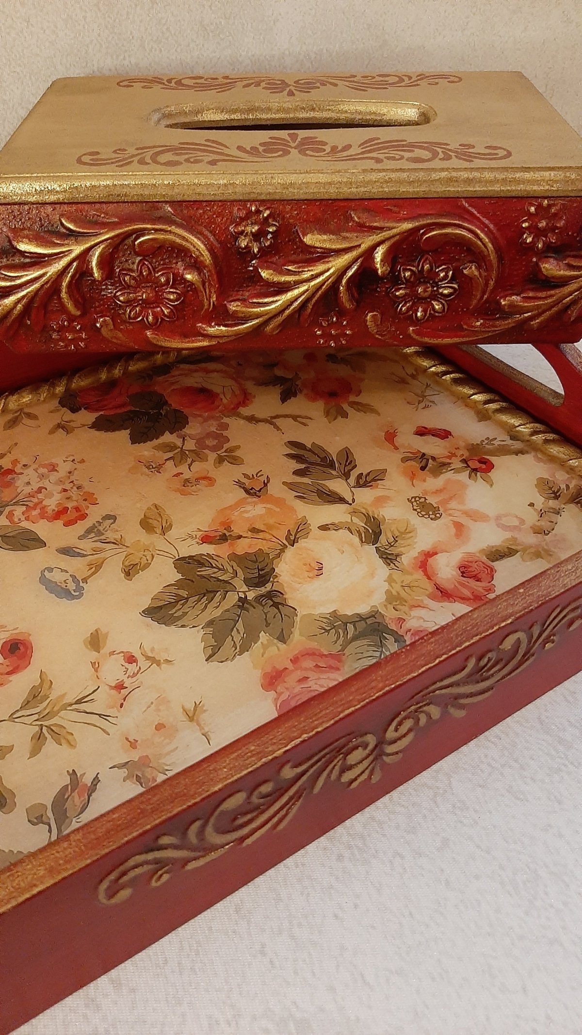 طقم صينية خشب ديكوباج خشب أم دي أف مستطيلة مع علبة مناديل كبيرة المقاسات مرفقة في الصور صناعة يدوي 100% مع طبقة حماية ضد الماء