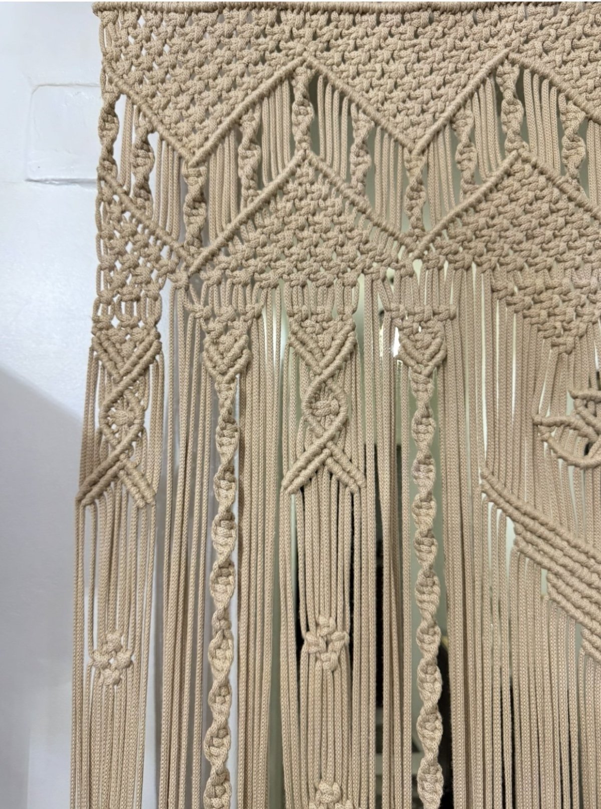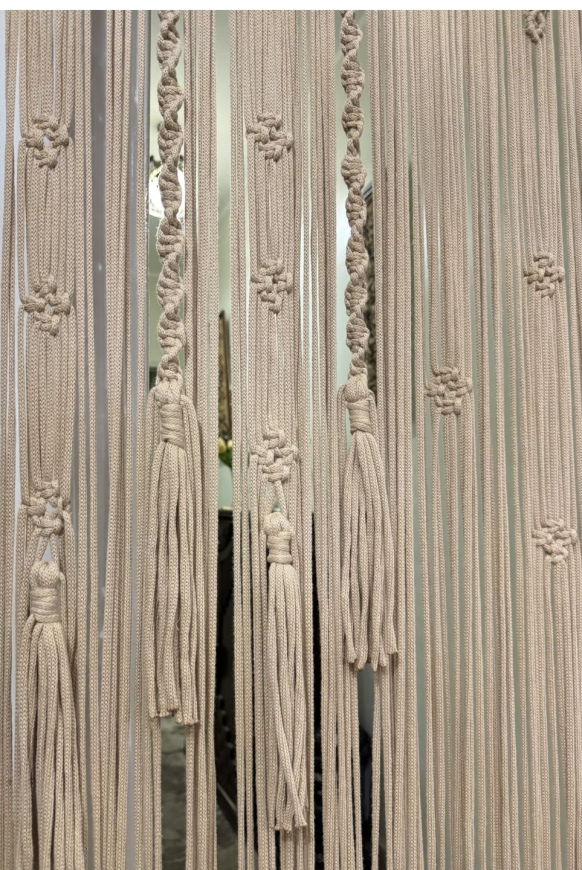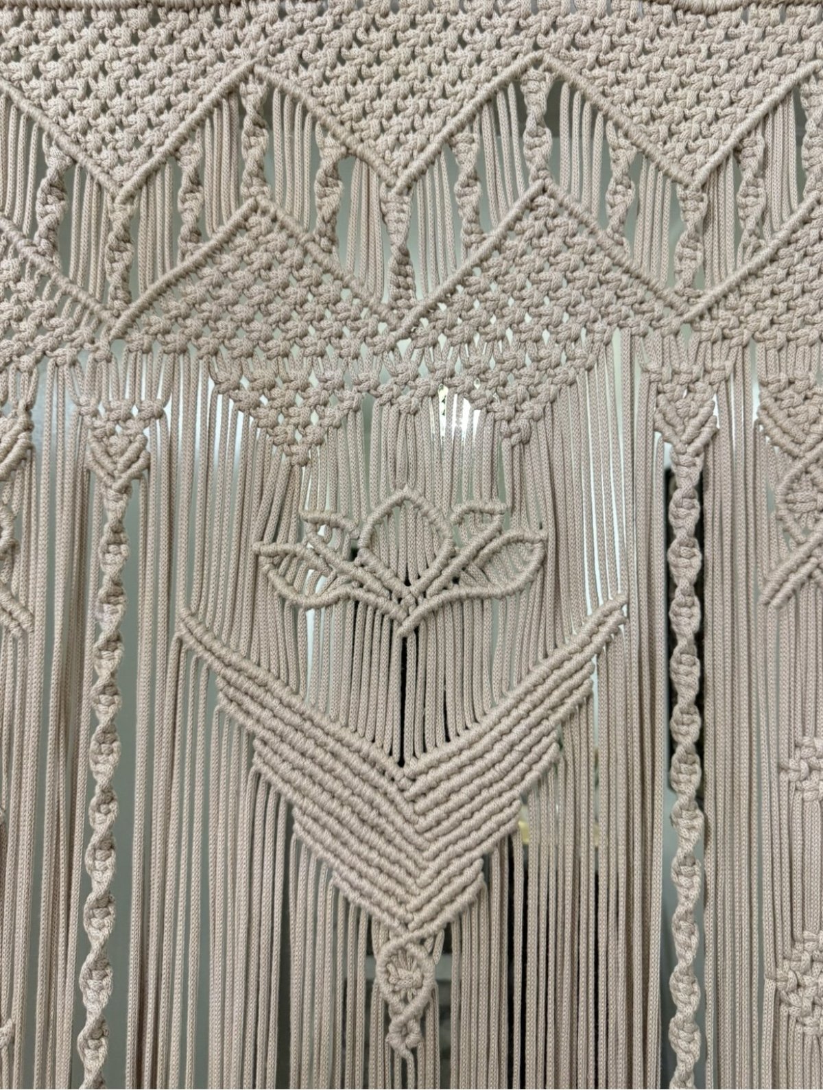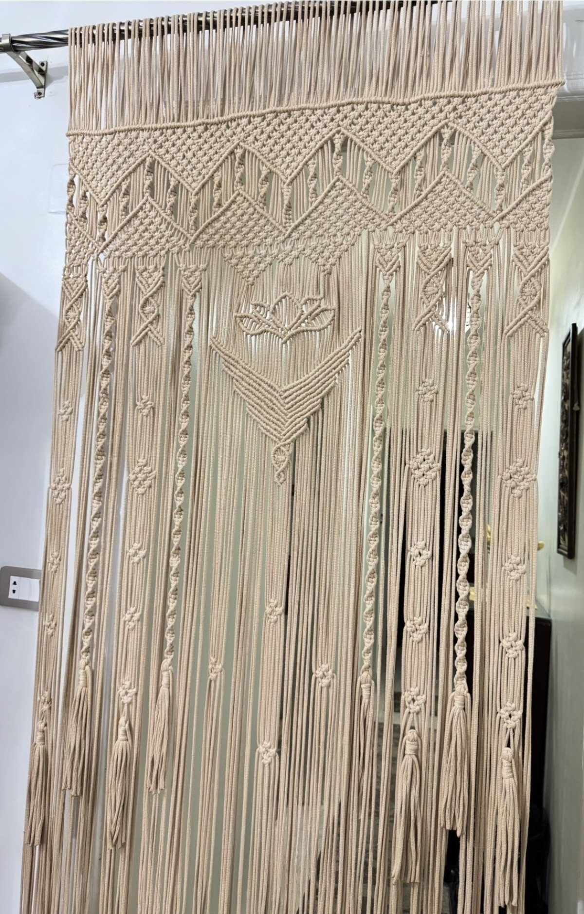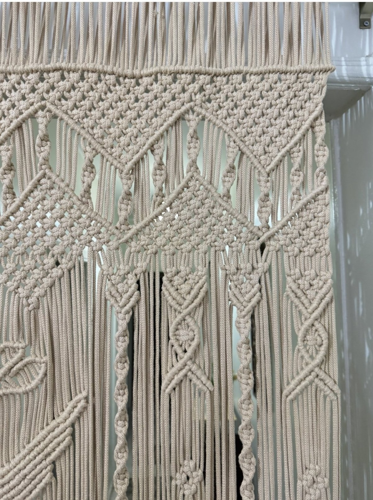 >ستارة حائط من خيوط كوردون / ستارة قطنية معقودة بحب كبير مناسبة كستارة باب أو ديكور حائط تمنح كل غرفة شعورًا خاصًا 🩷 تزين كل مكان وتغير ديكور المكان، مصنوعة يدويًا بخيوط قطنية، جودة ممتازة ملاحظة: - لا يأتي القضيب الخشبي مع الستارة إلا إذا تم طلبه الطول: حوالي 2.25 متر اختر ما يناسبك