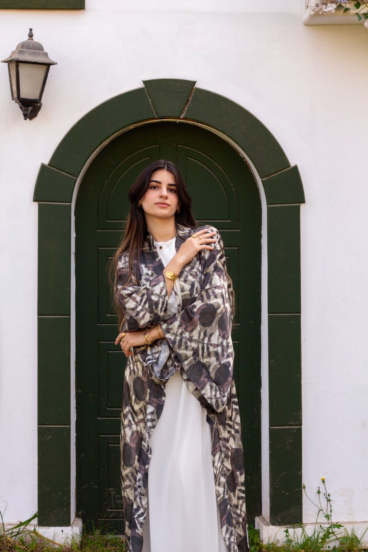 “هذا الكيمونو الأنيق والعفوي مصنوع من خامة الشيفون الناعمة، مما يوفر لكِ ارتداءً خفيفًا ومريحًا. يتميز بتصميم تركي راقٍ يضفي لمسة من الأناقة، مما يجعله مثاليًا للاستخدام اليومي. كوني أنيقة بكل سهولة مع هذه القطعة متعددة الاستخدامات.”