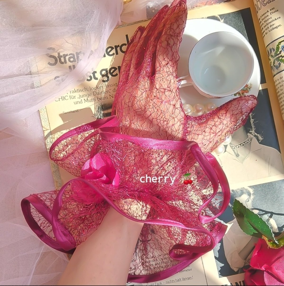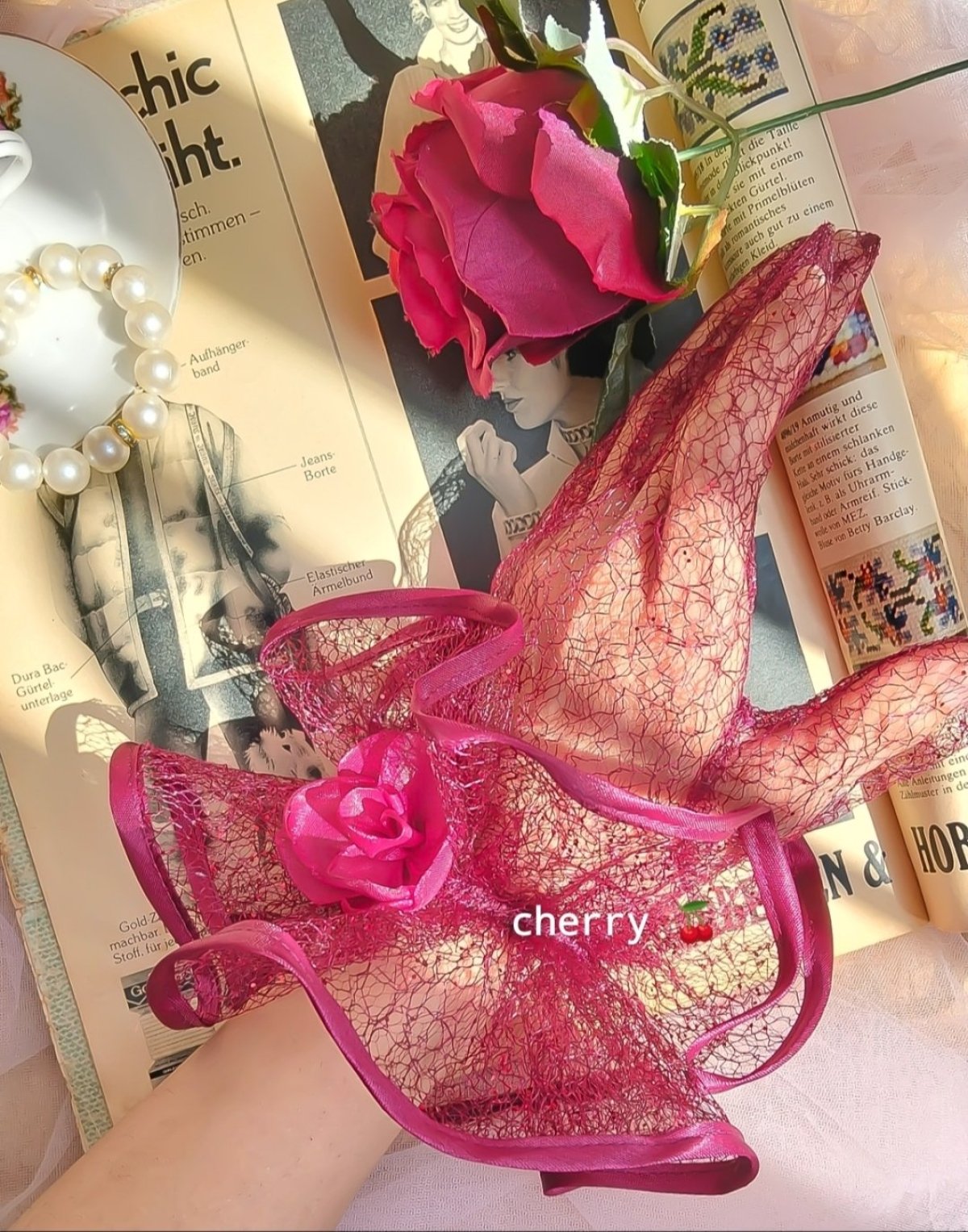 جوانتى سواريه شبك لون برغندى مزين بشرائط الساتان وزهور الأورجانزا