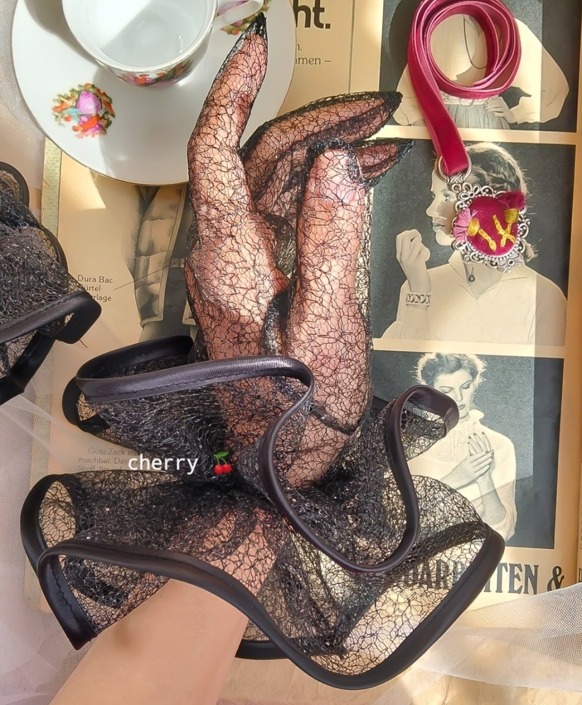 جوانتى سواريه رقيق من قماش الشبك مزين بشرائط الساتان