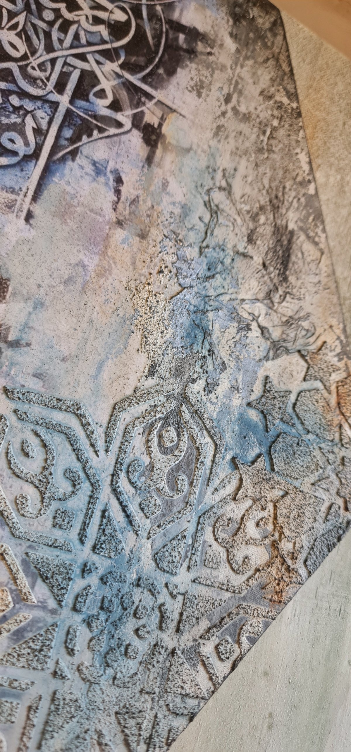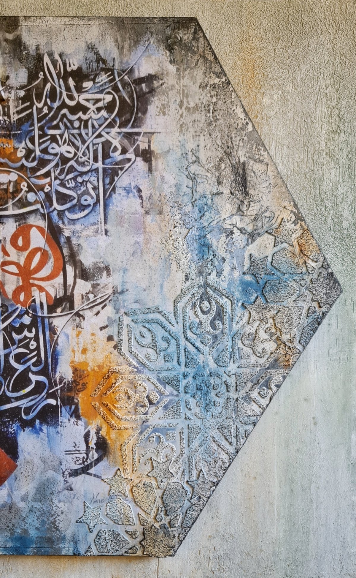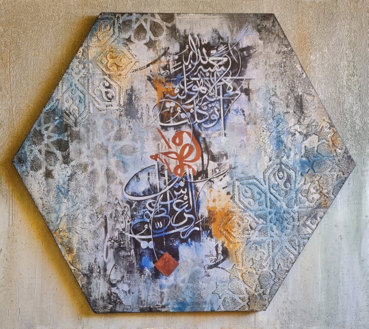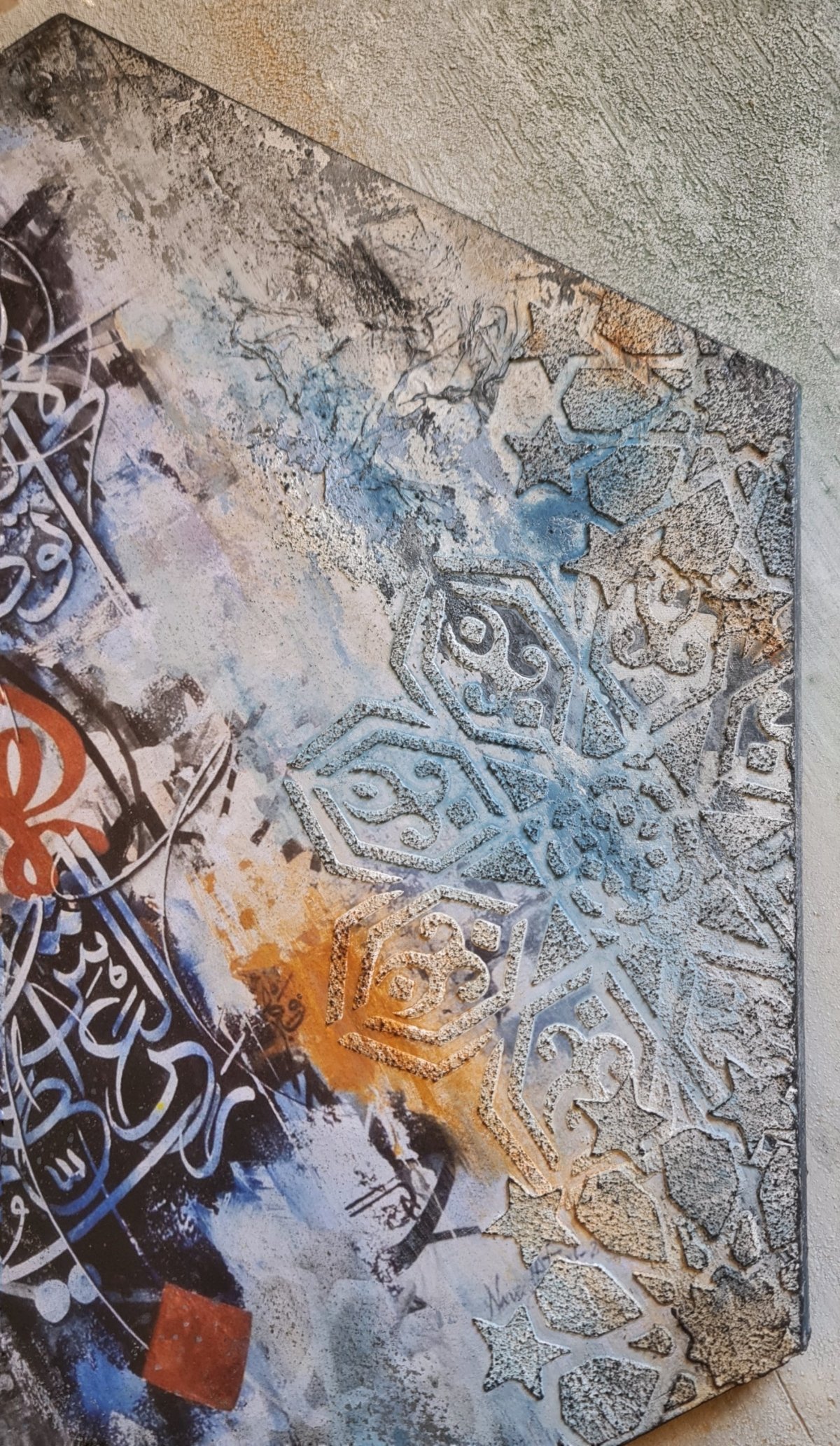 تابلو كانفس باستايل عربي مقاس ٤٤في٥٠سم يحمل عبارة..حسبي الله لا اله الا هو عليه توكلت وهو رب العرش العظيم متاح فوري قطعه واحده فقط غير مكررة