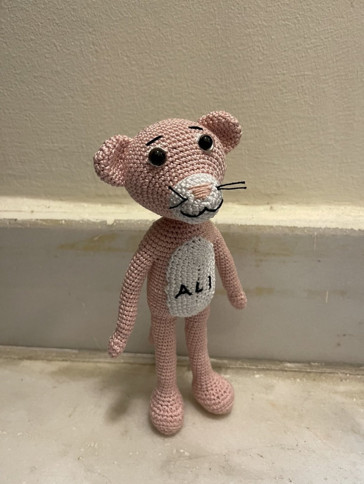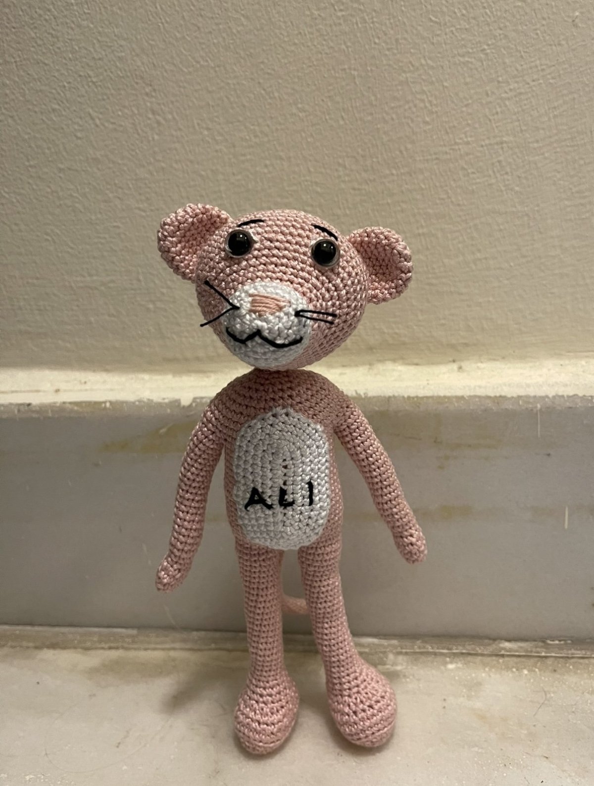 بينك بانثر بخيط قطن متوسط الحجم مصنوع بحب ❤️