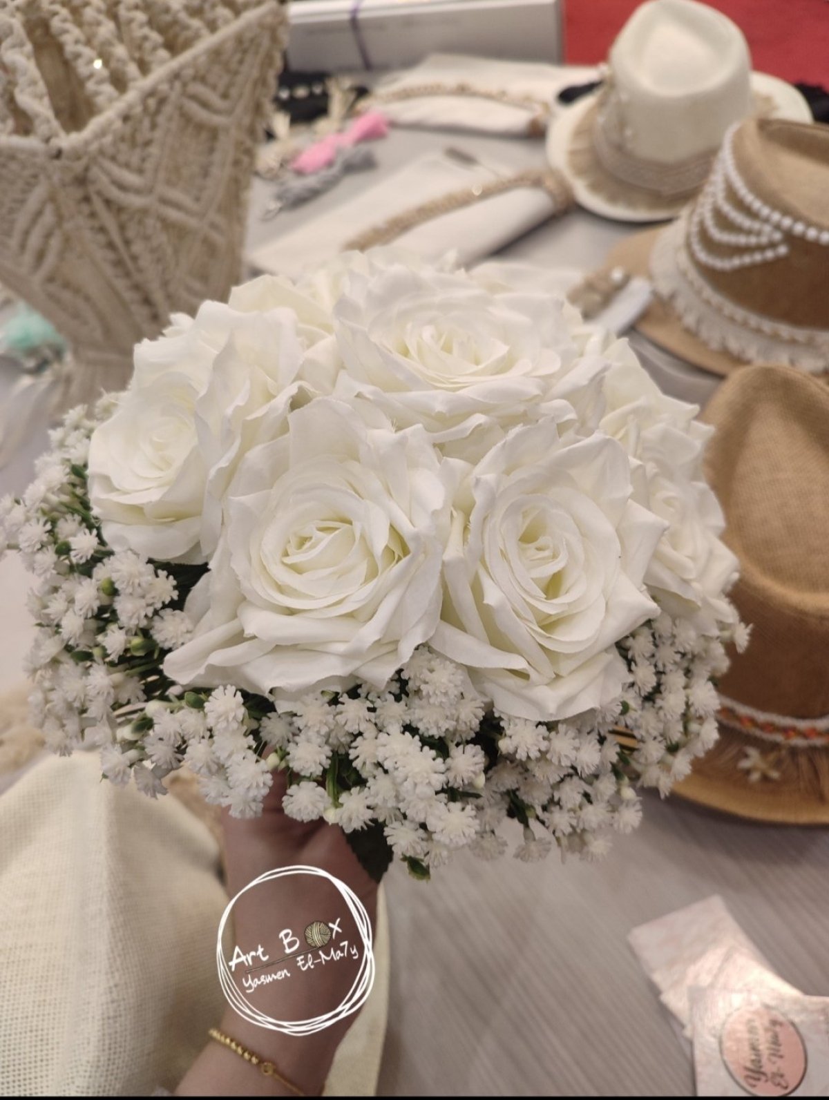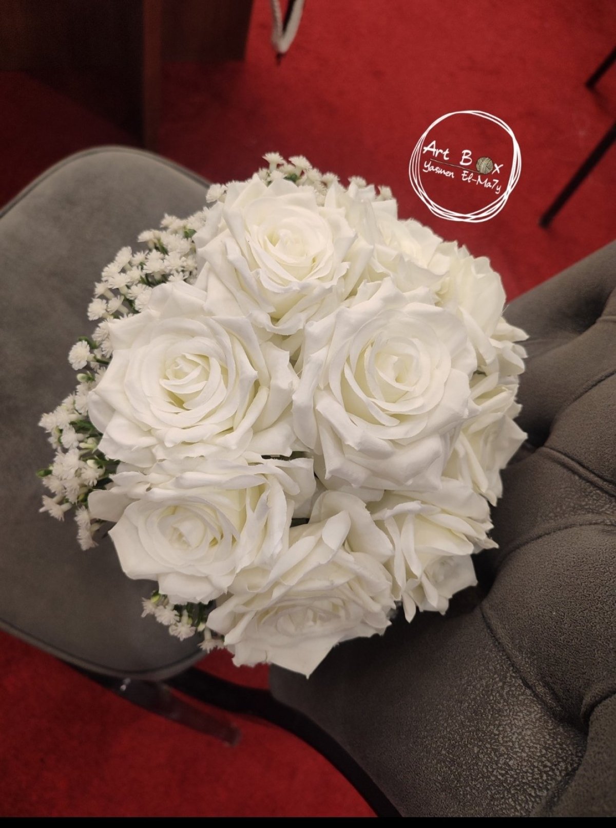 لو عاوزة لمسة رقة وفخامة لأي مناسبة، البوكيه ده هيكون الاختيار المثالي! ورد أبيض مع جيبسوفيلا ناعم، مناسب للهدايا، الخطوبة، الجواز، أو حتى لو عاوزة تدلعي نفسك بلمسة جميلة ✨