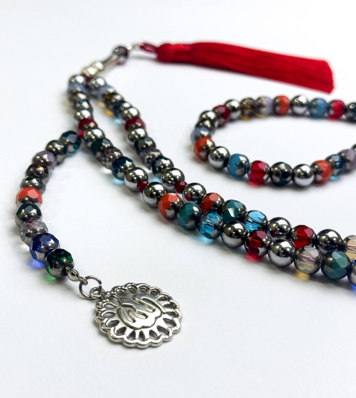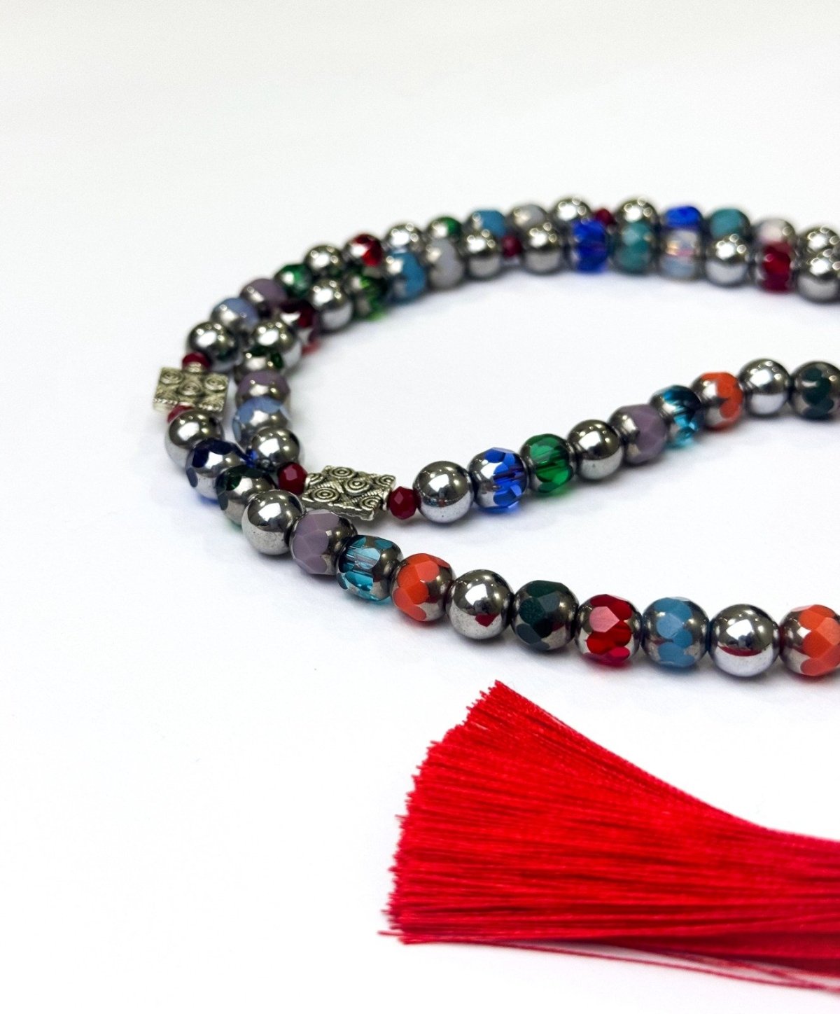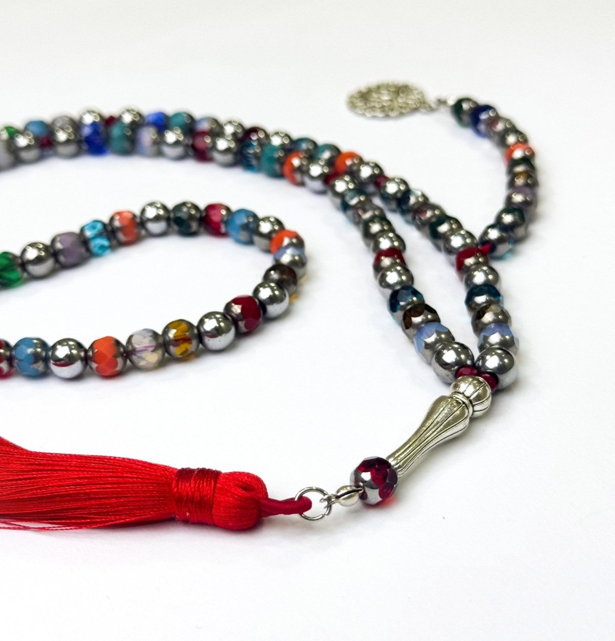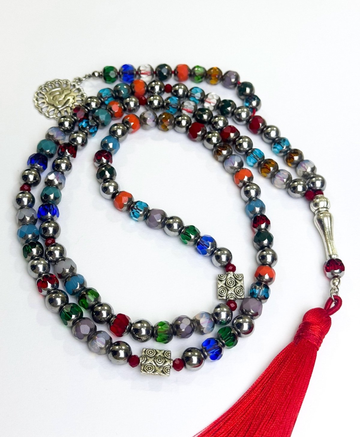 📿- مسبحة من الكريستال مزين بتاج فضي مع الهيماتيد 📿- مقاس 8 مم 📿- 99 حبه 📿-مأذنه وفواصل فضية 📿-عداد لمضاعفة الذكر 📿- شرابه حرير باللون الاحمر 📿- مغلفة بشكل جميل في حقيبة هدايا تحمل علامتنا التجارية، مما يجعلها هدية رائعة في أي مناسبة.
