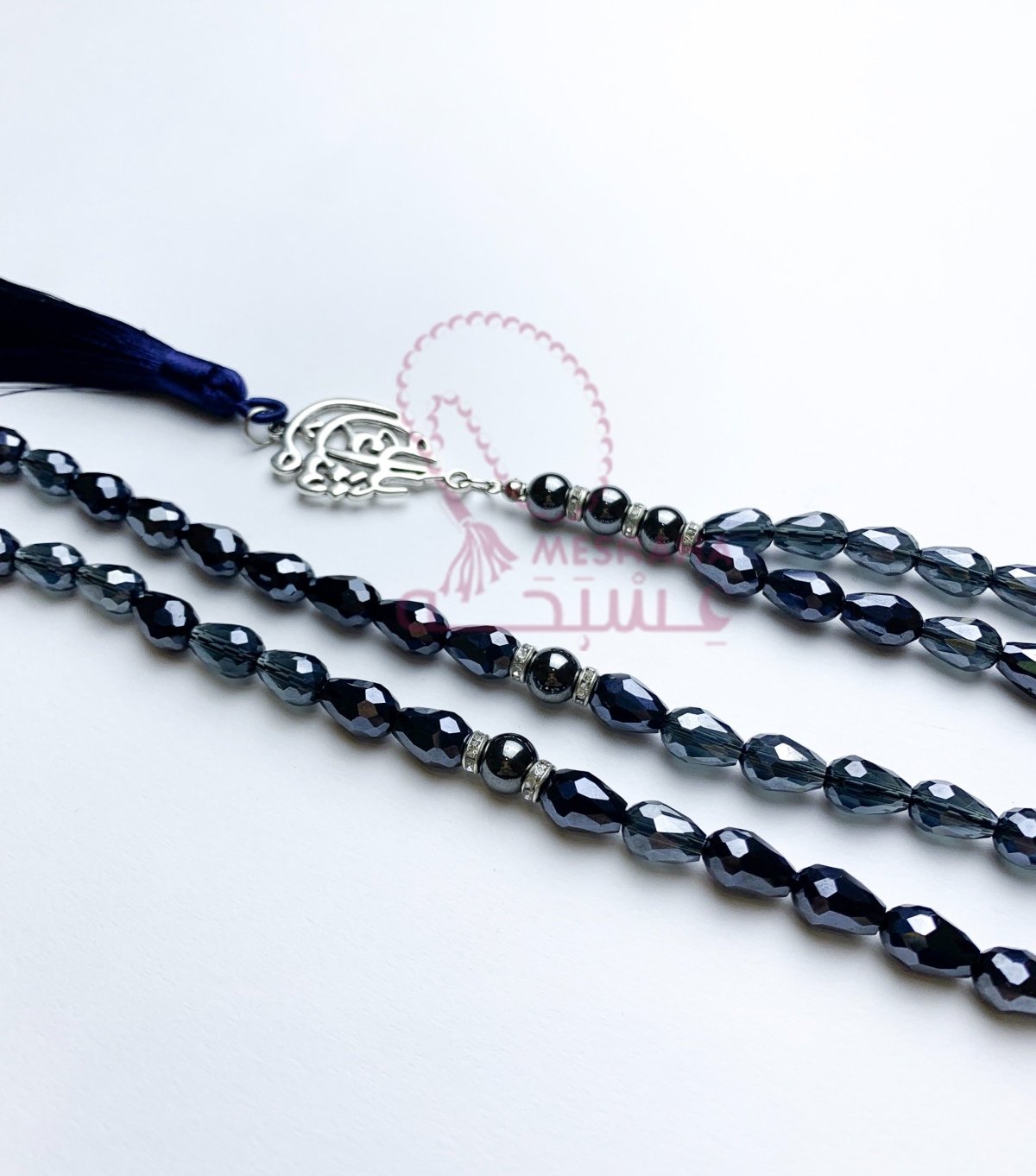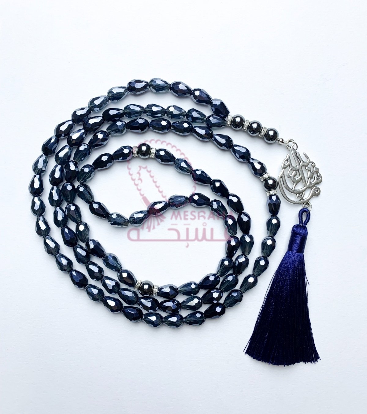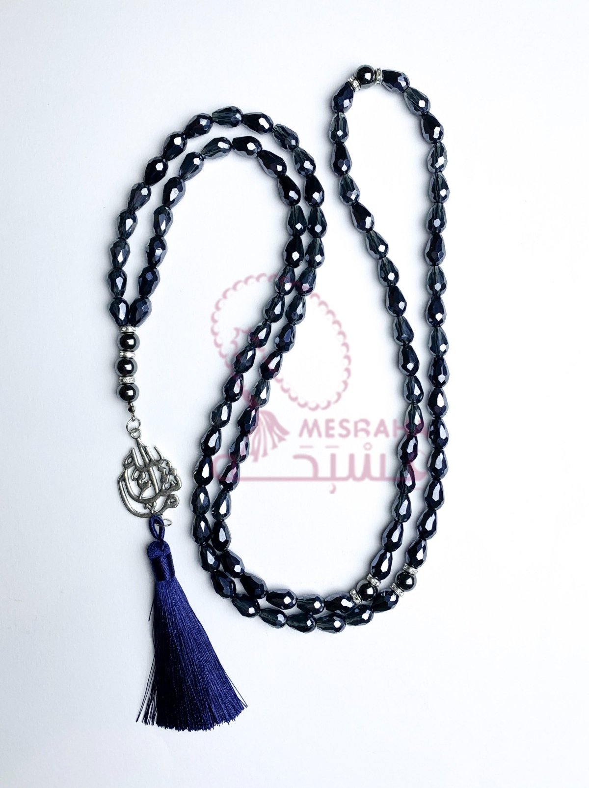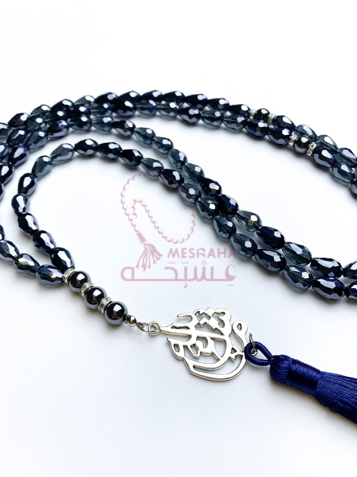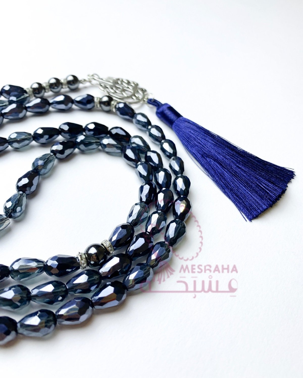 📿- مسبحة من الكريستال البلجيكي مع الهيماتيد 📿- مقاس 8 مم 📿- 99 حبه 📿-مأذنه وفواصل فضية 📿- شرابه حرير باللون الازرق الغامق 📿_دلايه ما شاء الله 📿- مغلفة بشكل جميل في حقيبة هدايا تحمل علامتنا التجارية، مما يجعلها هدية رائعة في أي مناسبة. 📿- السعر: 315