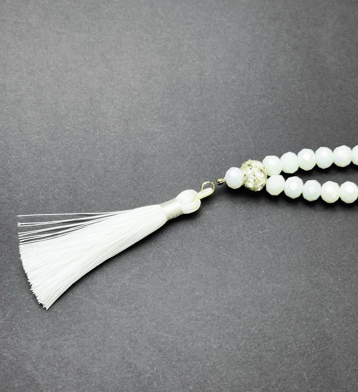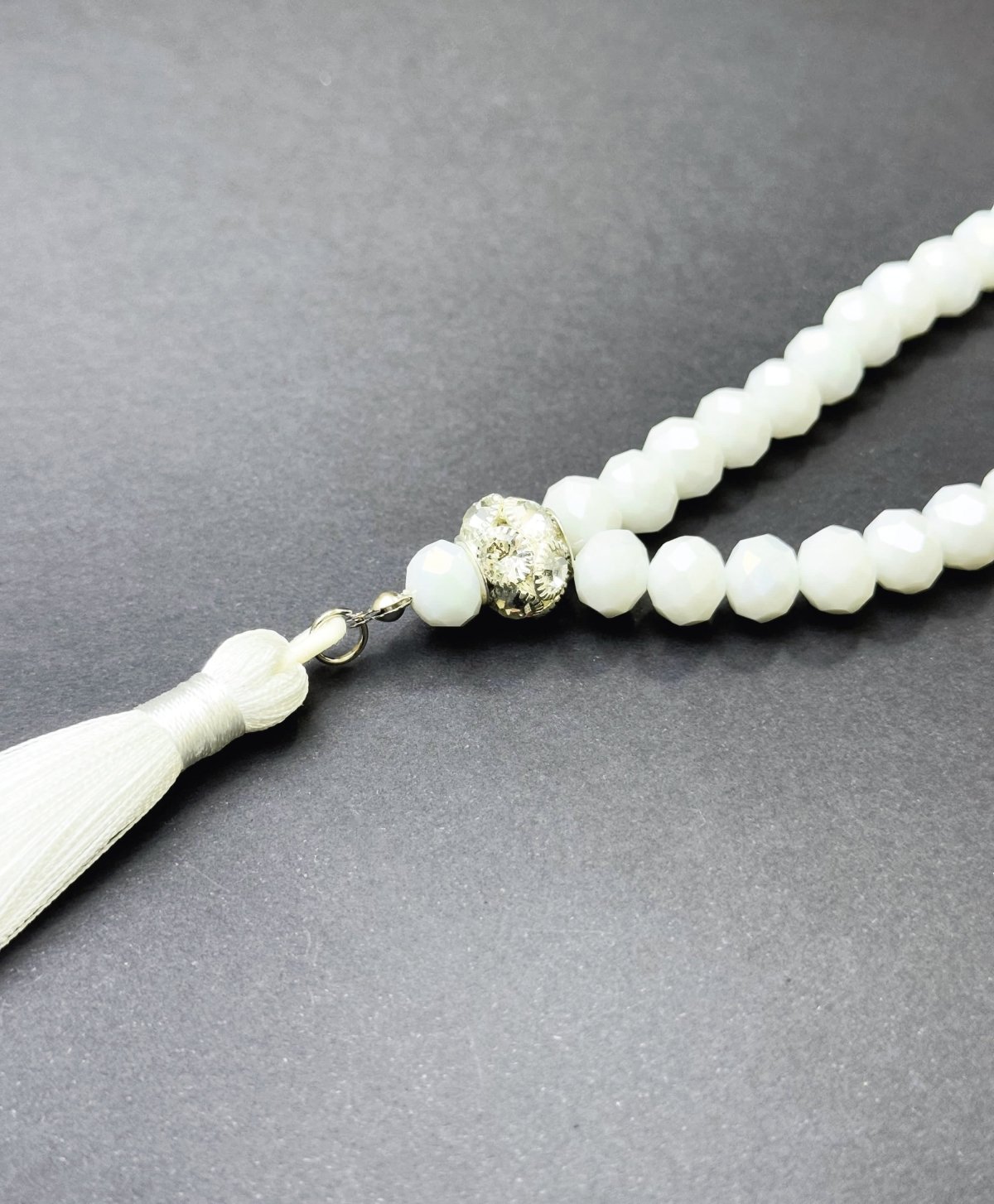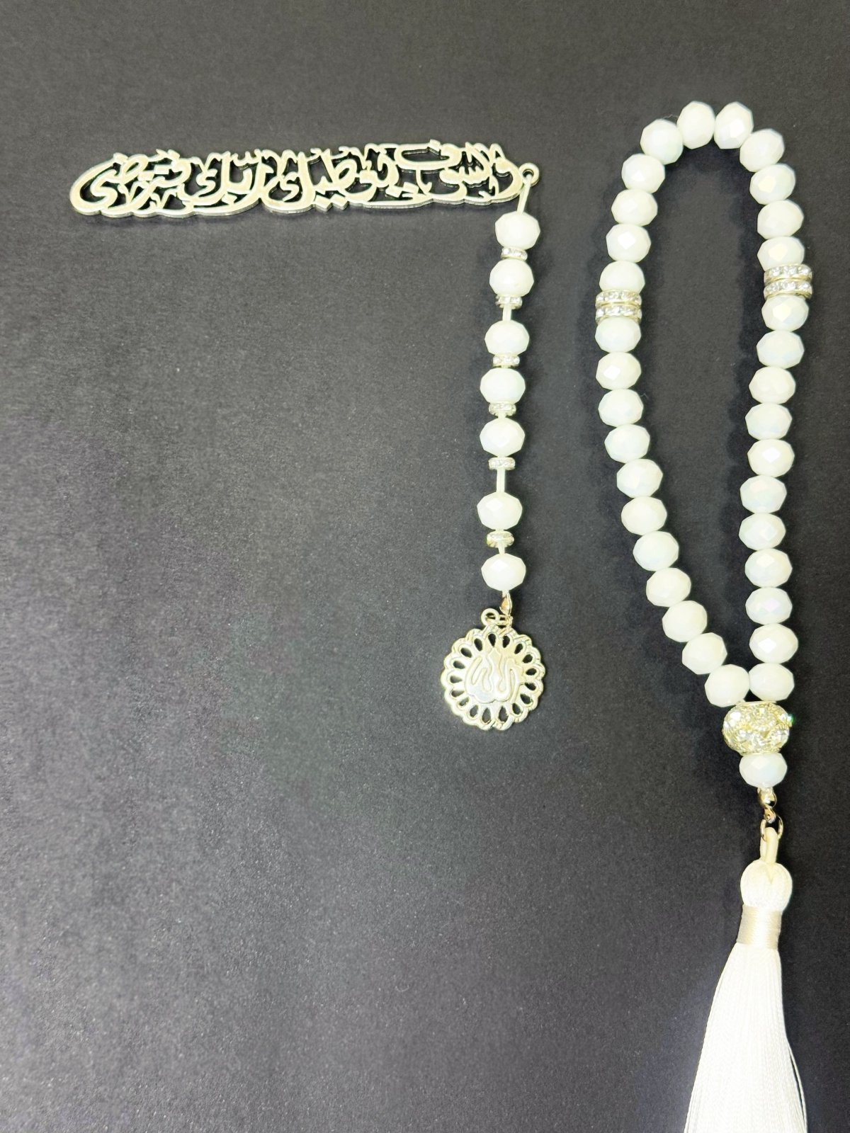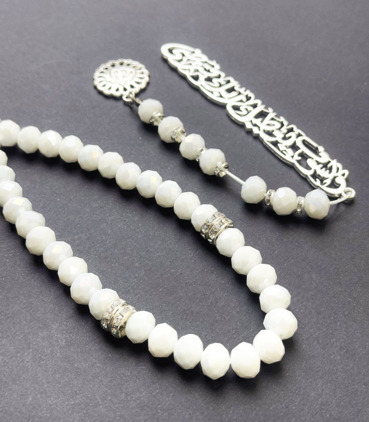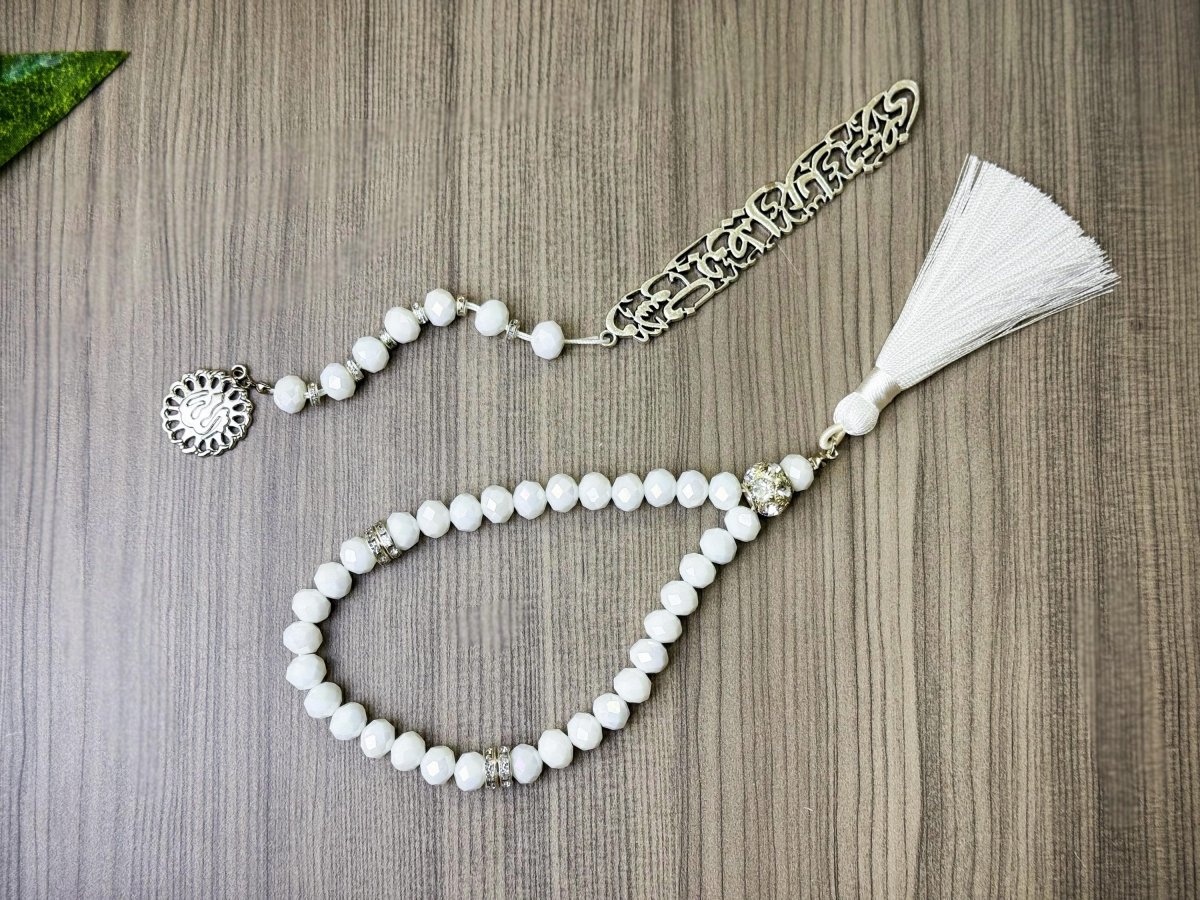 مِسْبَحَه الكريستال الأبيض 📿33حبه من الكرستال البلجيكي 📿فاصل وزيتونه فضية مزينة بفصوص لامعه 📿فاصل مصحف * ولسوف يعطيك ربك فترضى * 📿- مغلفة بشكل جميل في حقيبة هدايا تحمل علامتنا التجارية، مما يجعلها هدية رائعة في أي مناسبة.