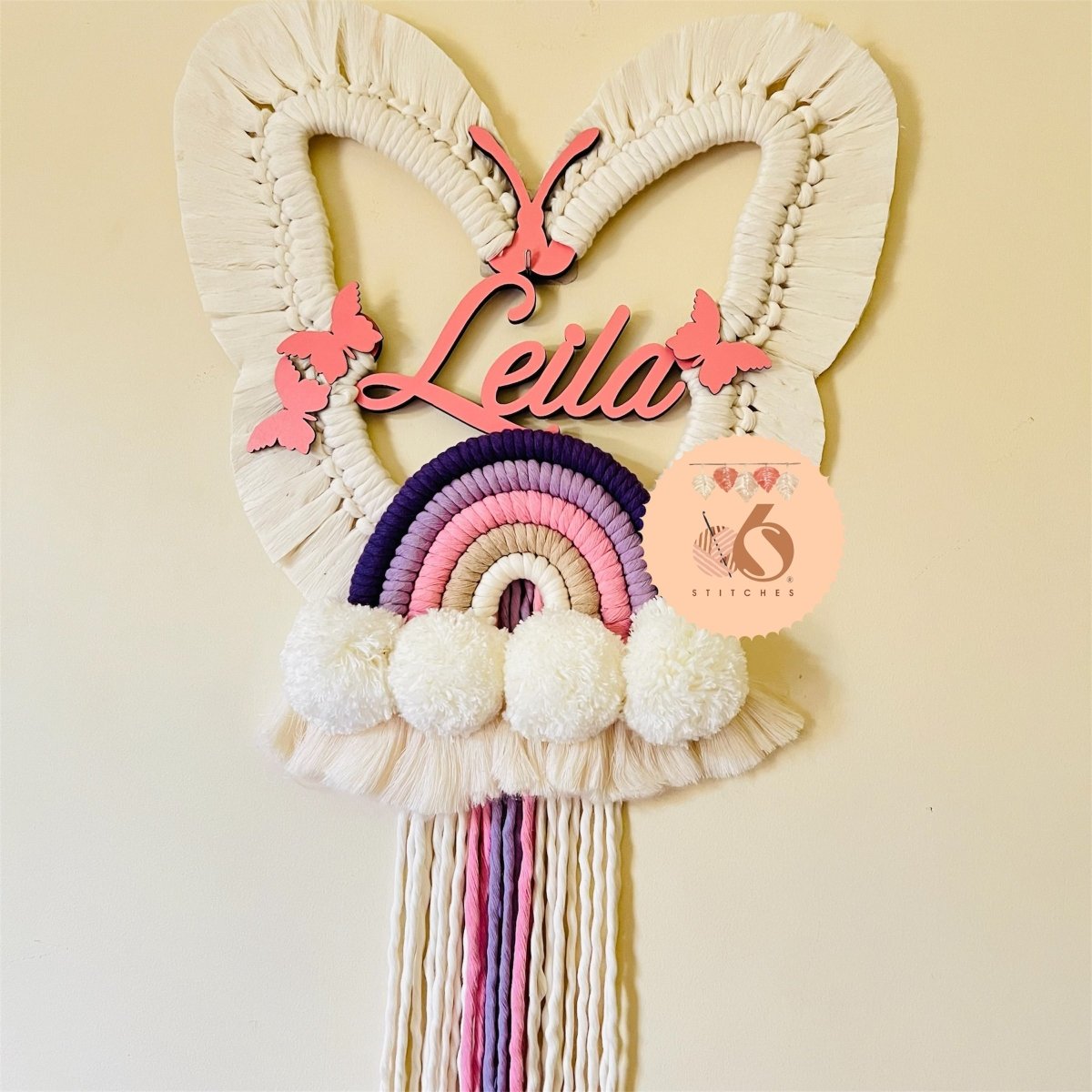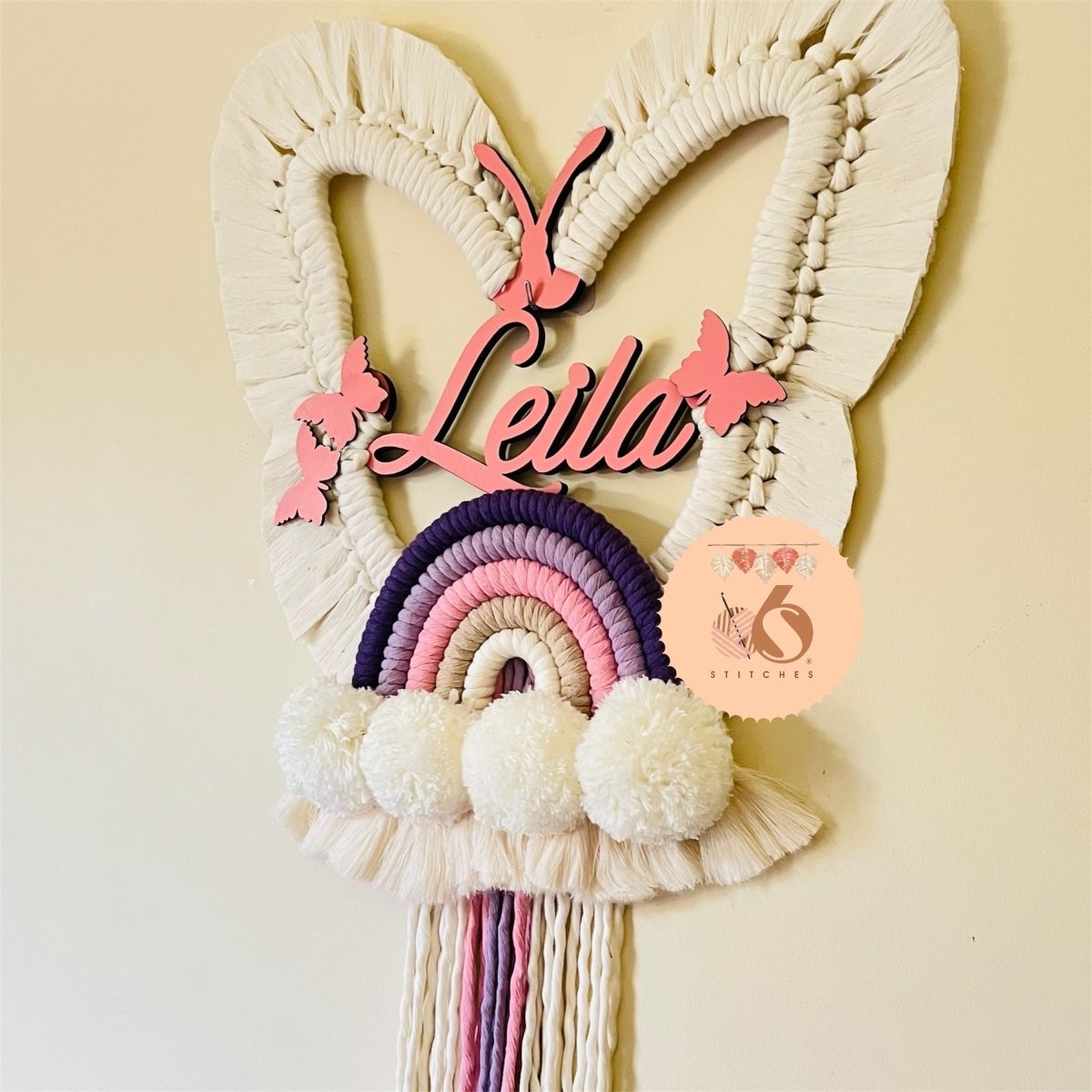 تبحث عن لمسة فريدة ومميزة لغرفة طفلك؟ ✨ سحابات الأسماء المصنوعة يدوياً من المكرمية هي الإضافة المثالية! اطلب الآن! ٥٠ سم * ١٠٠ سم