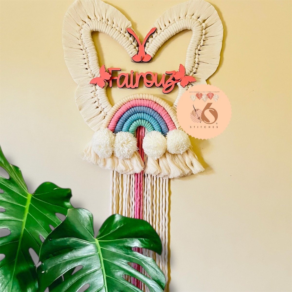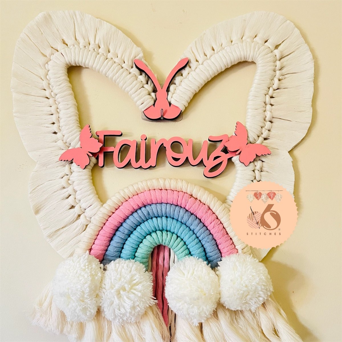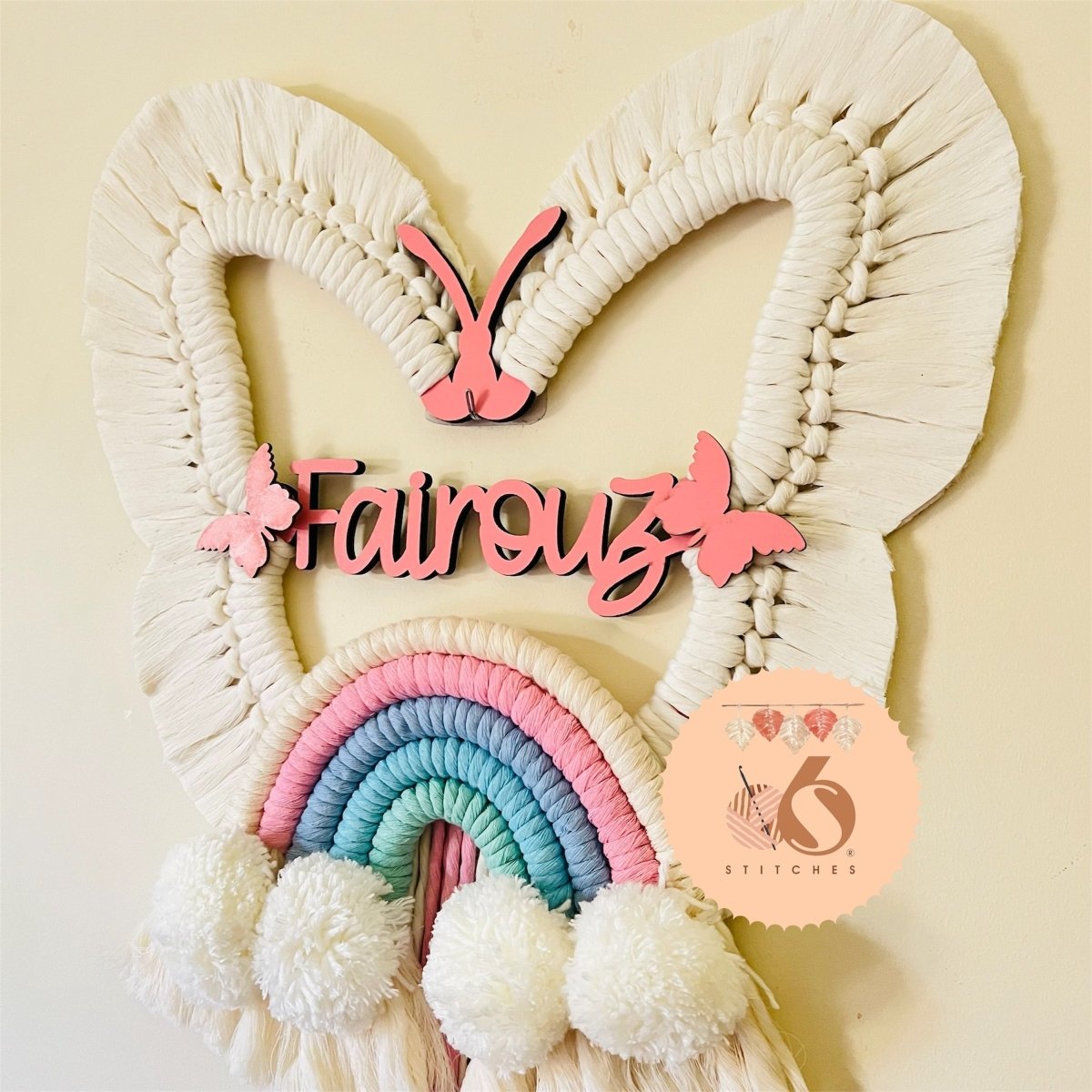 تبحث عن لمسة فريدة ومميزة لغرفة طفلك؟ ✨ سحابات الأسماء المصنوعة يدوياً من المكرمية هي الإضافة المثالية! اطلب yours الآن! ٥٠ سم * ١٠٠ سم