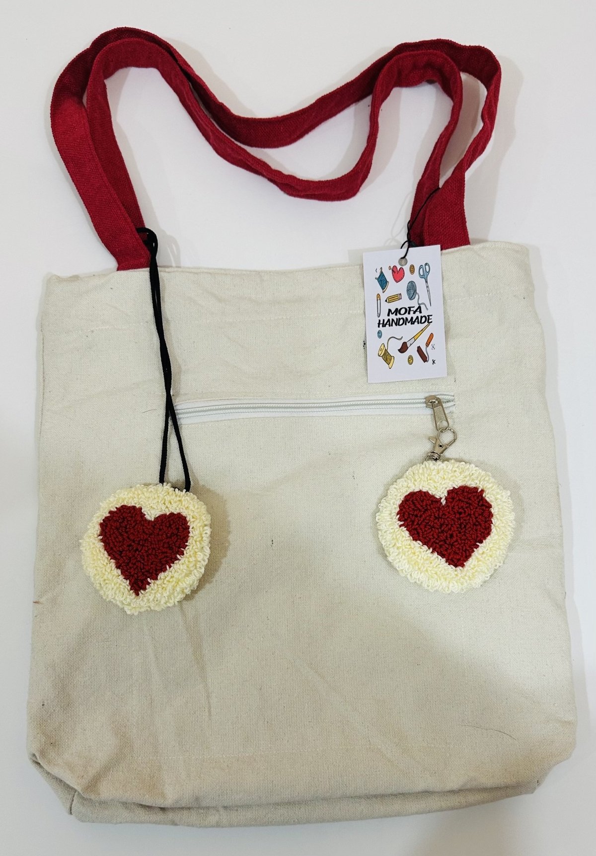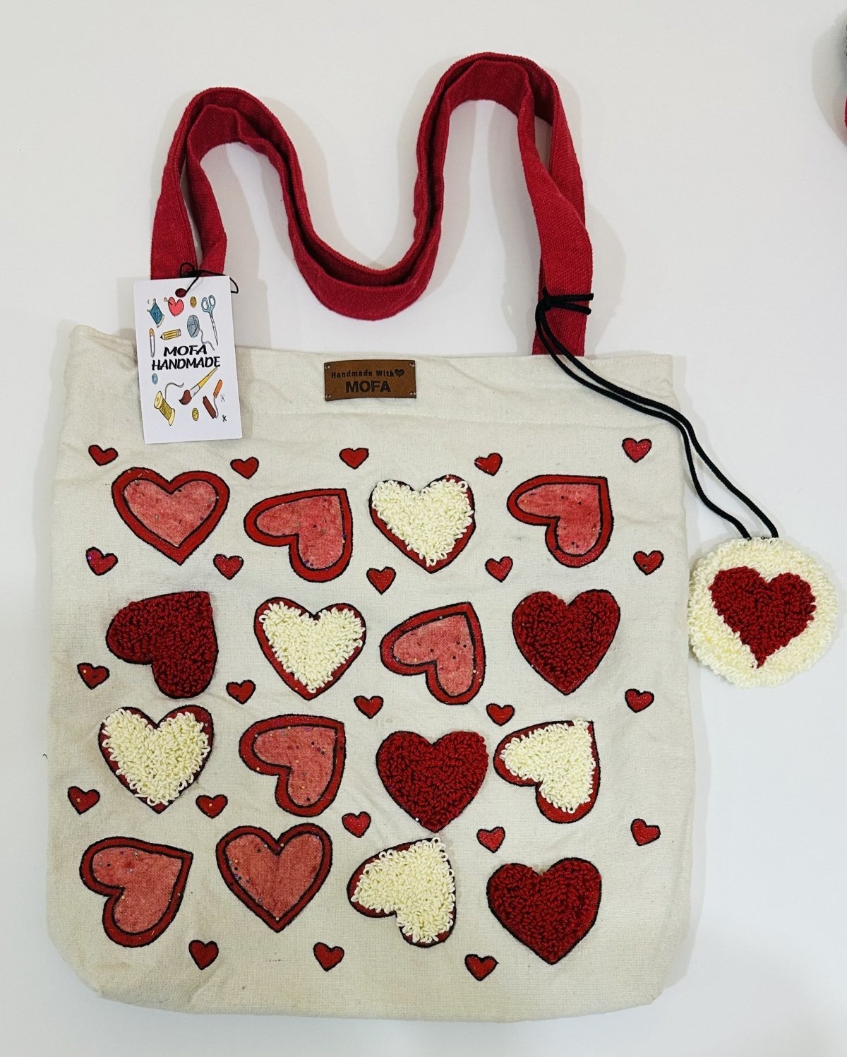شنطه من القماش مقاس 35*40 بحزام من نفس نوع القماش مبطنه بقماش من الداخل وبها جيوب داخلية.