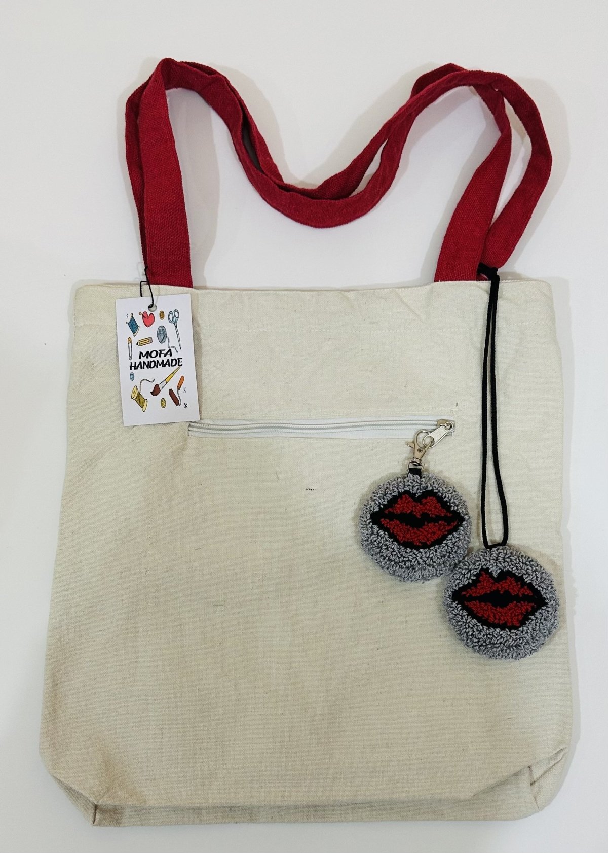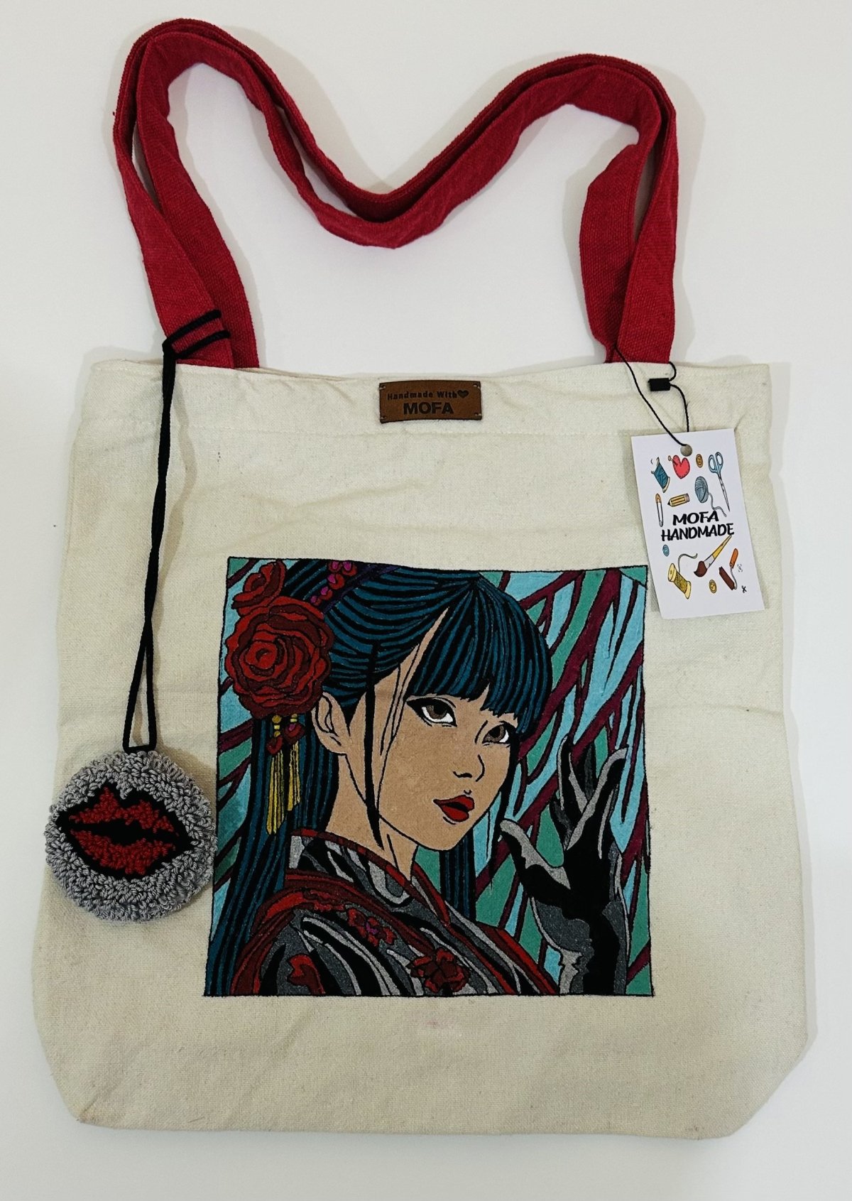 شنطه من القماش مقاس 35*40 بحزام من نفس نوع القماش مبطنه بقماش من الداخل و بها جيوب داخليه