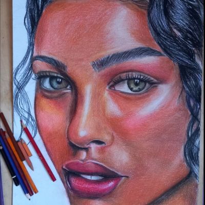 بورتريه احترافي بالوان خشبية مقاس ٣٠ *٤٠ بالاضافة لبرواز وتغليف للمنتج