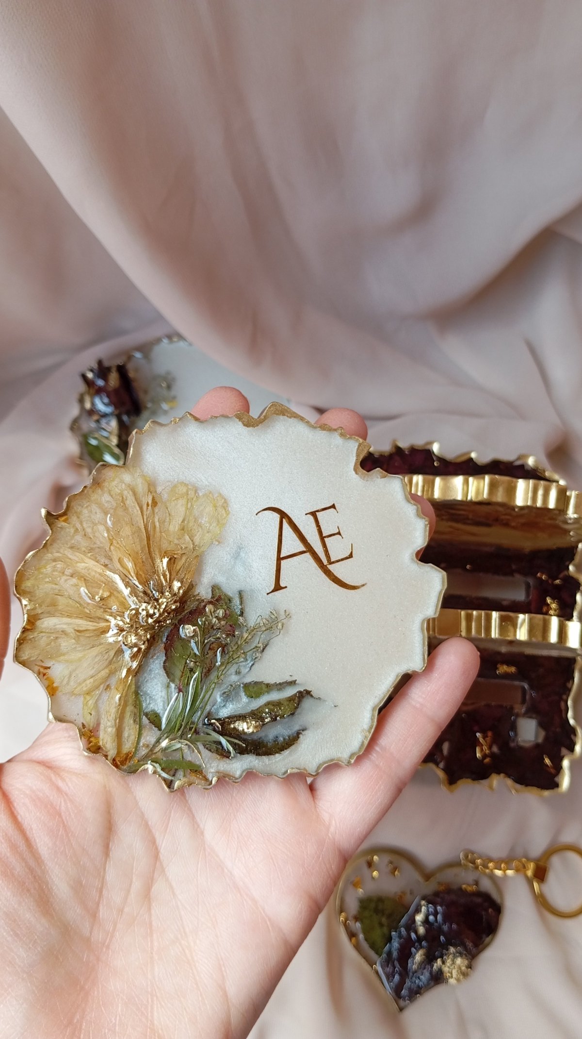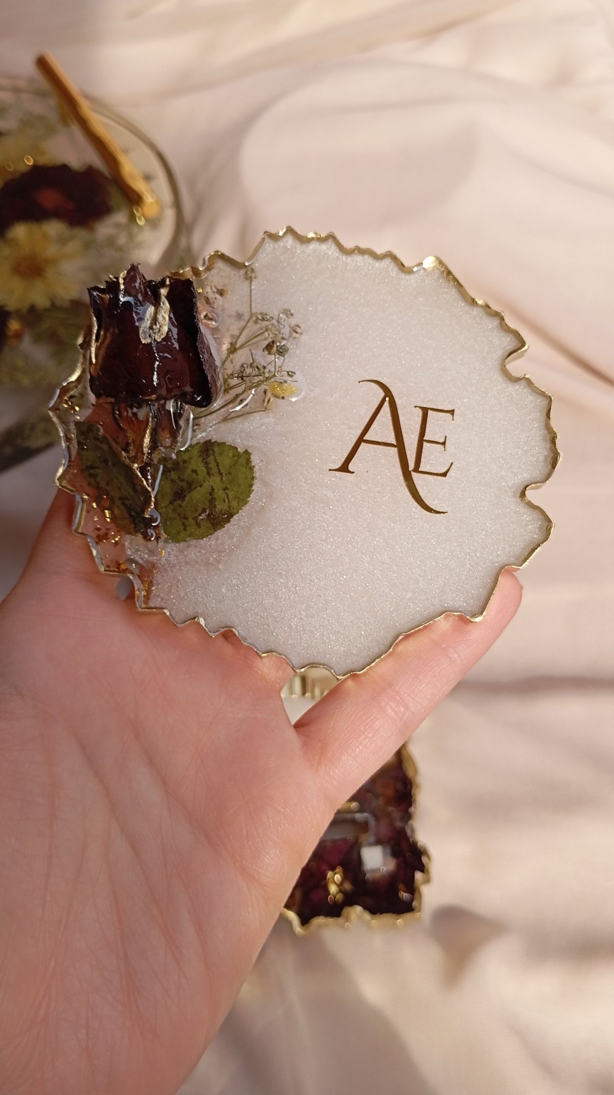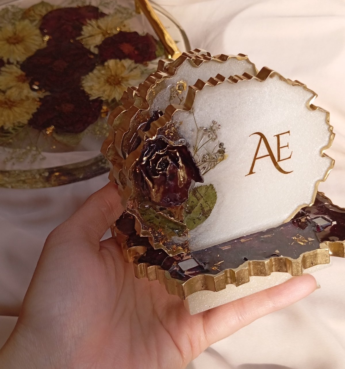 طقم كوسترات بالحامل لحفظ الورد مقاس الكوستر 10 سم مع ورق الذهب متاح تغيير الديزاين