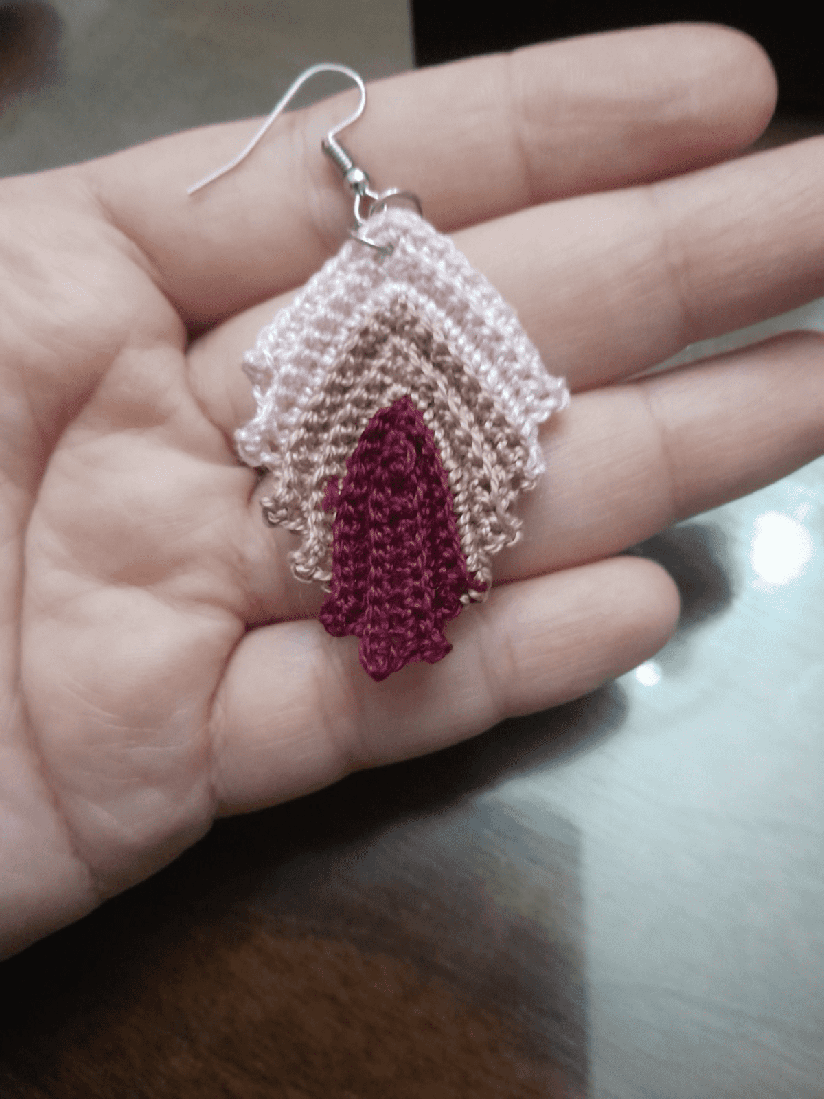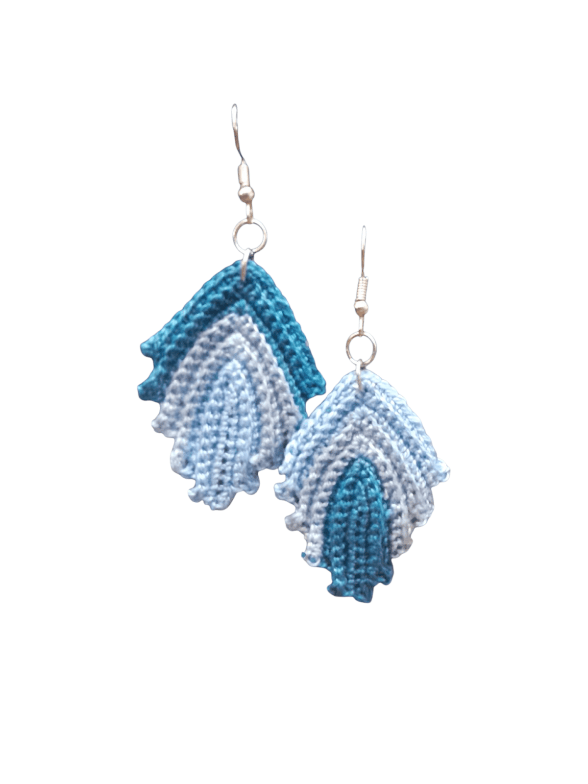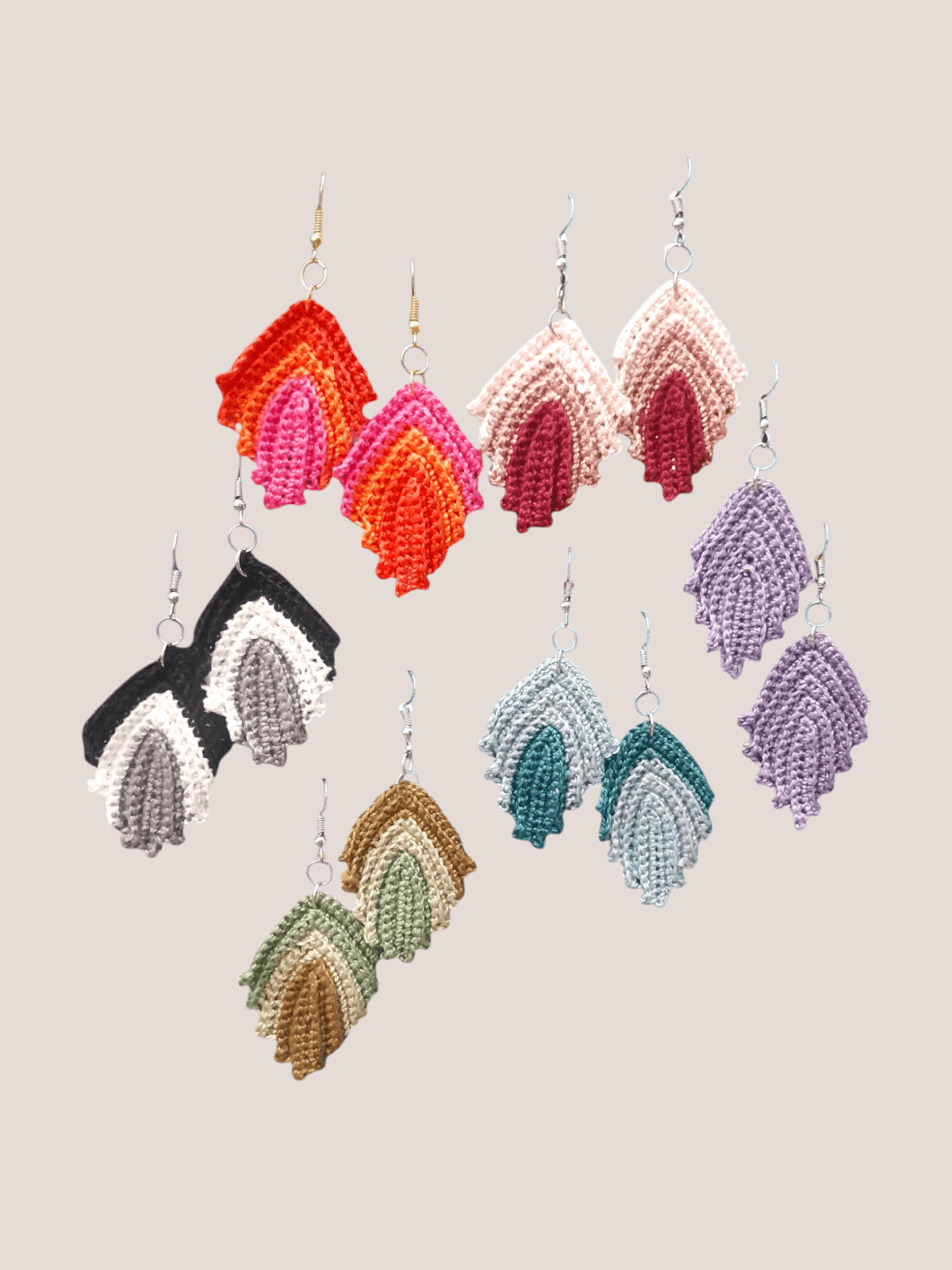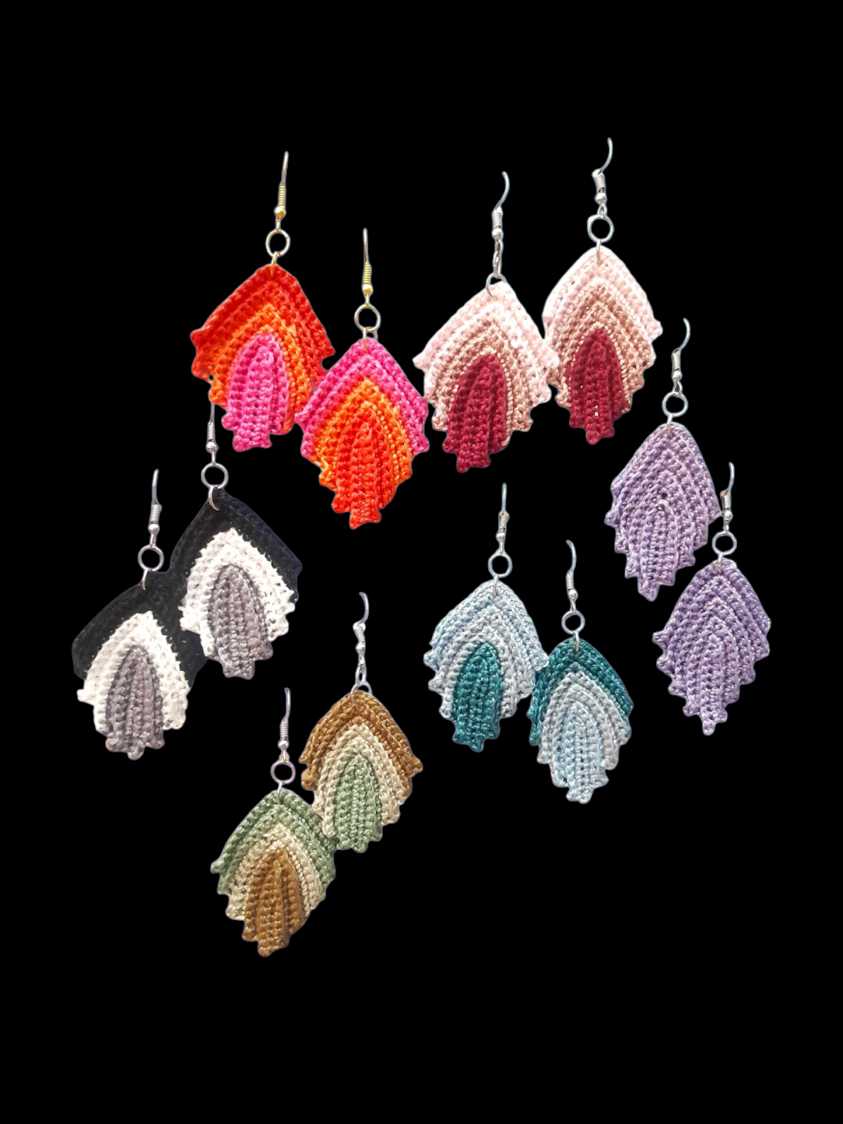 حلق كروشيه صناعة يدوي من خيوط قطن ناعمة وخفيفة على الاذن مقاس ٤.٥ ×٣ سم يوجد بألوان مختلفة حسب الرغبة