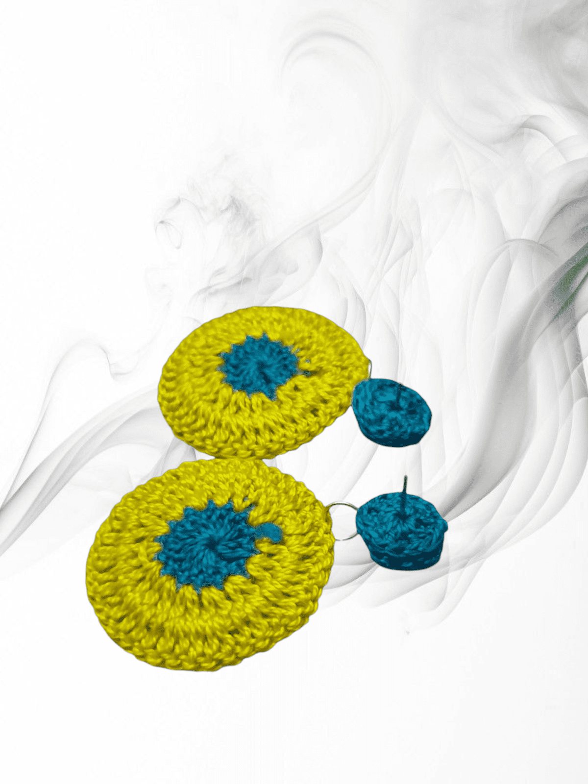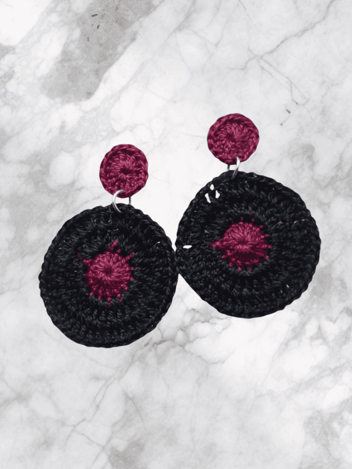 حلق كروشيه صناعة يدوية، مصنوع من خيوط قطنية ناعمة وخفيفة، مقاس 3 × 5 سم. متوفرة بألوان مختلفة حسب الرغبة.